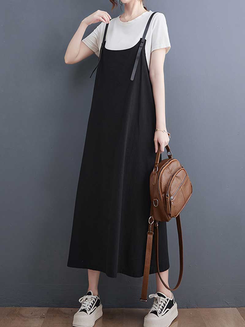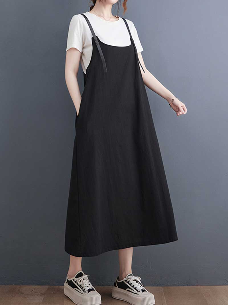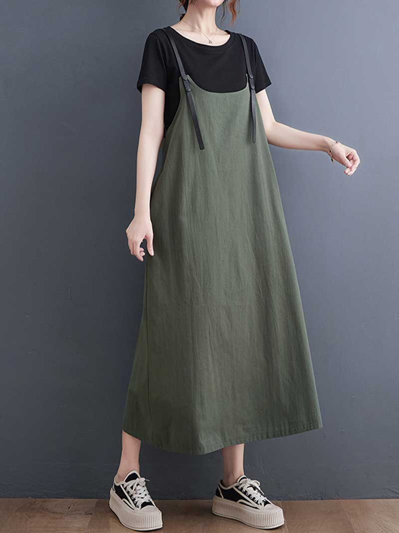 Our Plain Salopette Dress is perfect for you! Made from soft and breathable hemp material. this dress is perfect for warmer days. It features a round-neck collar. loose waist. and regular sleeves. Plus. it's available in two great colors - green and black. So why not add this versatile and stylish dress to your wardrobe today?