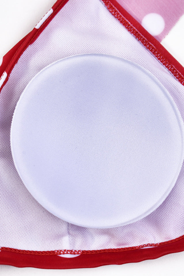 Our charming Polka Dot High Waist Ruffle Bikini features a classy frill detail on the neckline rounding all the way to the back making this a drop-dead gorgeous design that's perfect for both thrilling island getaways and lazy suntan sessions. Featuring a metal clasp at the back. sewn-in pads and a playful polka dot print. this bikini adds a pop of vintage style that will give you a fun and feminine feel to your swimwear collection.