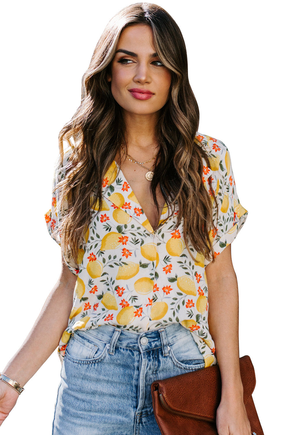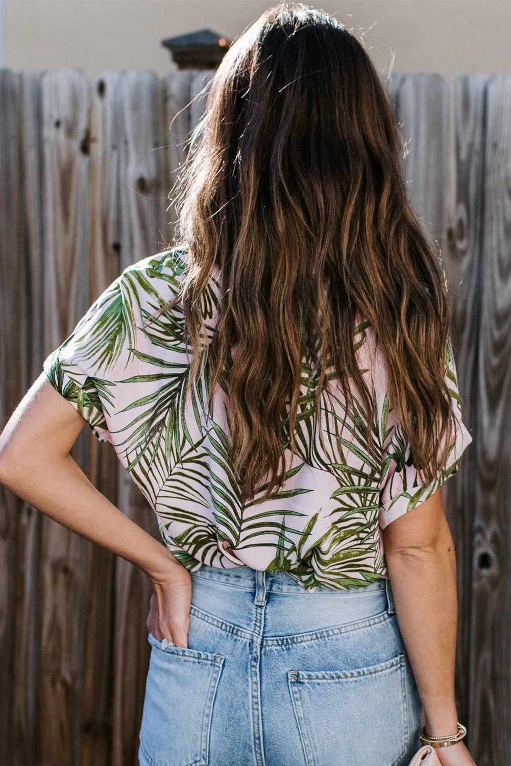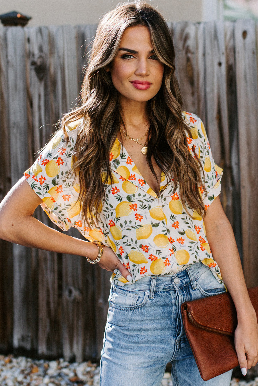 This Printed Button Front Top is the perfect addition to your wardrobe.