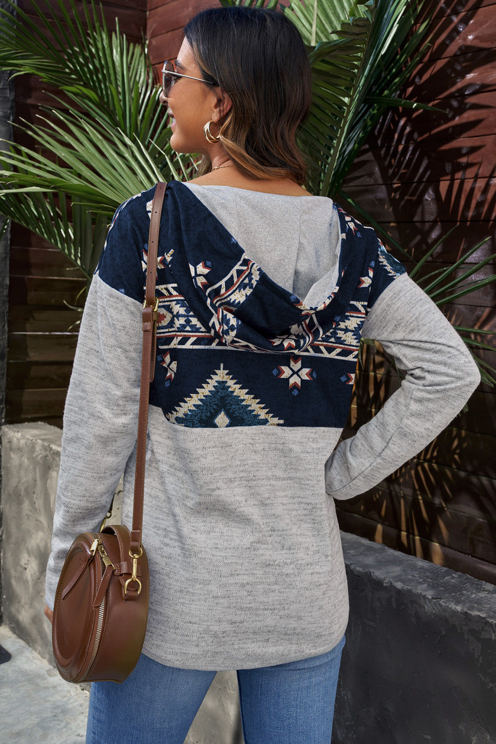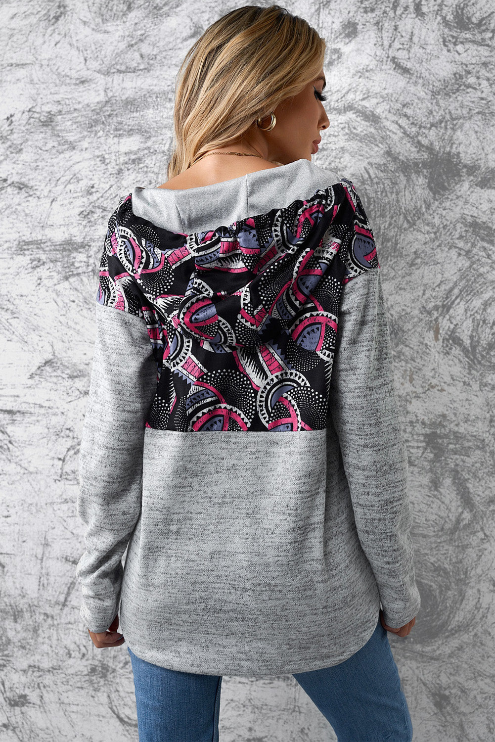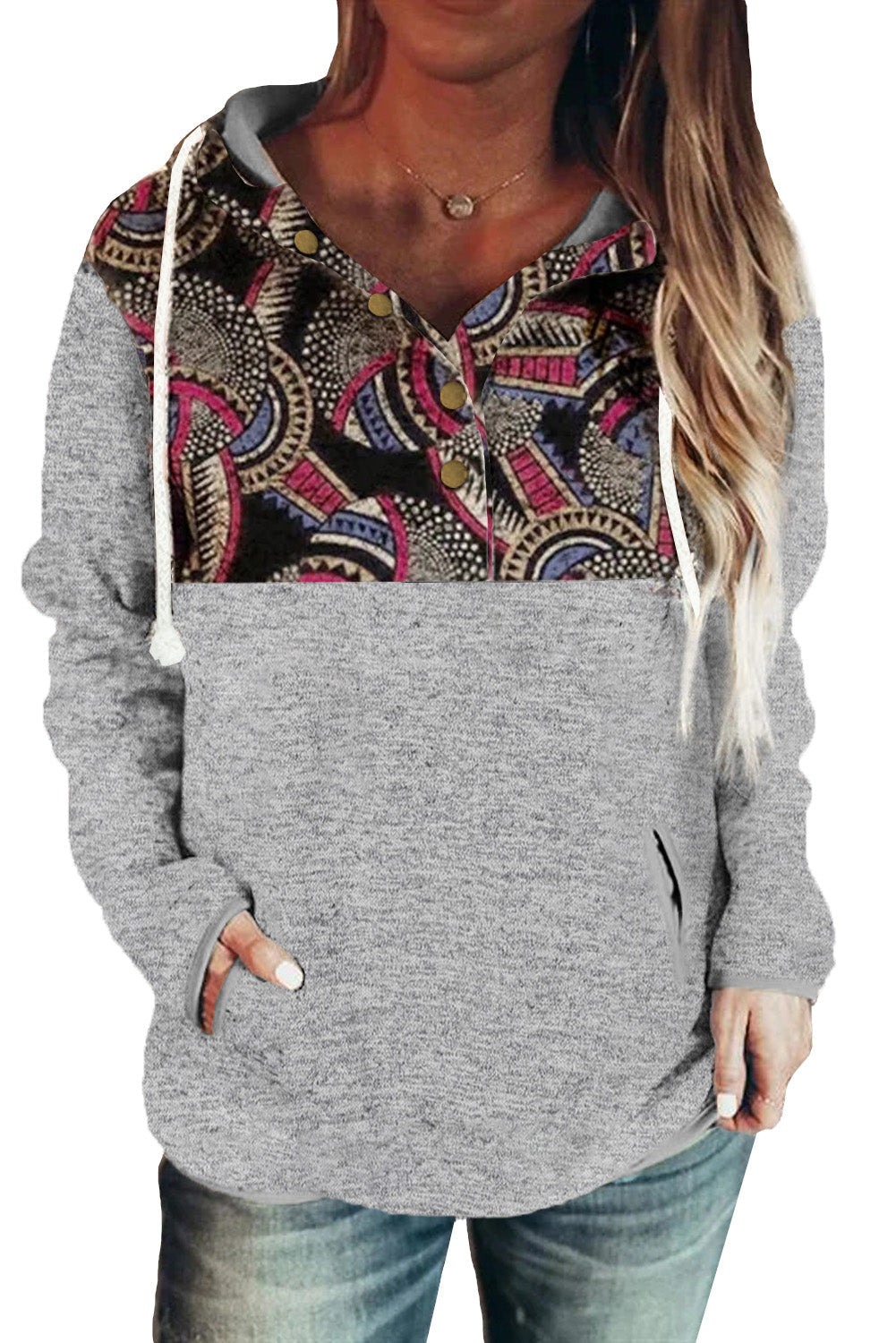 This Printed Stitching Snap Buttons Pullover Hoodie is the perfect addition to your wardrobe.