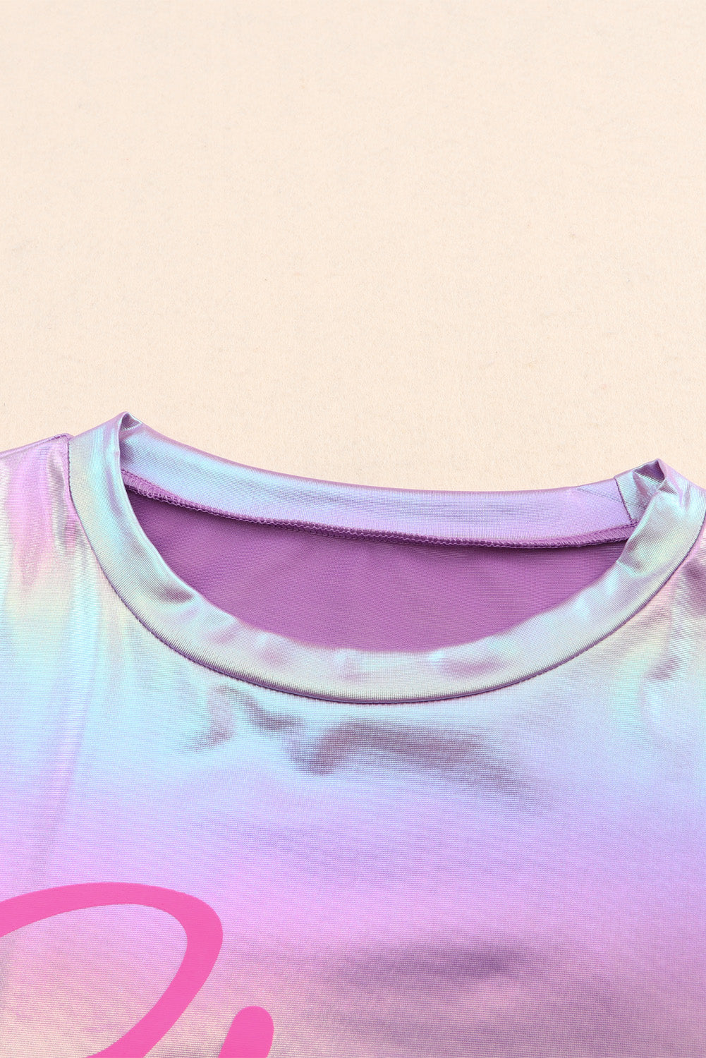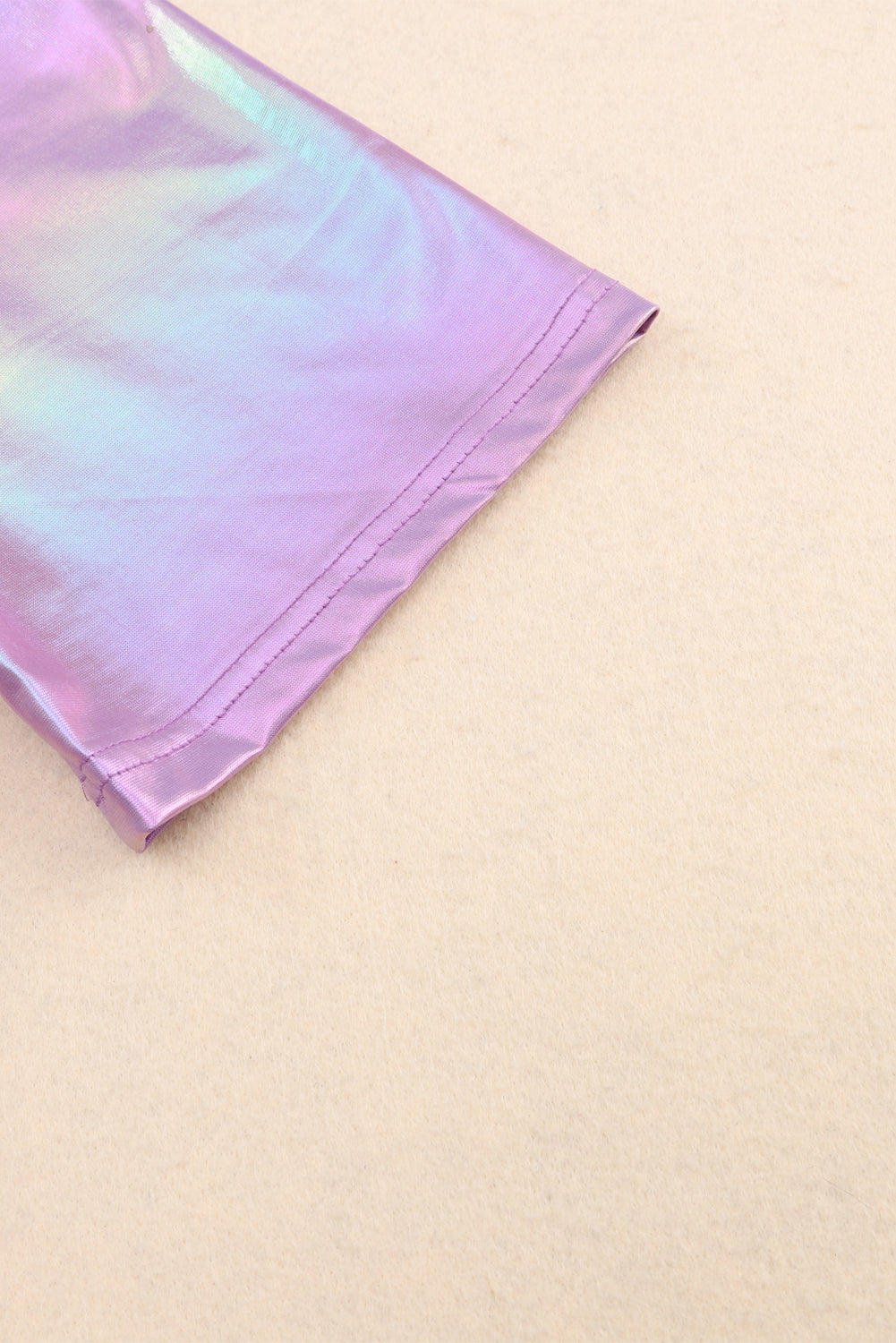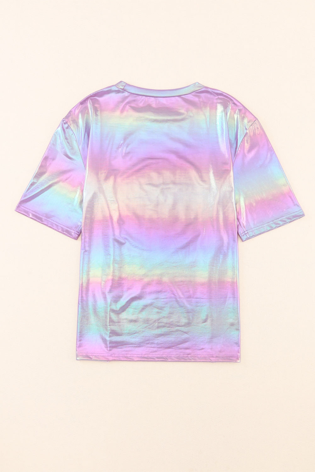 Make a bold statement in this Purple Shiny Iridescent Stay Wild Graphic Oversized Tee!