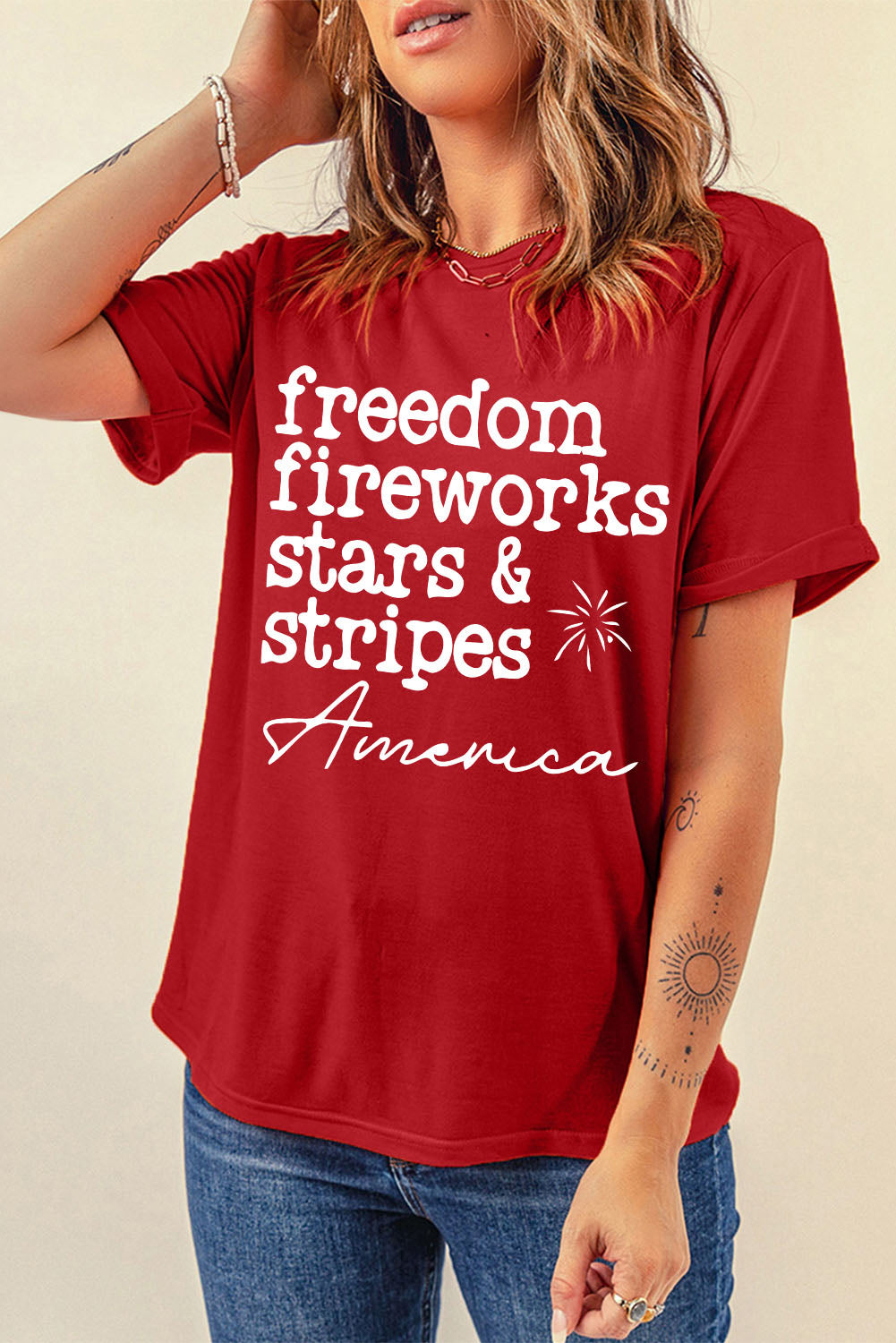 Show your pride and celebrate freedom with this Red American Freedom Day Slogan Print T Shirt!