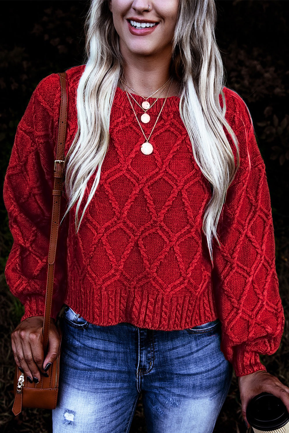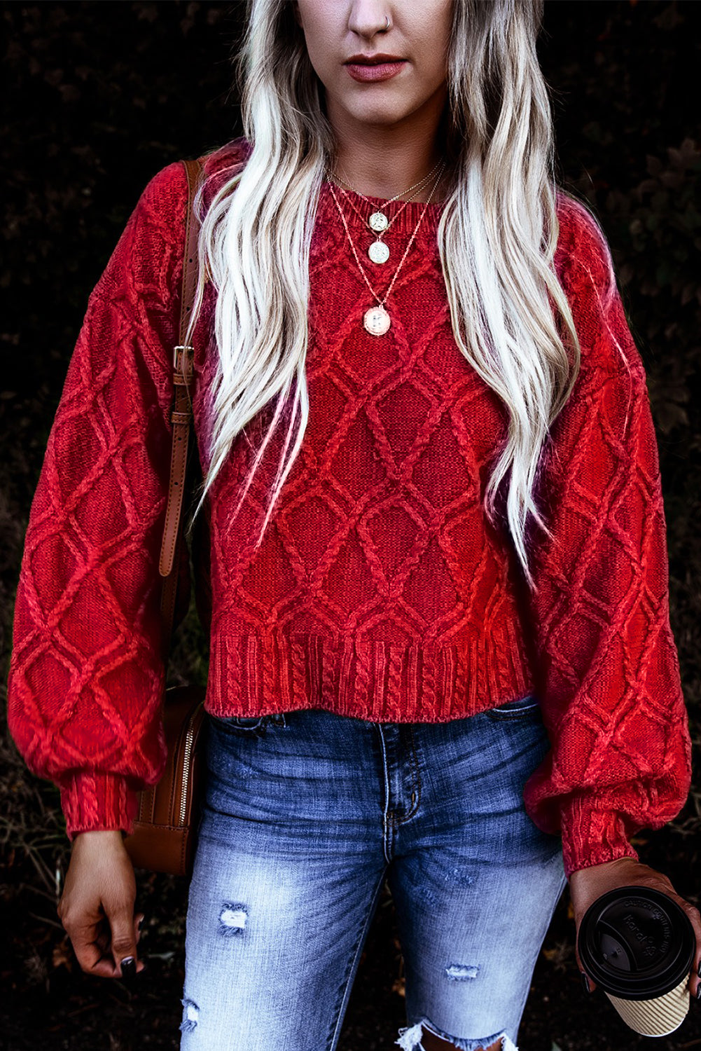 Introducing the Red Festive Textured Chunky Sweater. the perfect addition to your winter wardrobe.