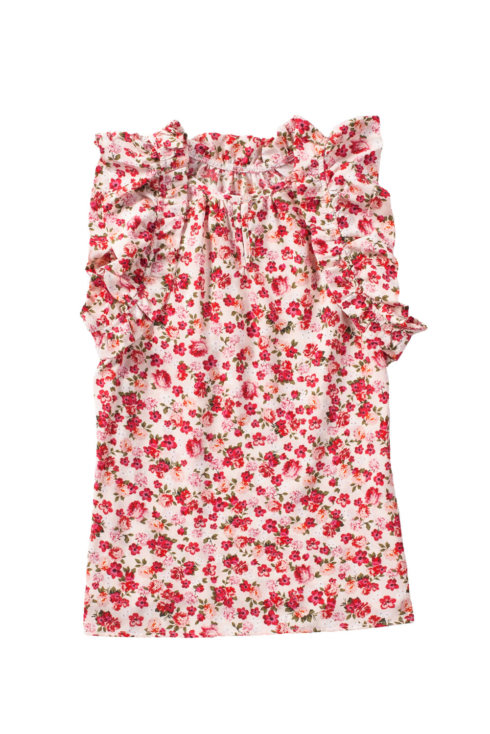This Red Floral Print Ruffled Mock Neck Sleeveless Top is the perfect addition to your wardrobe.