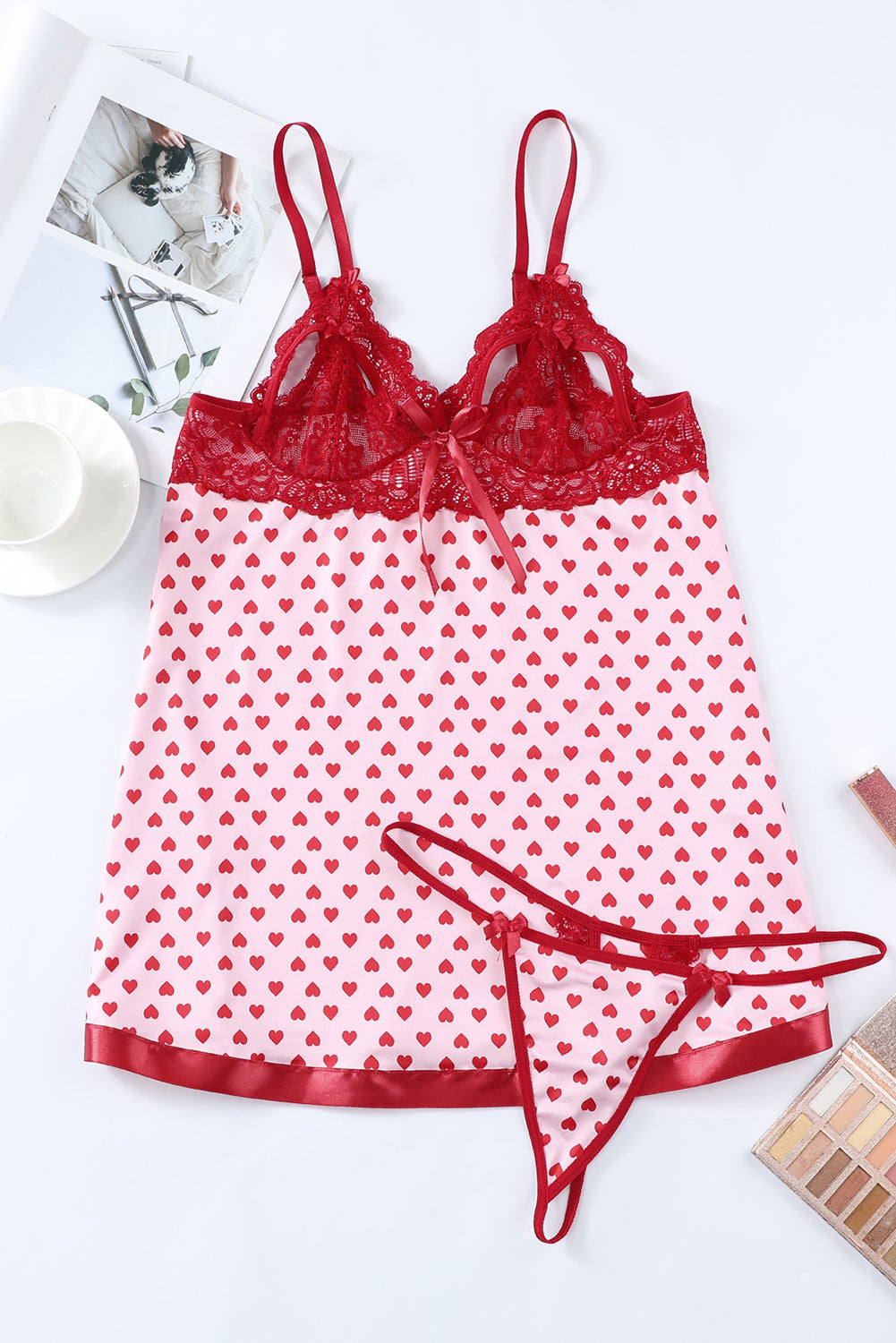 This Red Heart Shape Print Lace Crochet Babydoll Set is the perfect addition to your wardrobe.