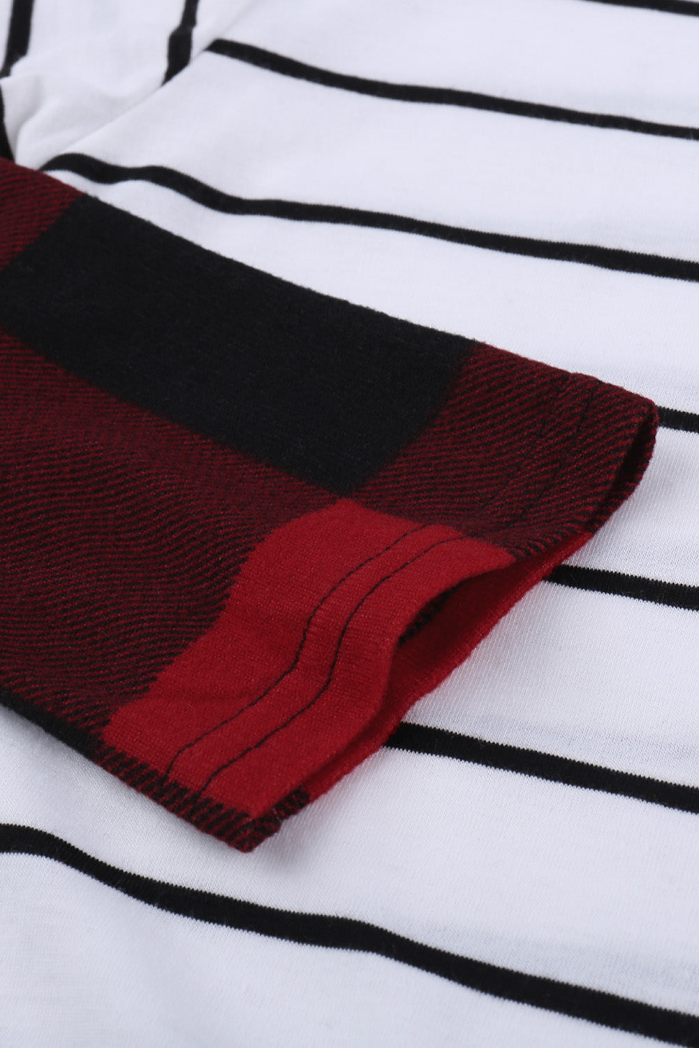 The unique colorblock pattern features a mix of red. white. and black plaid. creating a bold and eye-catching look.