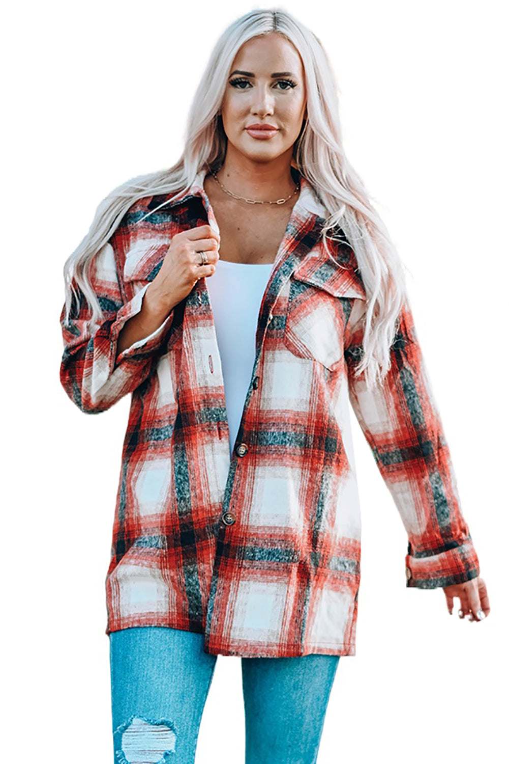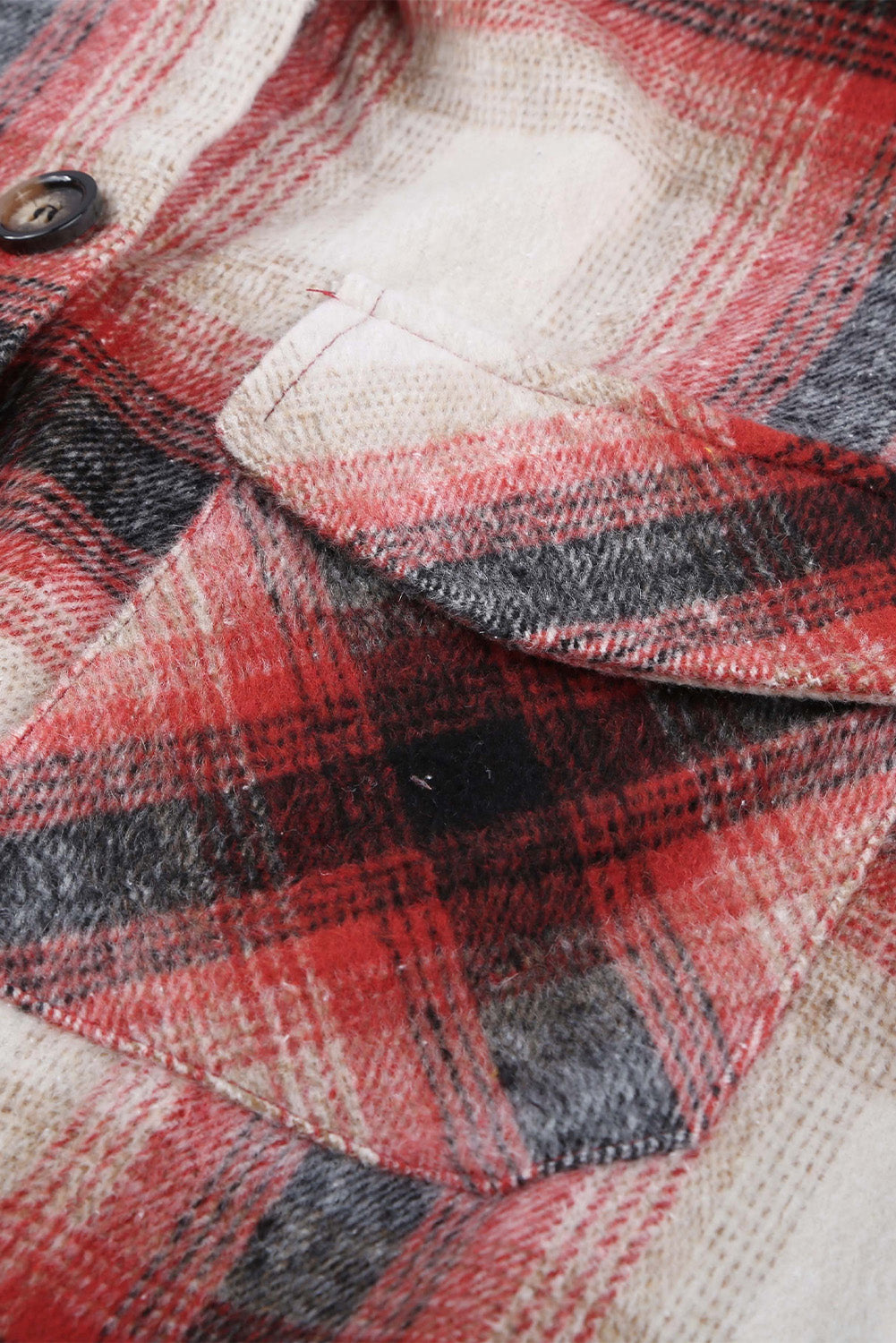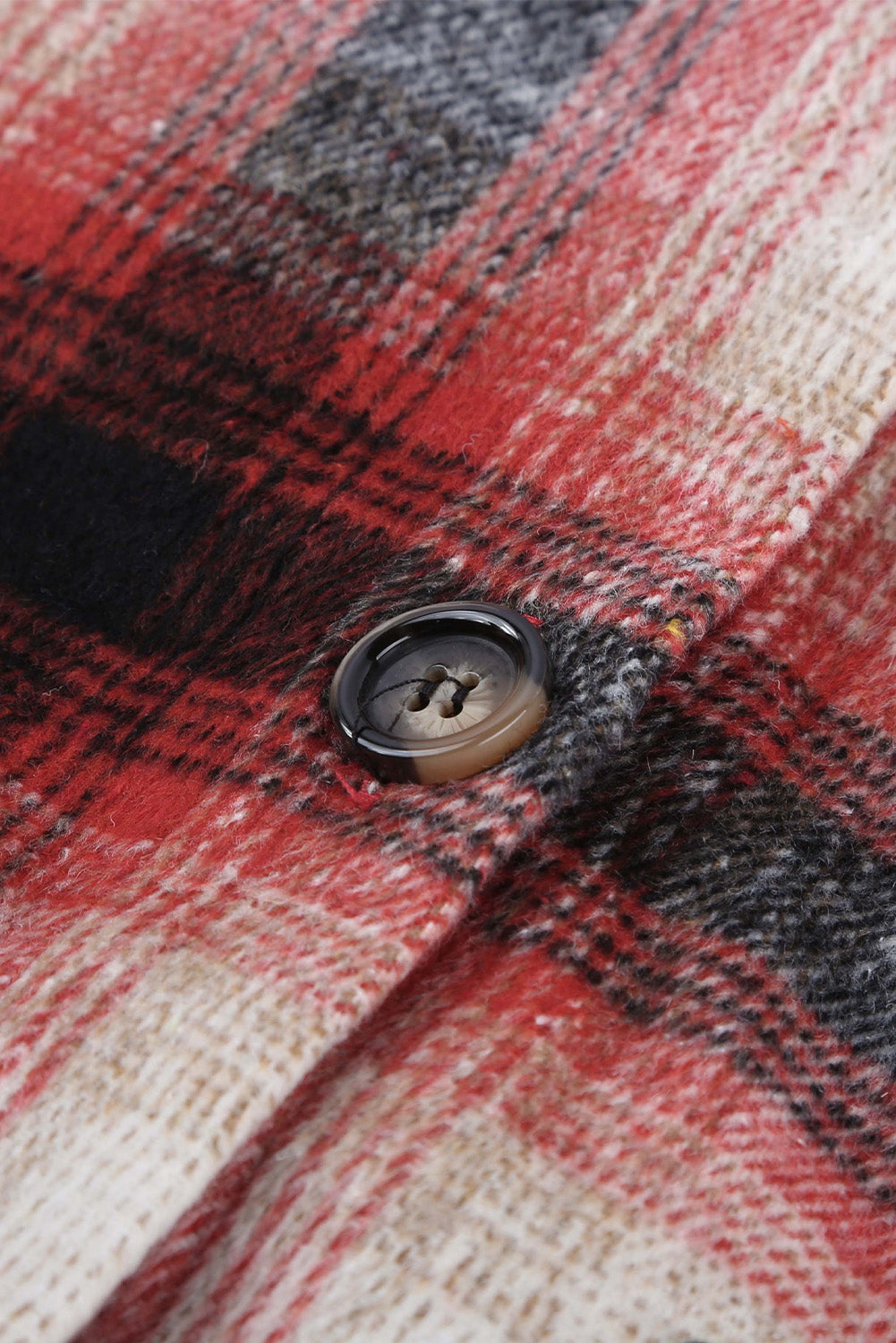 With its timeless design and quality construction. this Red Turn Down Neck Plaid Pocket Button Closure Coat is sure to become a wardrobe staple.