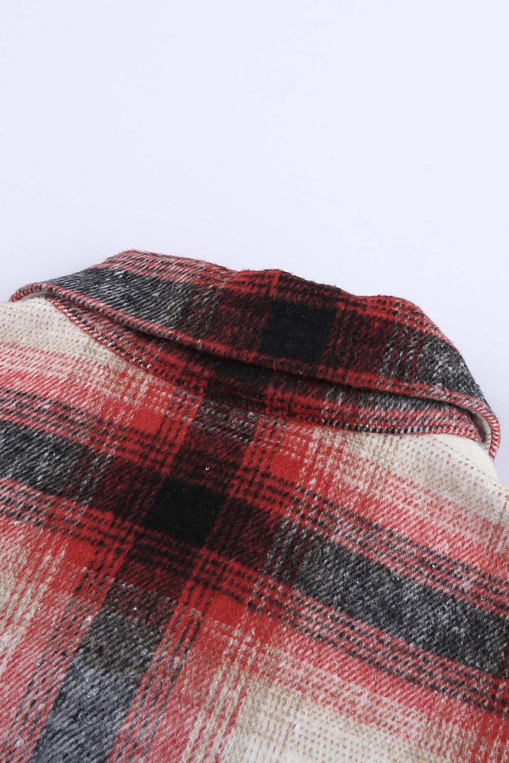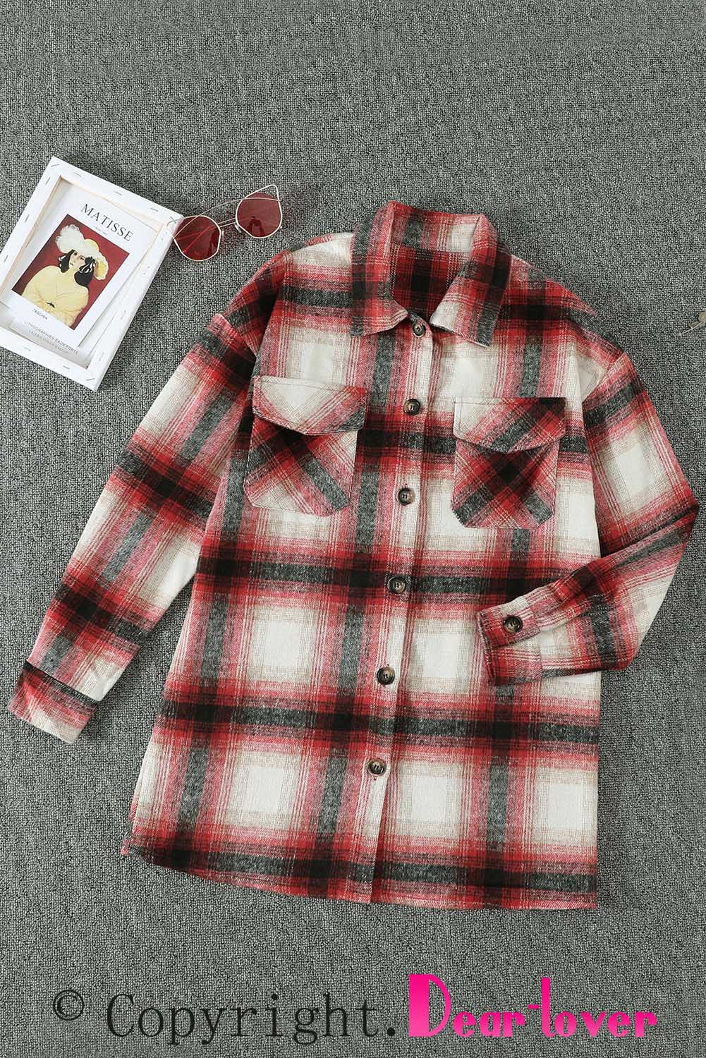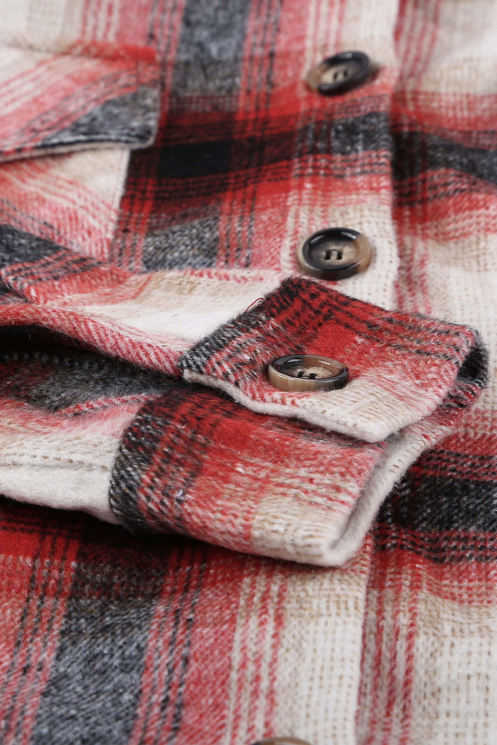 With its timeless design and quality construction. this Red Turn Down Neck Plaid Pocket Button Closure Coat is sure to become a wardrobe staple.