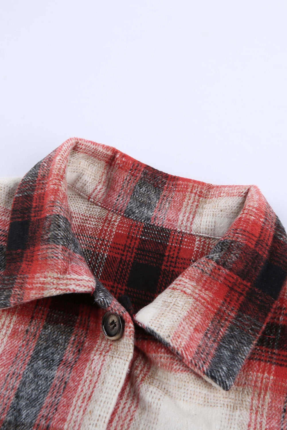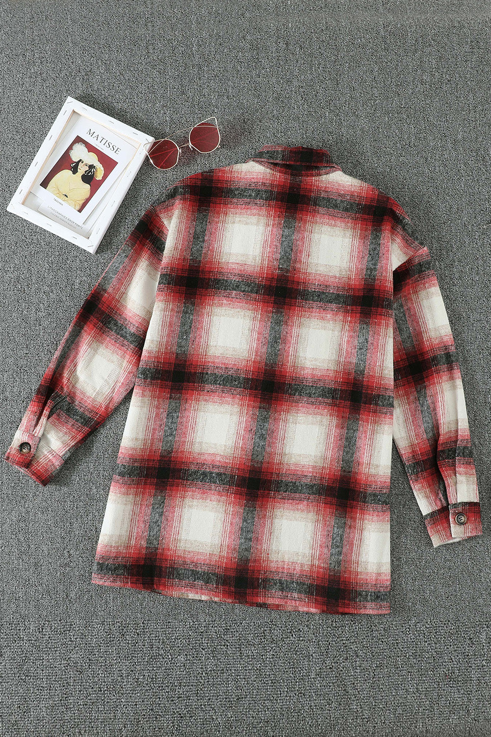 This Red Turn Down Neck Plaid Pocket Button Closure Coat is the perfect addition to your wardrobe.