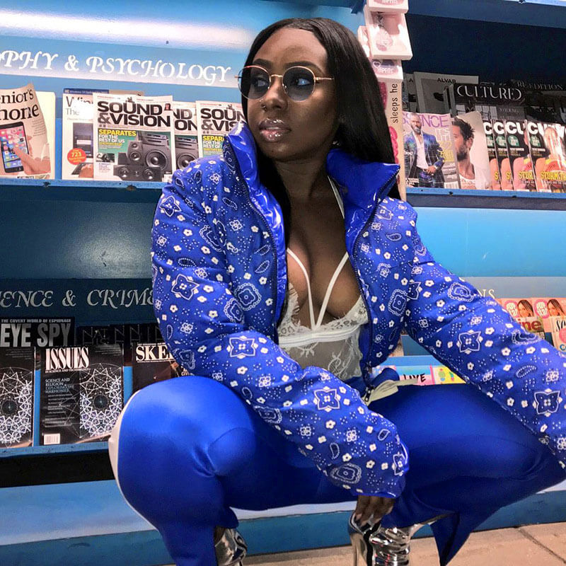 Every affair that calls for street-style requires something as statement worthy as this quilted jacket. Crafted with PU leather. snug polyester and cotton blend. embellished with a convertible styling that can be worn in two ways. featuring a stand collar designed with a high neckline. an exposed full zipper followed with an elasticized edge. a cropped length framed with long sleeves. Find more trendy women's reversible jackets or unique clothing in our boutique. and style it with a pair of skinny pants and a knitted top this winter.