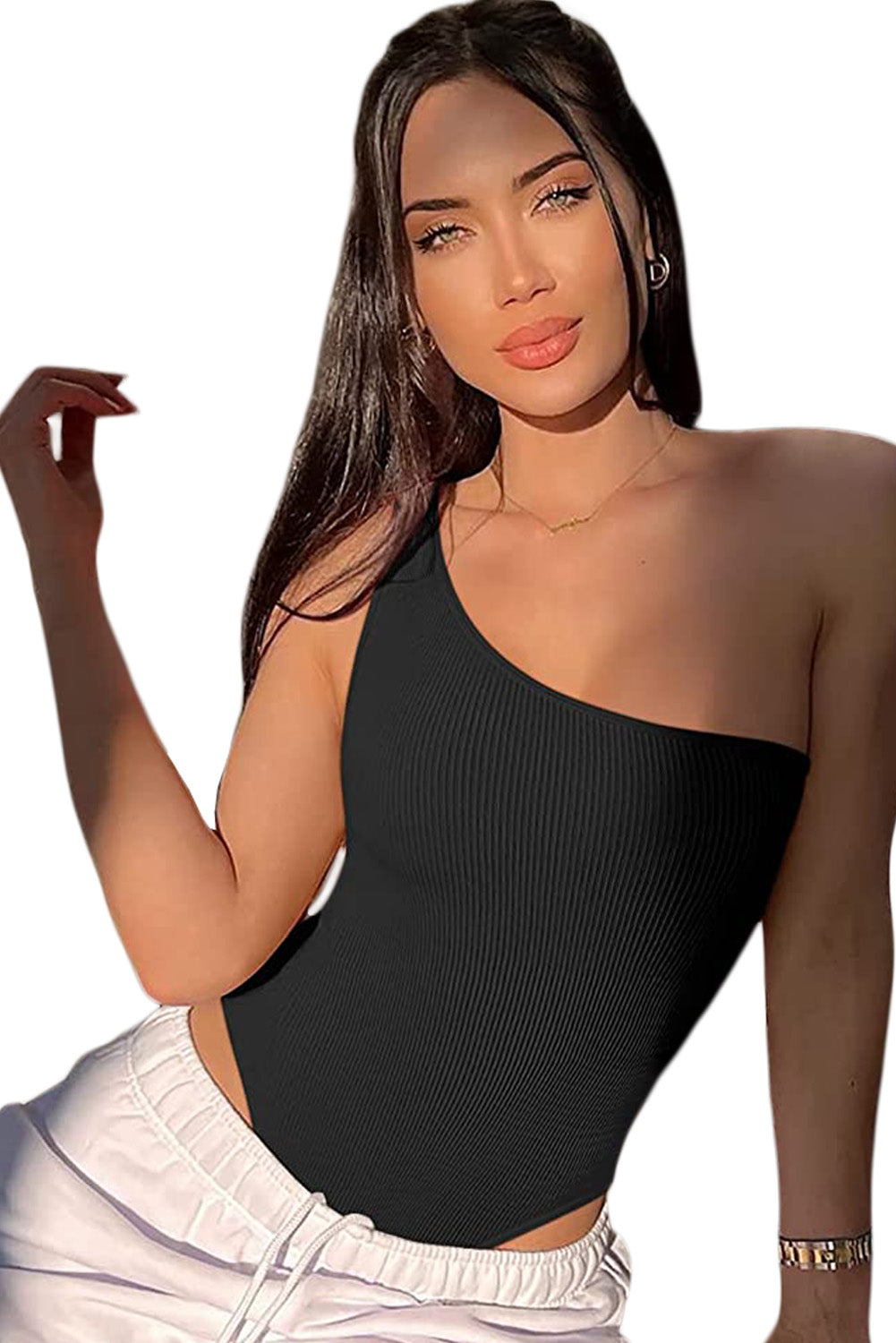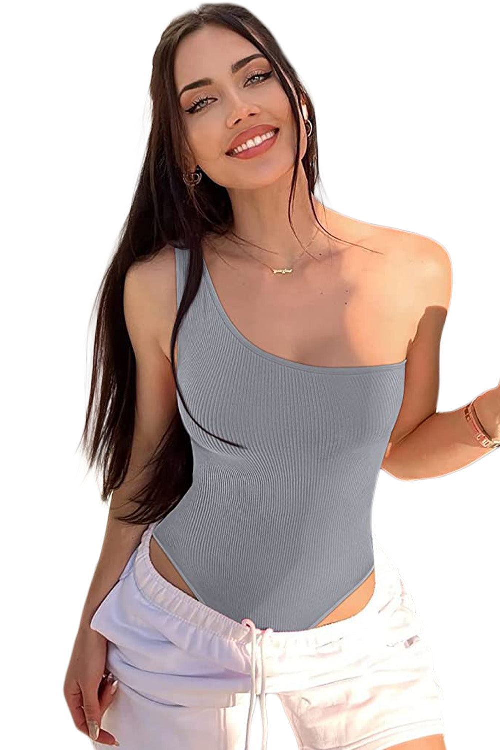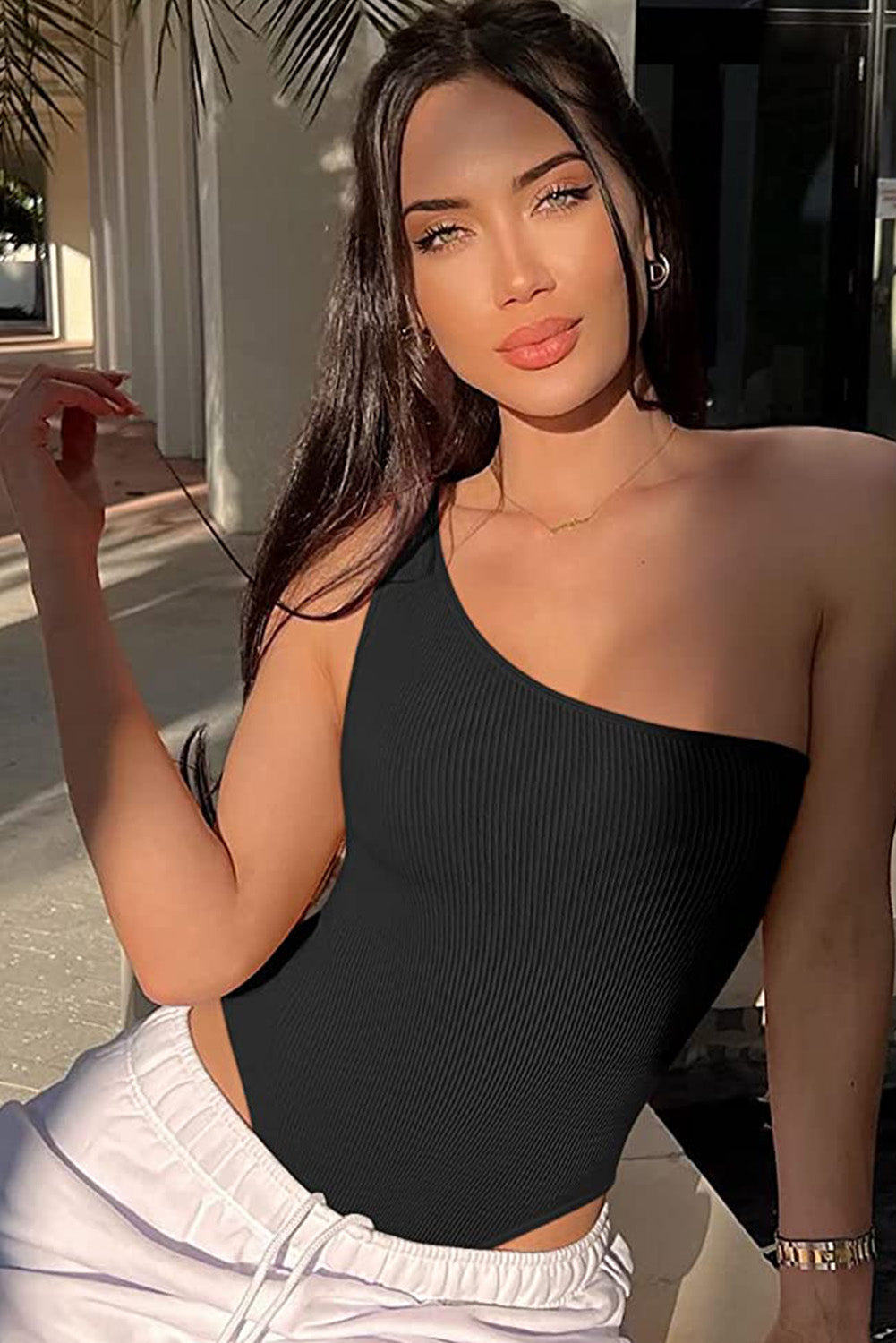 Experience the luxury of this comfortable yet sophisticated Ribbed Knit One Shoulder Sports Bodysuit.