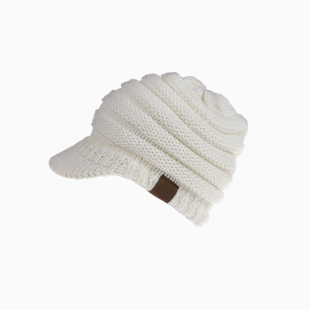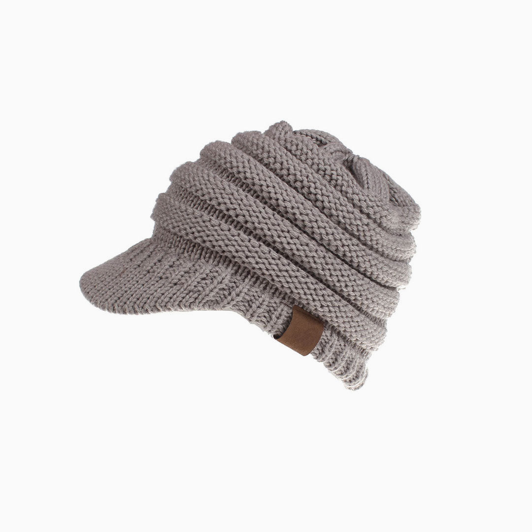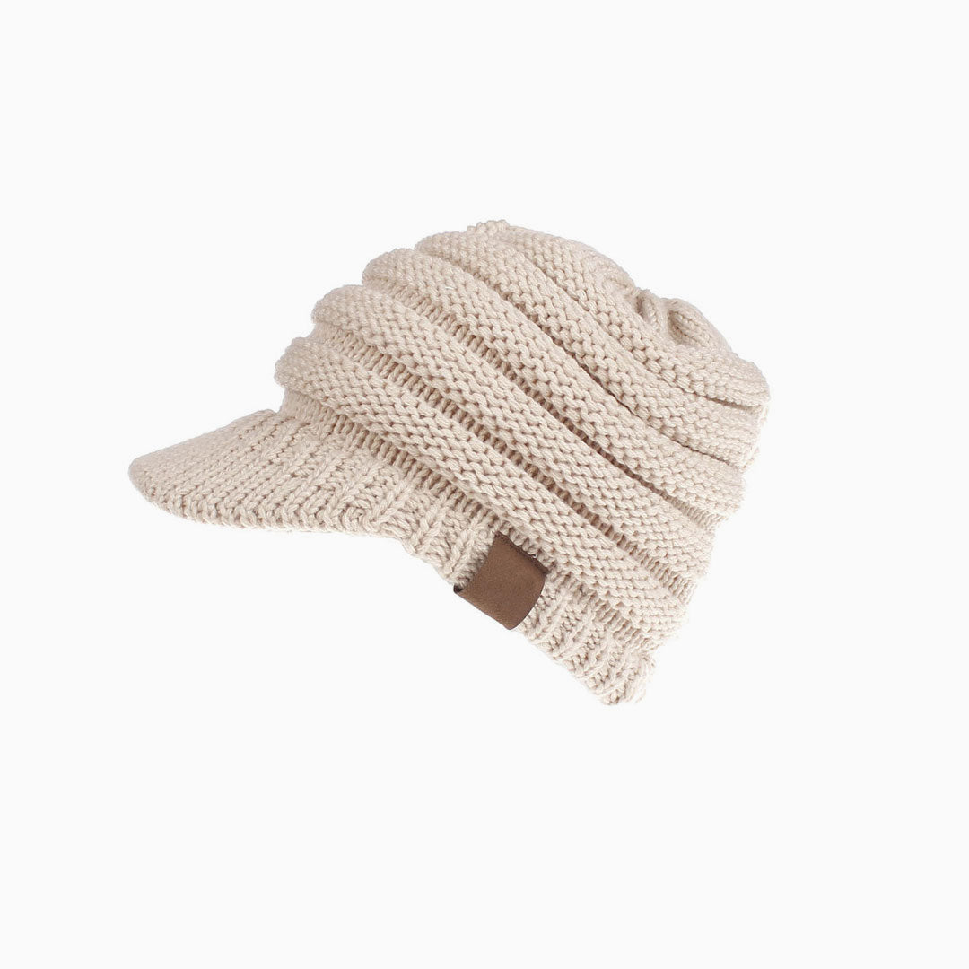 Stay cozy and warm in this so soft cabbie cap. Crafted with acrylic yarn. embellished with a ponytail hole on the top. featuring textured pattern and a short brim over the forehead. Find more trendy women's hats and headwear in our boutique. and complete a warm and fashionable street look with our unique accessories.