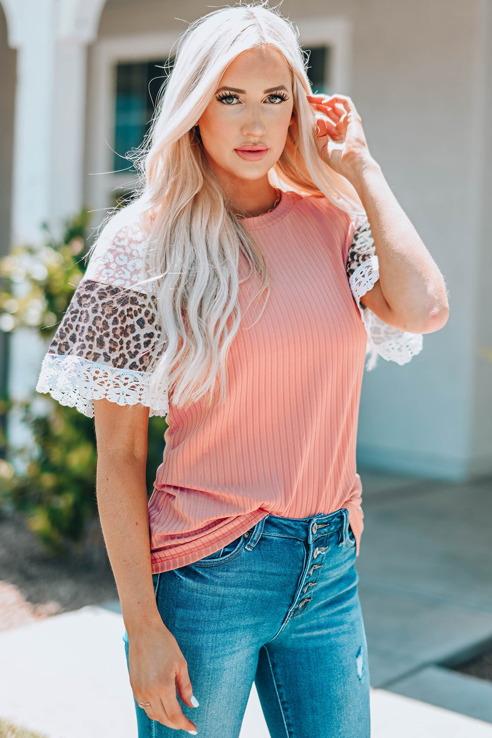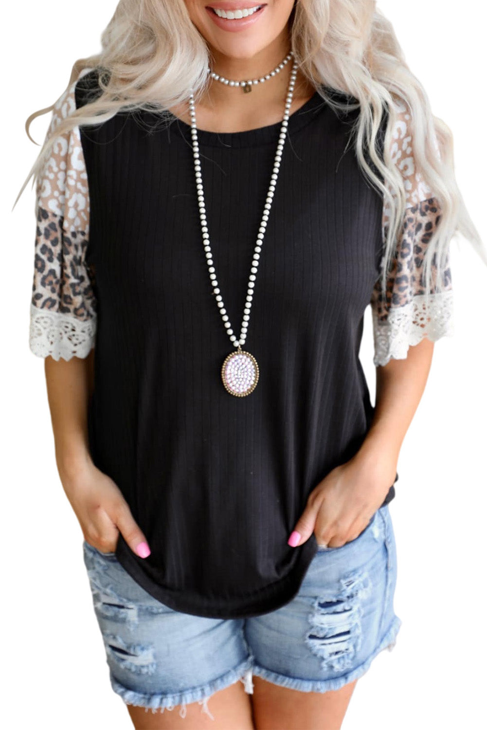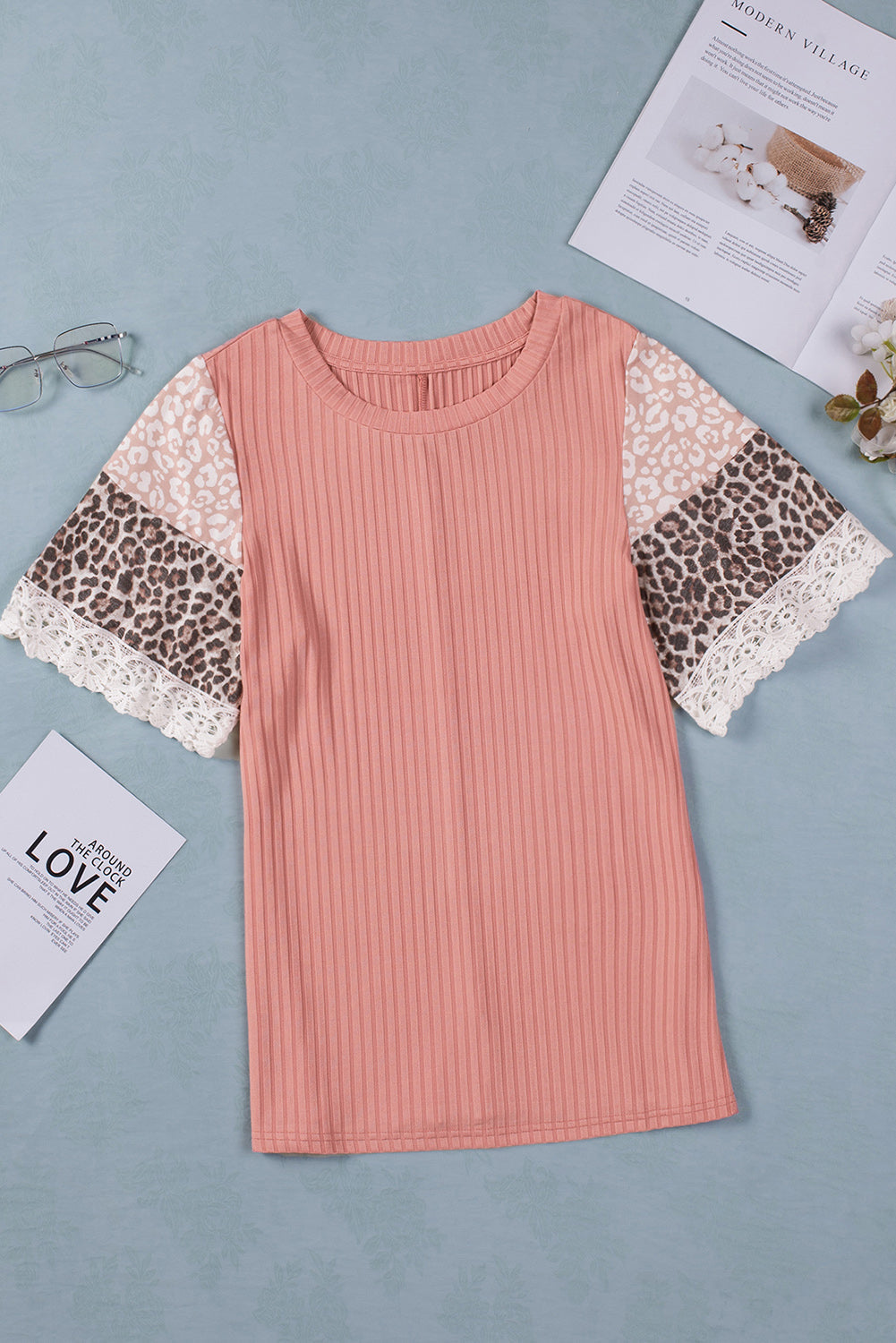 The ribbed texture adds a unique touch to the top. while the leopard print adds a bold and eye-catching look.