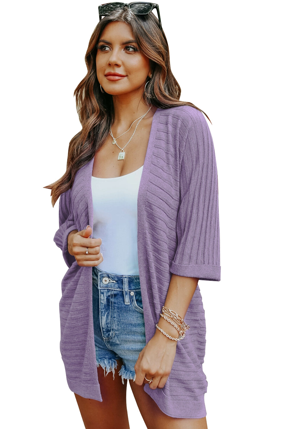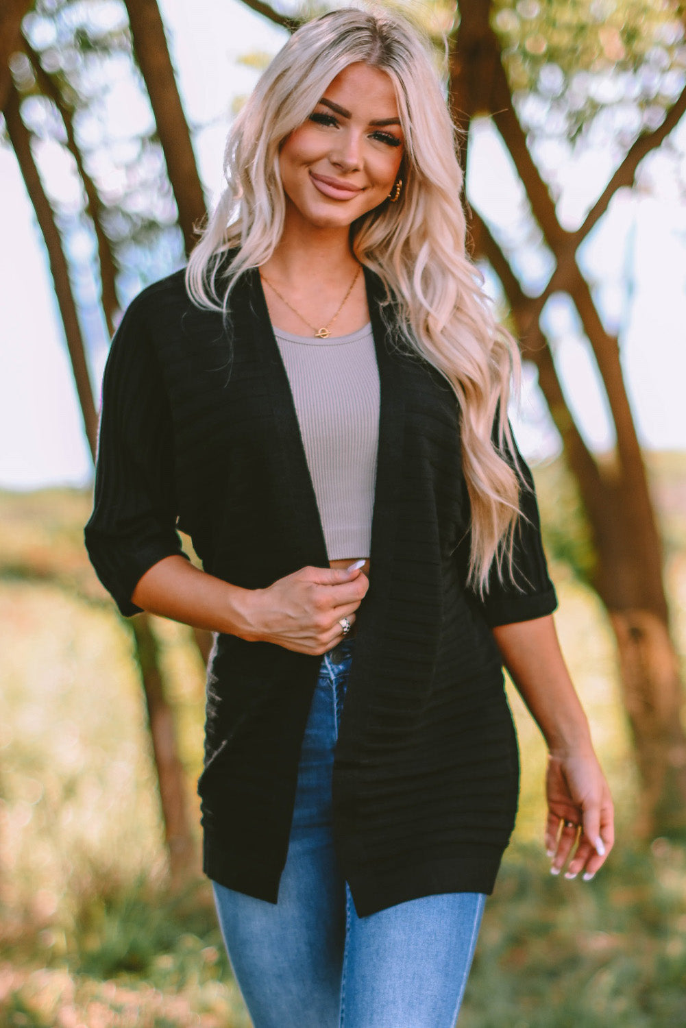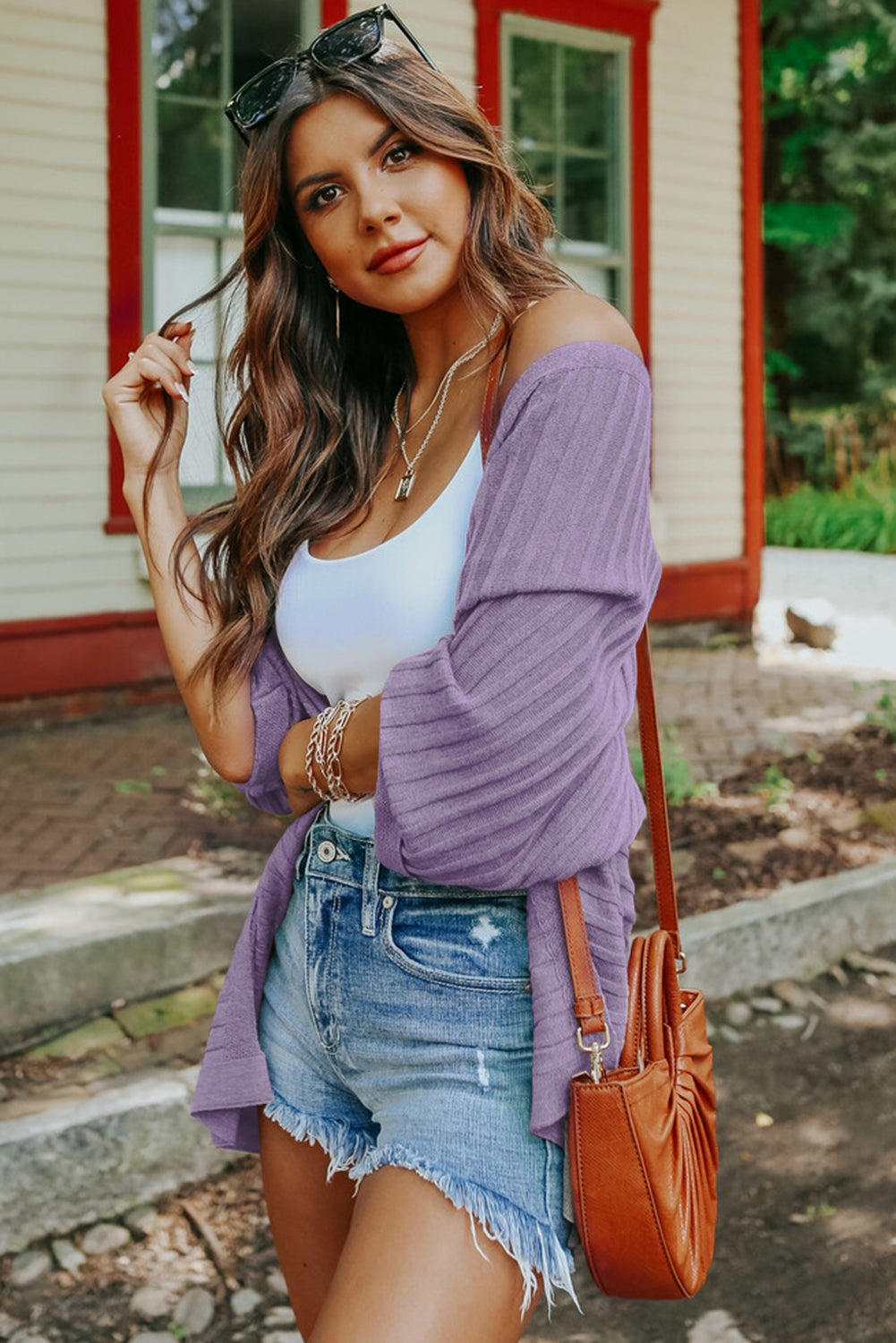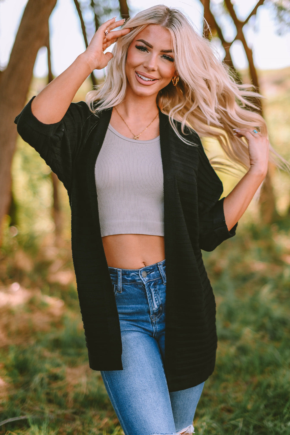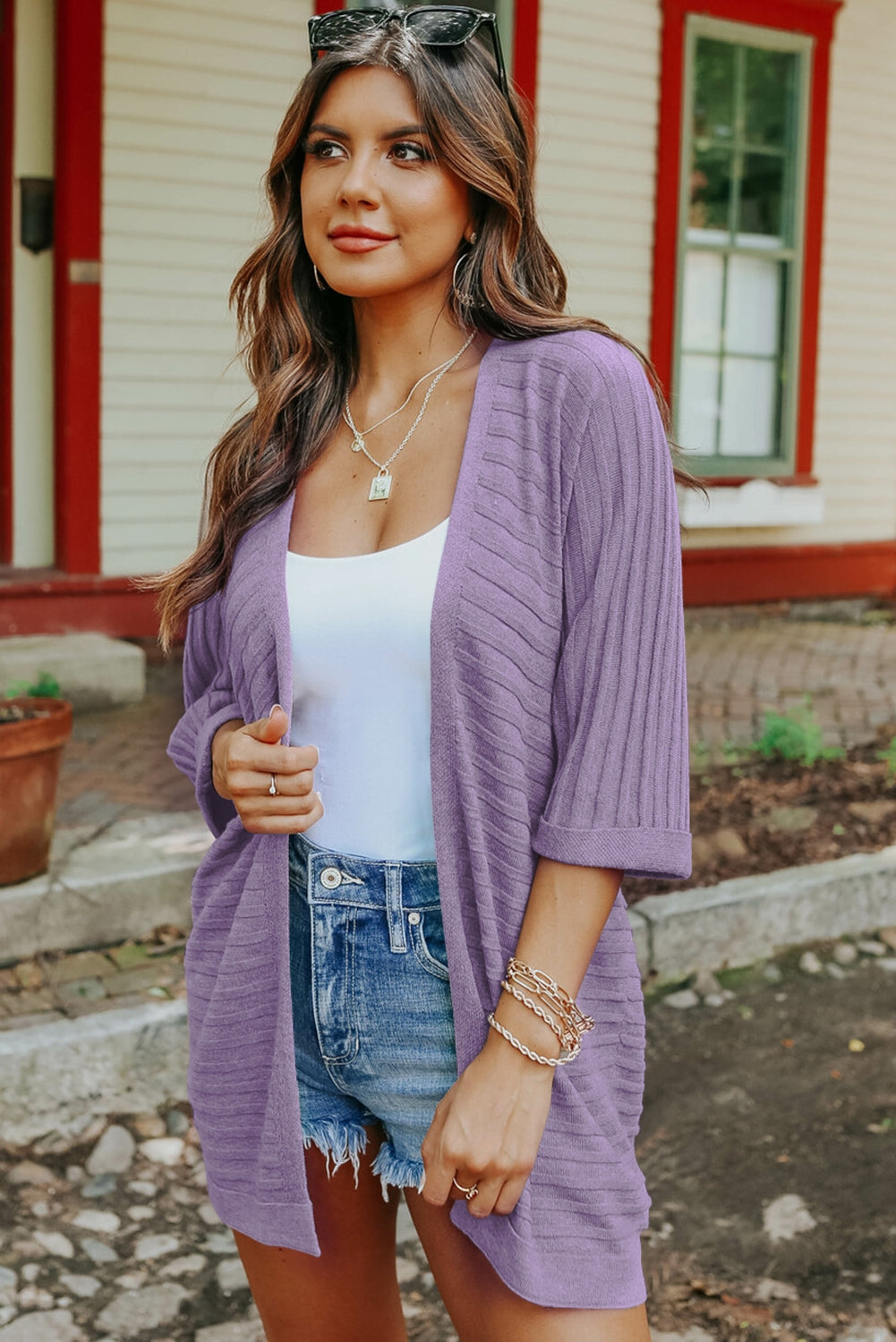 This Ribbed Open Front Knit Cardigan is the perfect addition to your wardrobe.