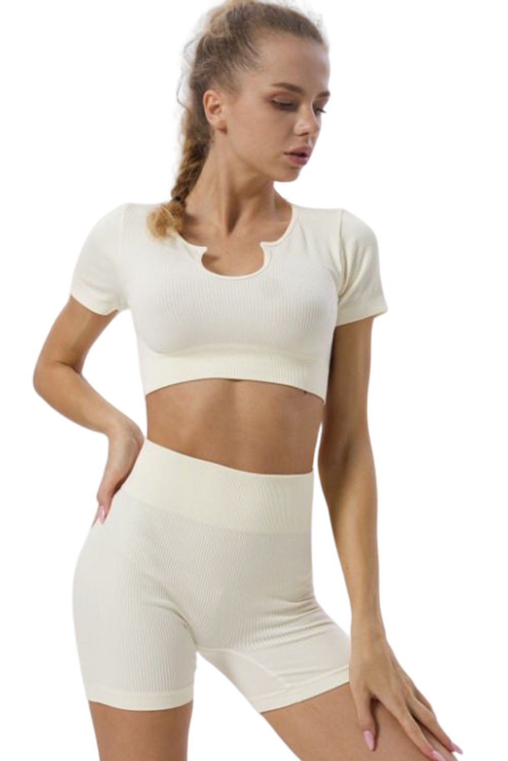 The short sleeves and cropped design help keep you cool during even the most intense workouts. while the ribbed texture provides a flattering and stylish look.