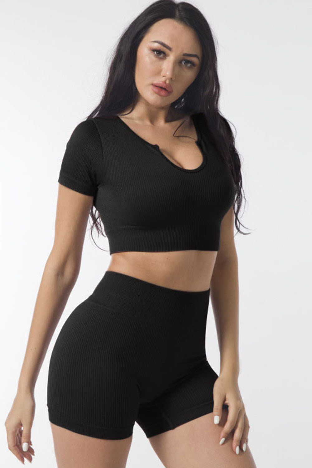 Don't settle for mediocrity in your workout wear - upgrade to the Ribbed Short Sleeve Cropped Active Top and achieve your fitness goals in style and comfort.