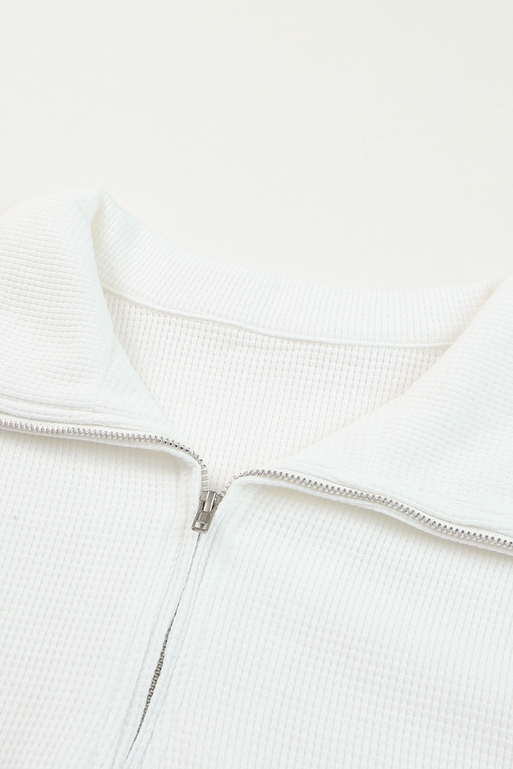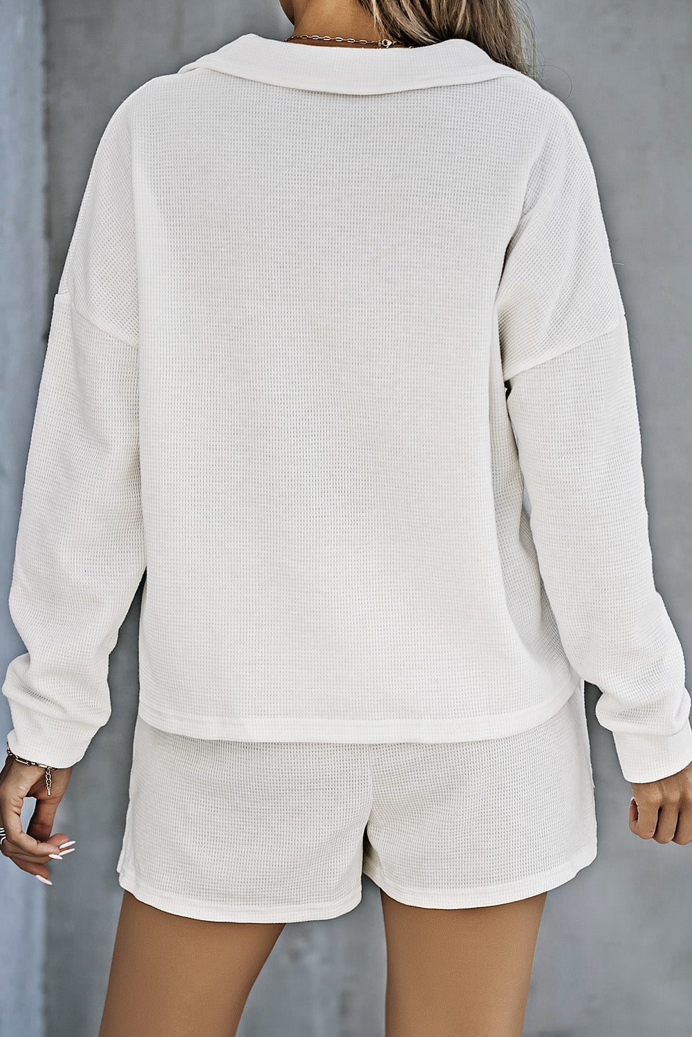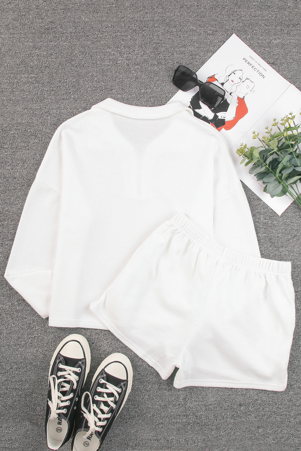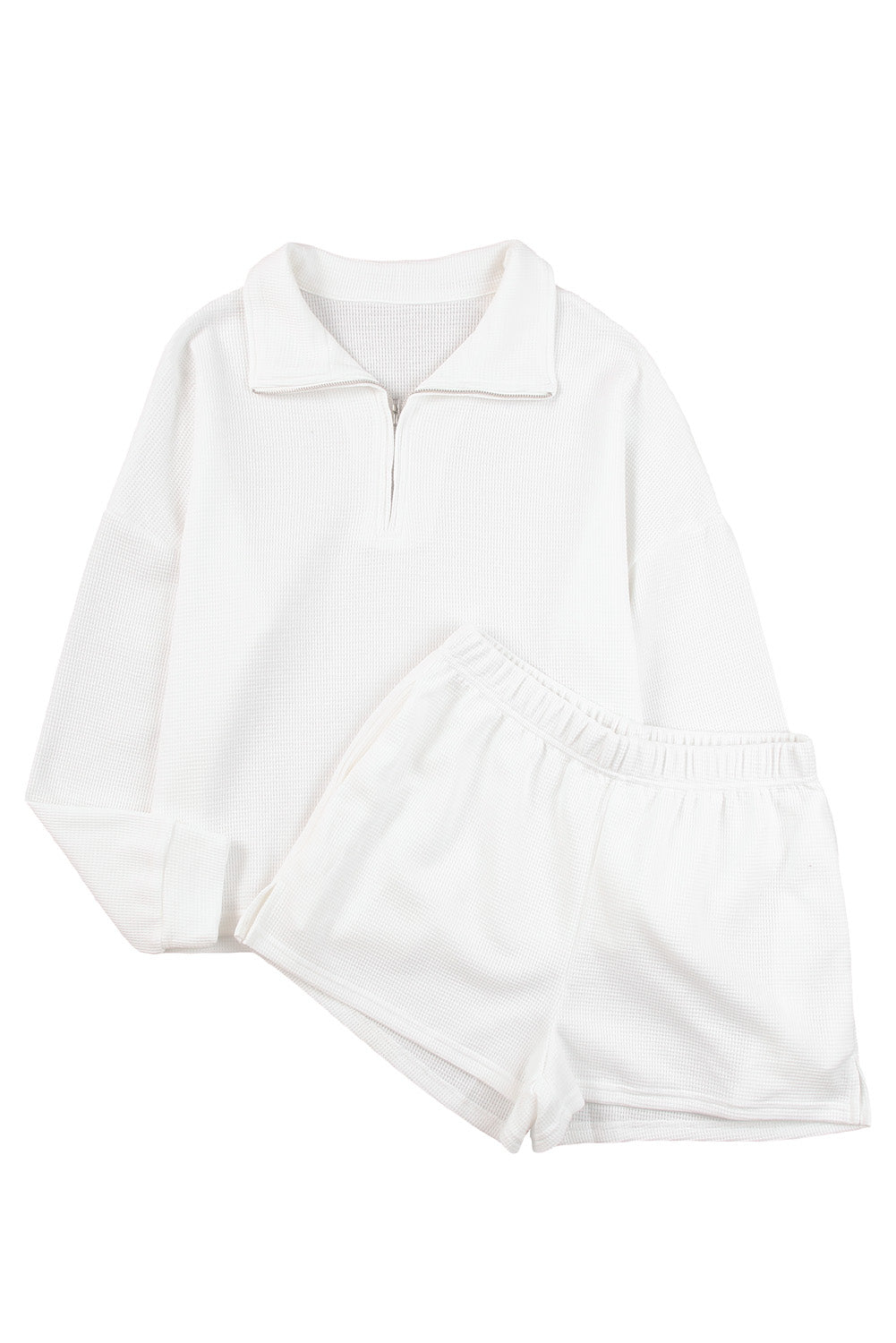 Ribbed Zipper Sweatshirt and High Waist Shorts Set