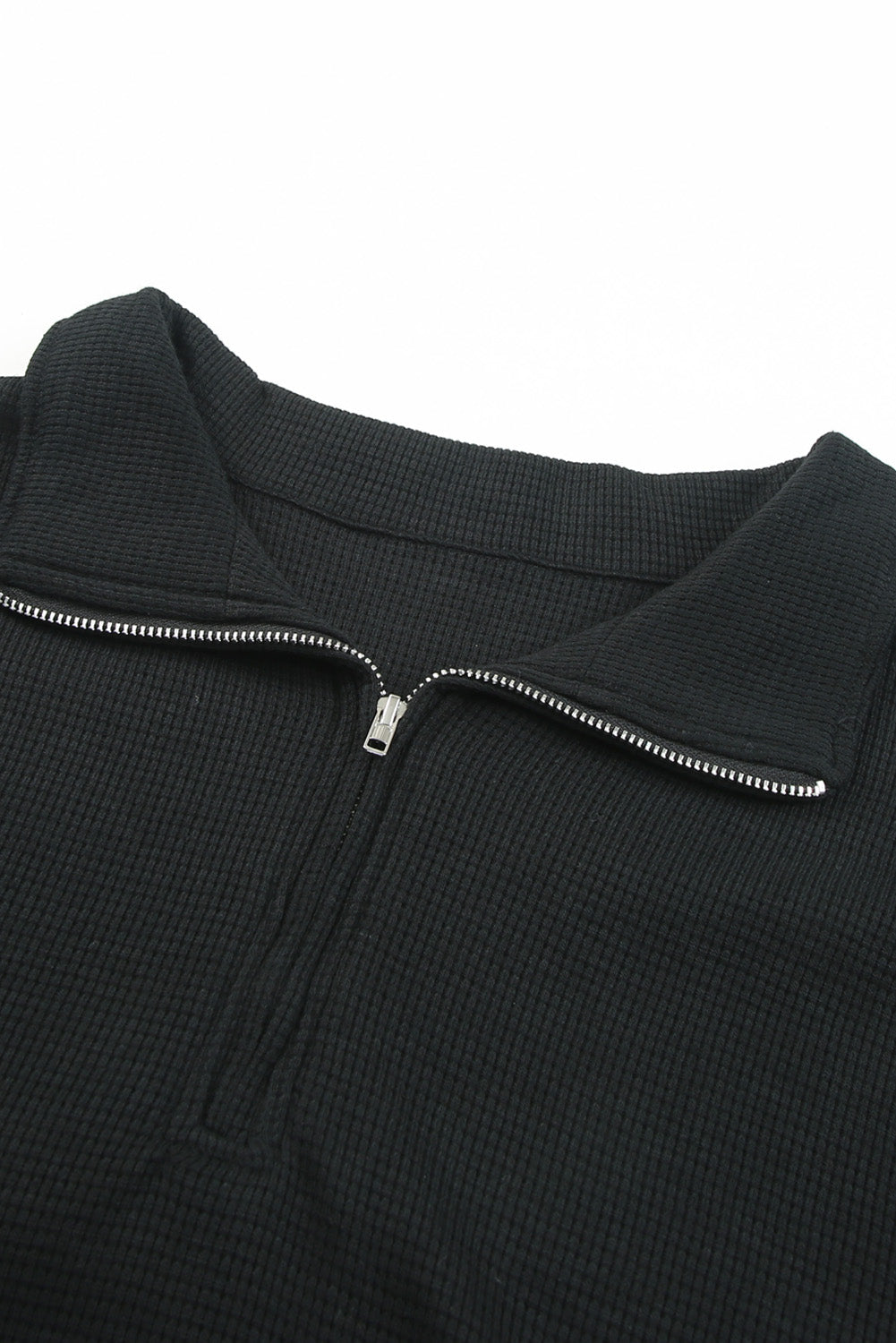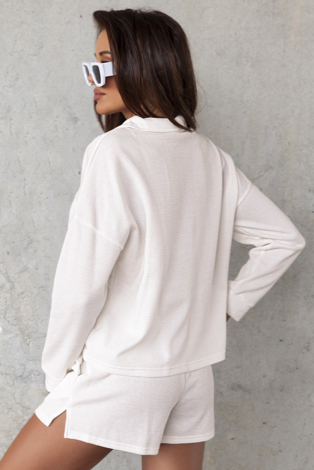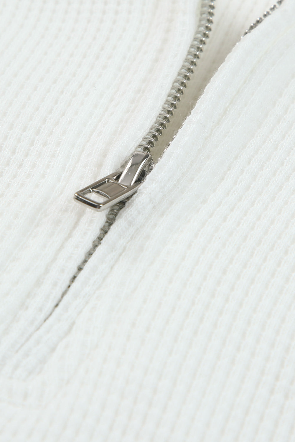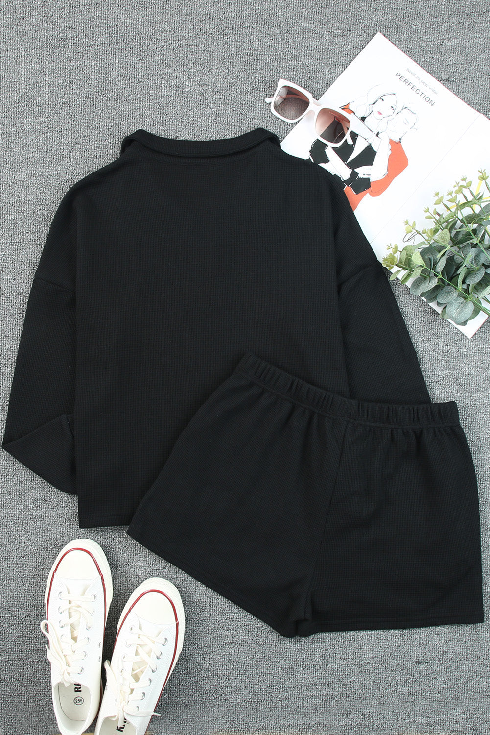 Ribbed Zipper Sweatshirt and High Waist Shorts Set