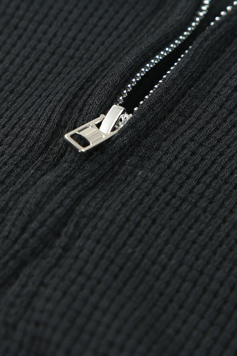 • Ribbed sweatshirt with a zipper closure and a kangaroo pocket.