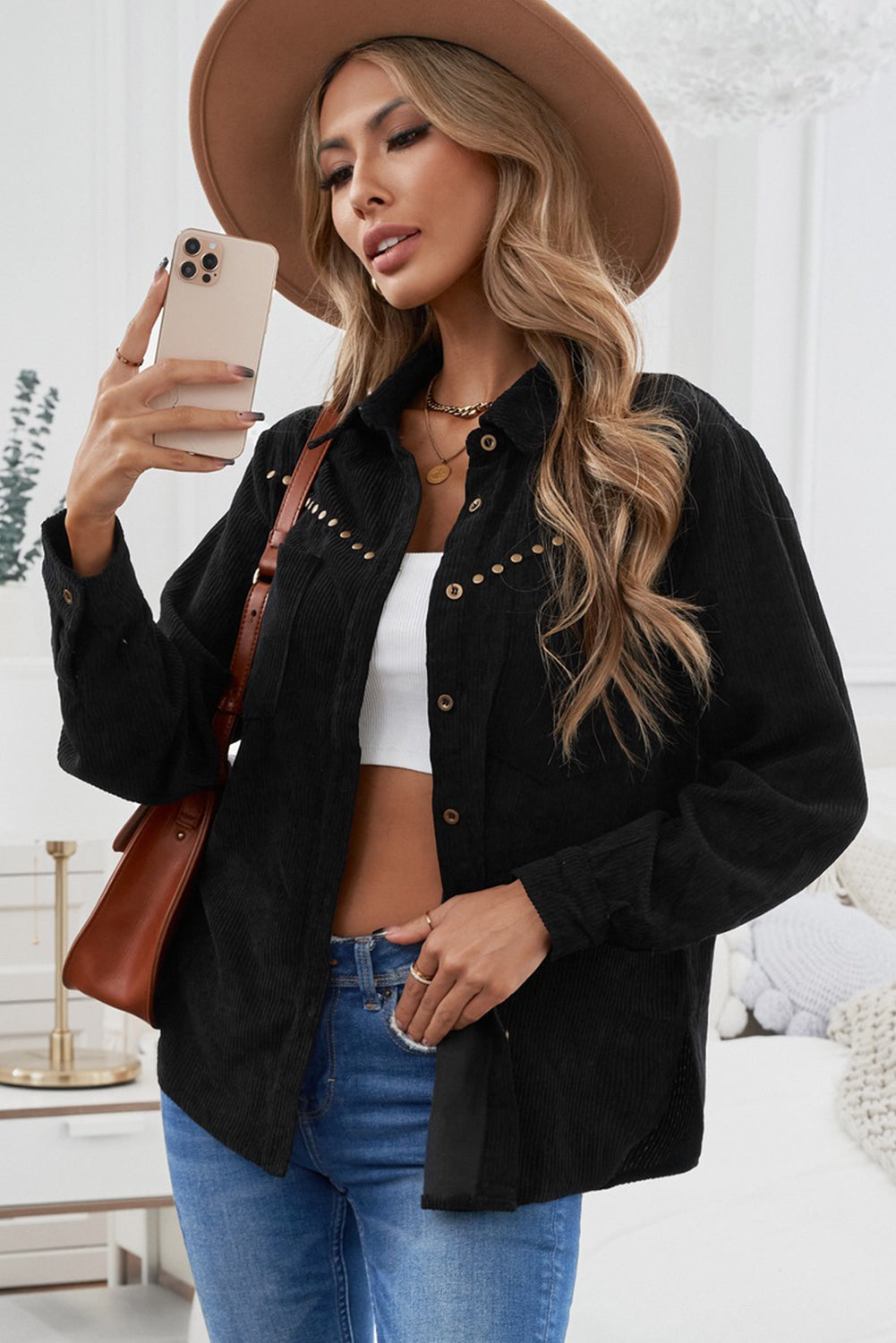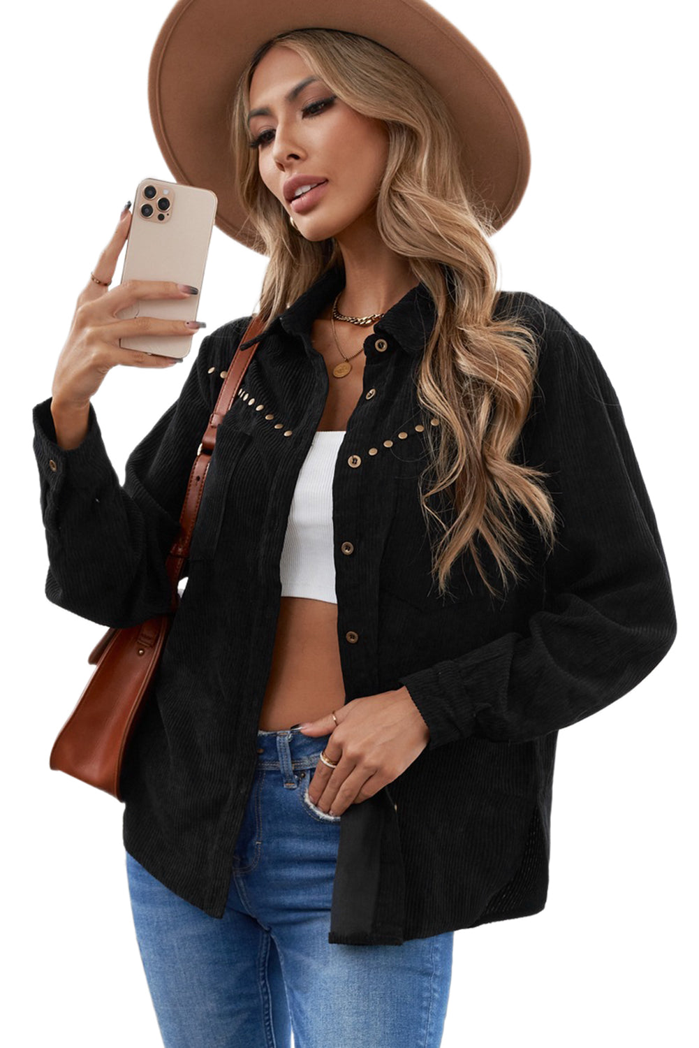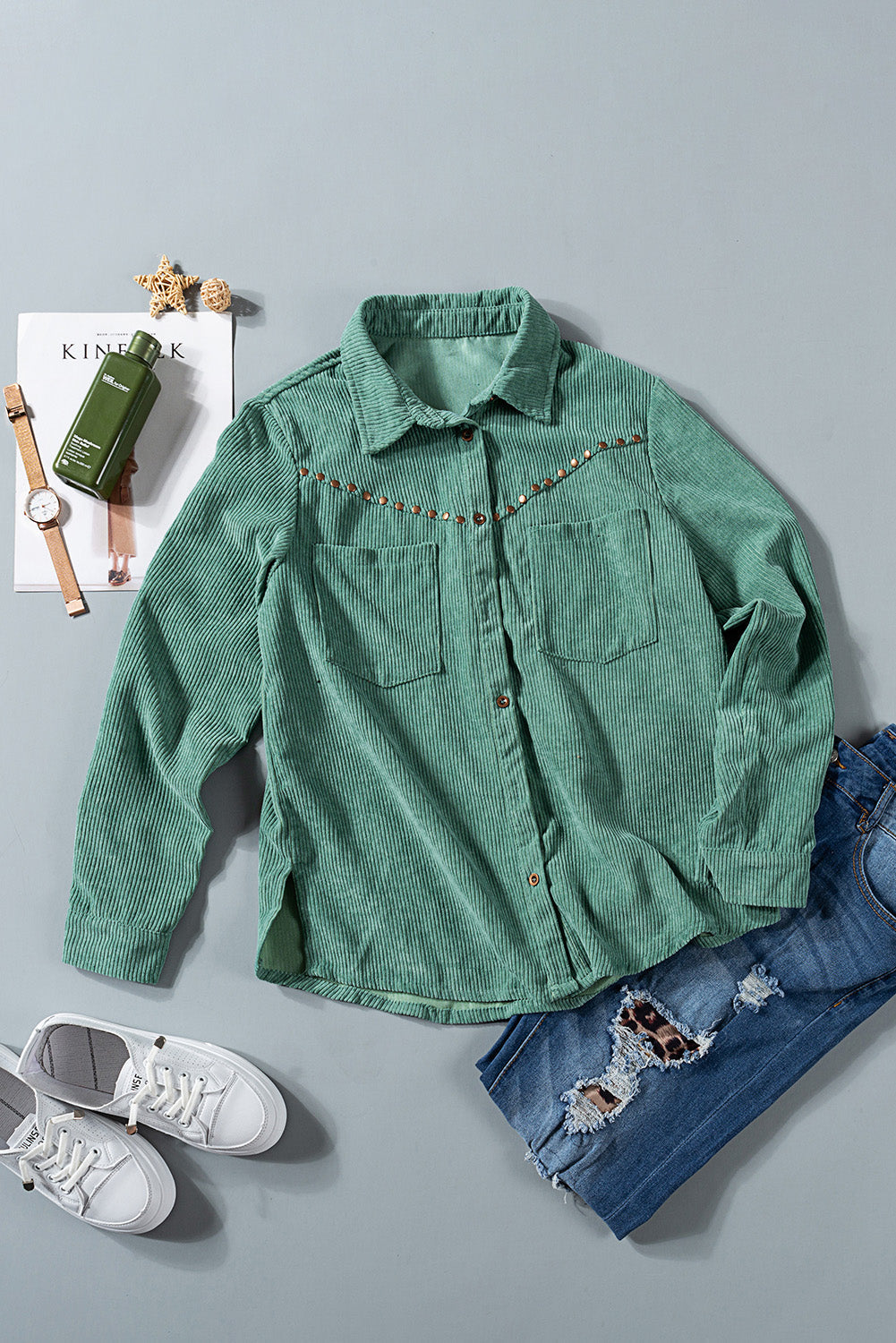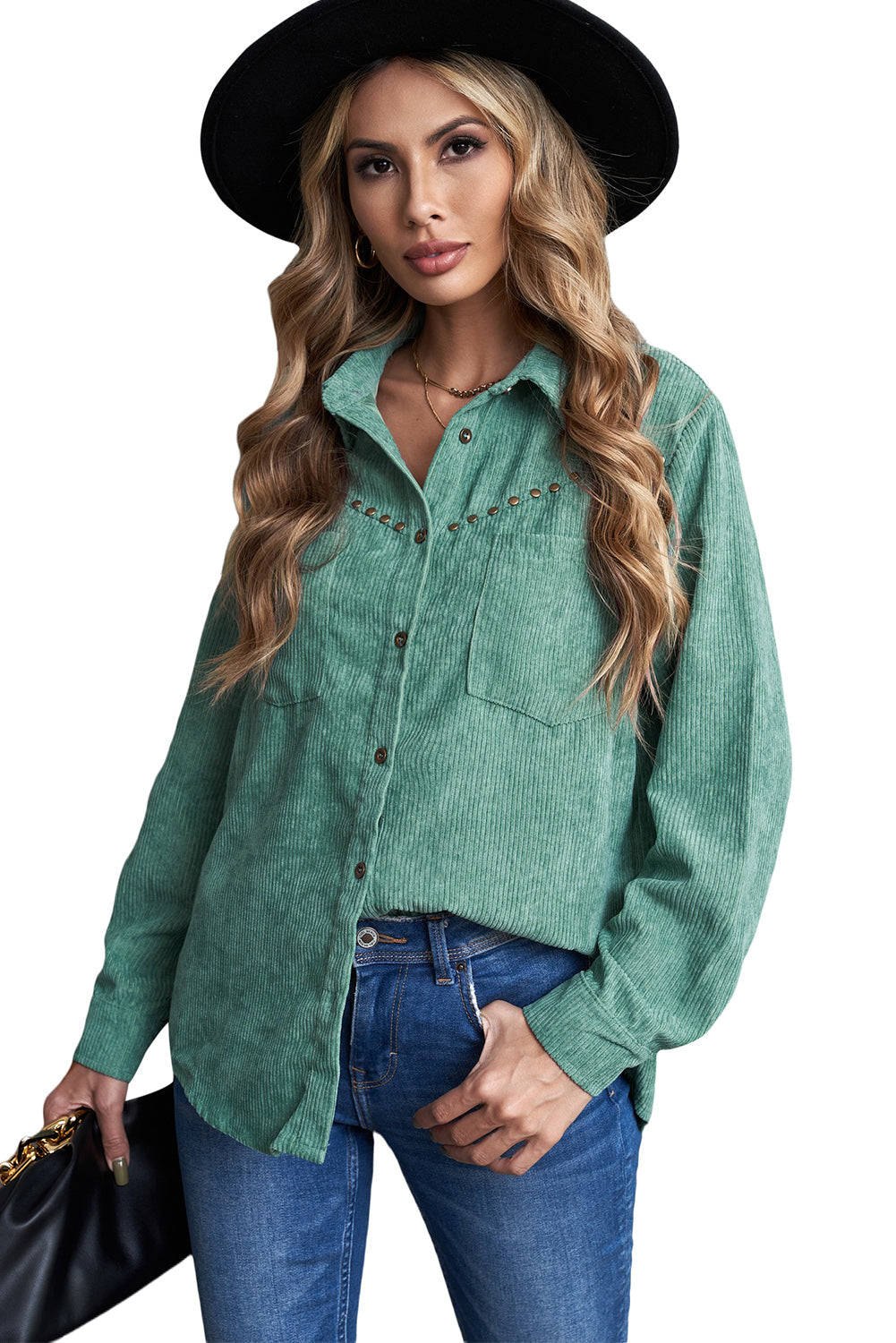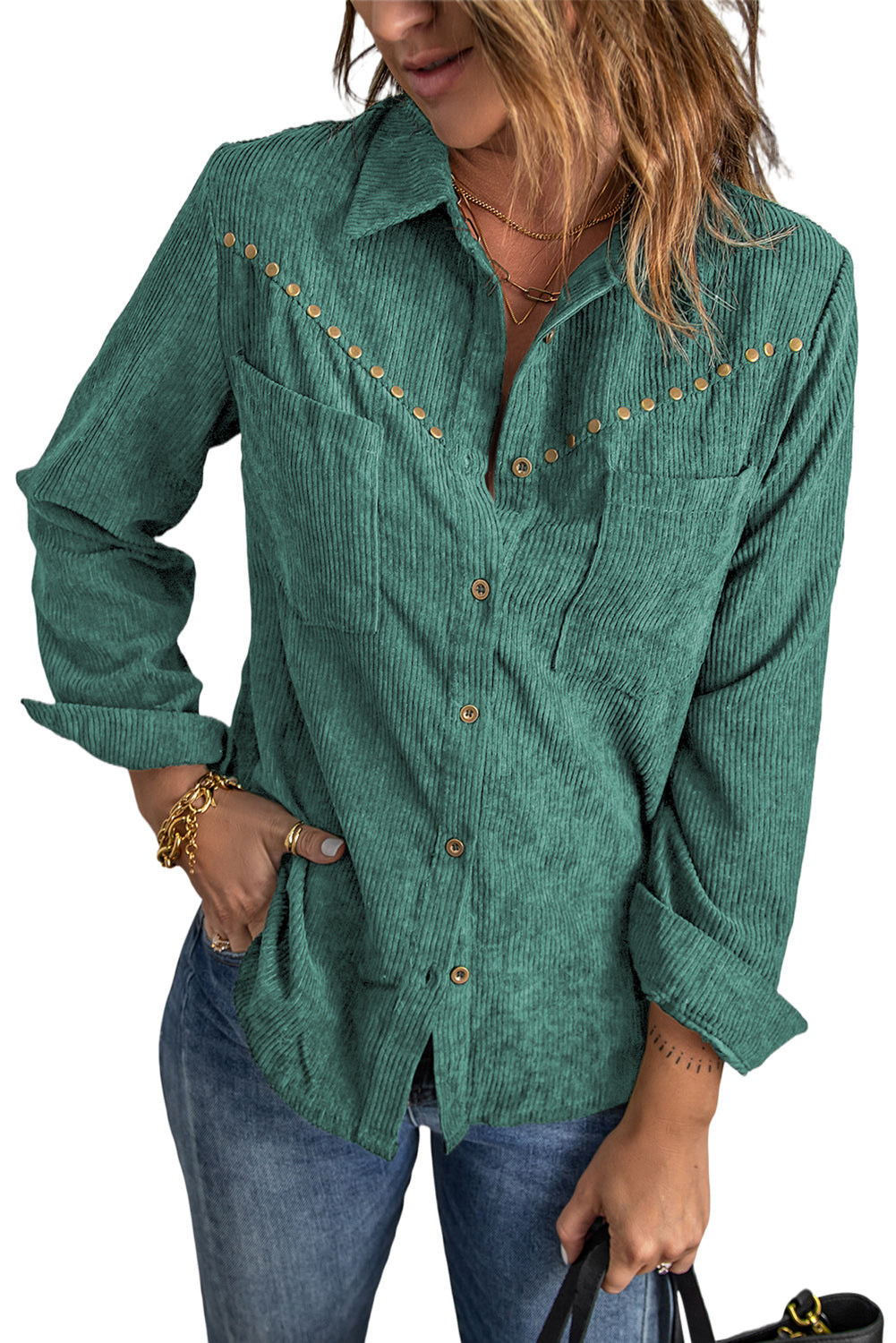 This Rivet Corduroy Buttoned Long Sleeve Shirt With Pockets is the perfect addition to your wardrobe.
