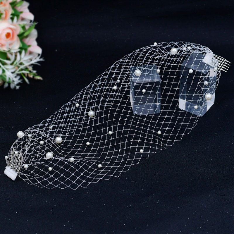 This jeweled veiling with combs adds elegance to your elegant look all at once. Made of lightweight mesh and imitated pearls. stand out in open nettings adorned with sprays of hand-applied pearls. featuringmetallic hair combs at each side for easy placement. Find more trendy women's bridal hair combs or unique hair accessories in our boutique. and complete a vintage look with a puff sleeve top and a leather skirt.