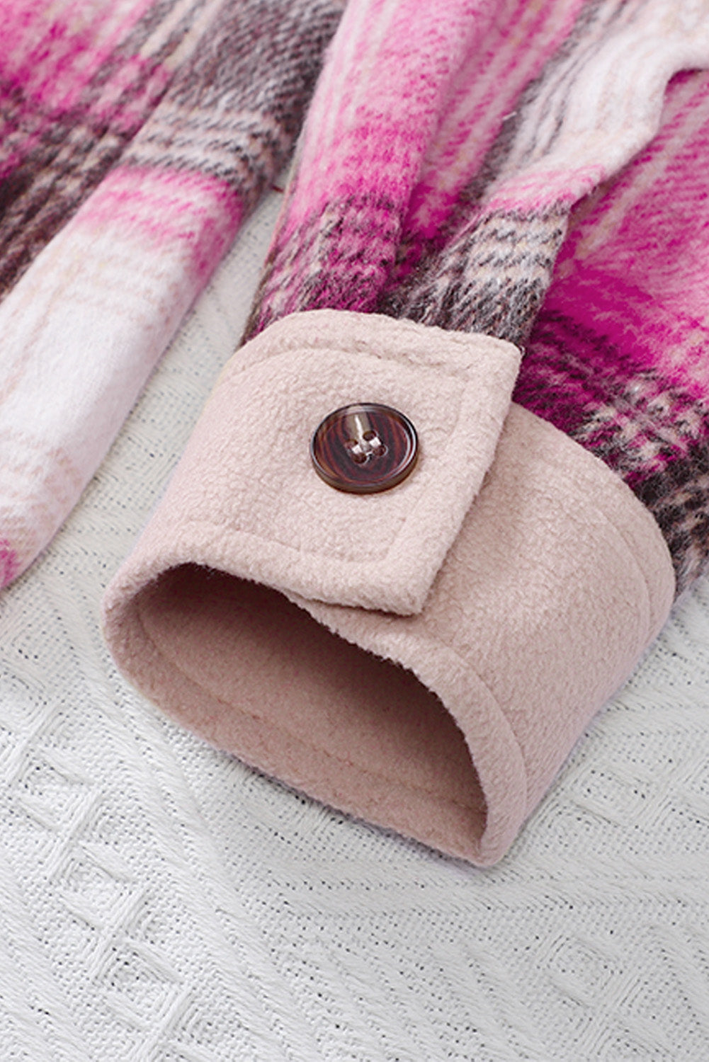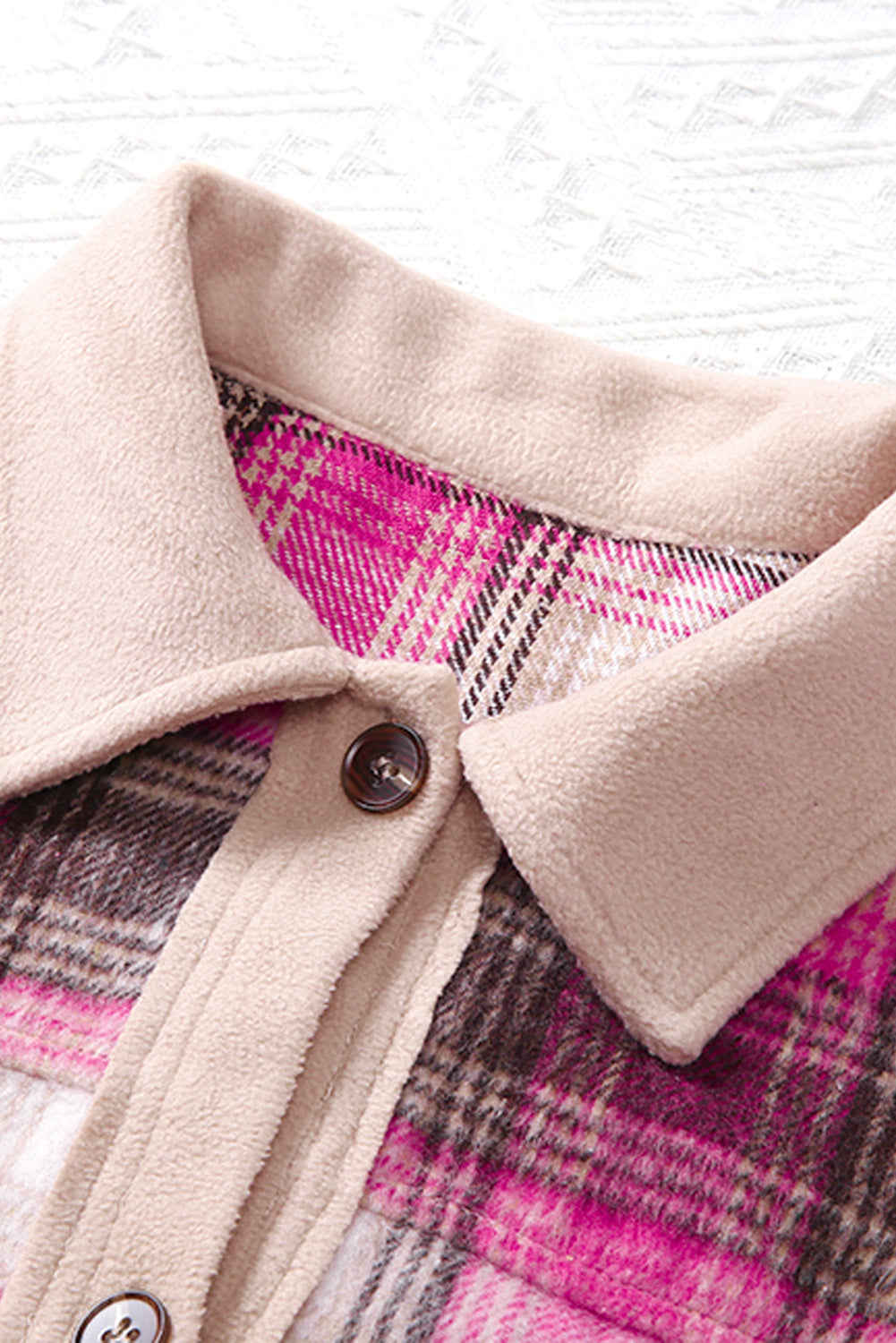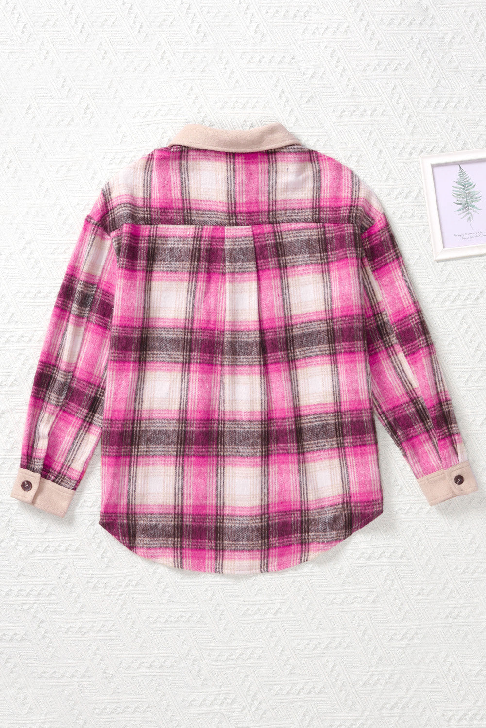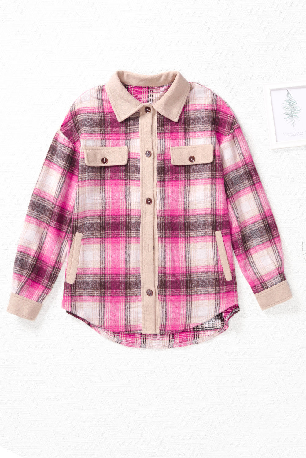 With its timeless style and versatile design. the Rose Contrast Trim Plaid Shacket is sure to become a wardrobe staple.