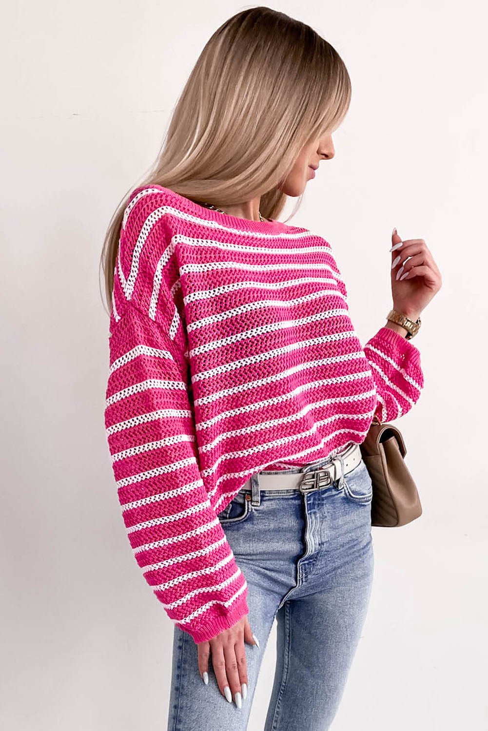 Embrace the chic. comfortable style with the Drop Shoulder Contrasting Striped Sweater. Made from a blend of 55% Acrylic and 45% Cotton. this sweater combines both comfort and durability in a modern design.