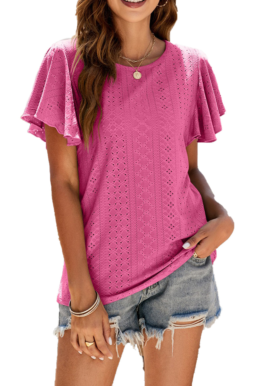 The Rose Flutter Sleeve Eyelet Textured Top makes a statement wherever you go!