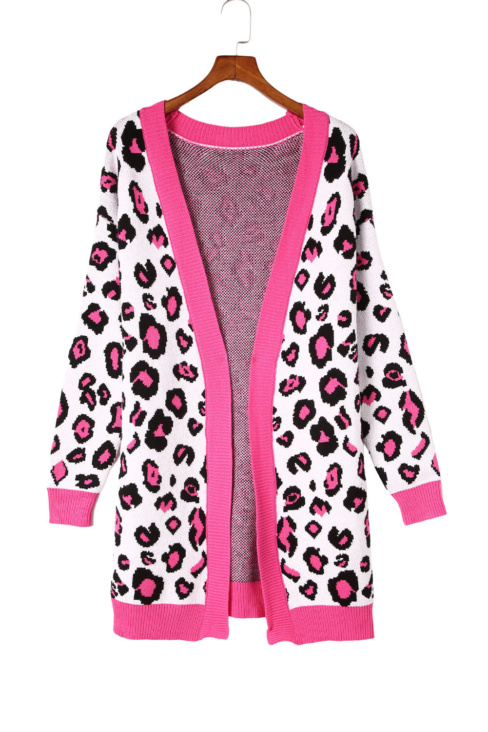 This Rose Leopard Ribbed Trim Knitted Open Front Long Cardigan is the perfect addition to your wardrobe.