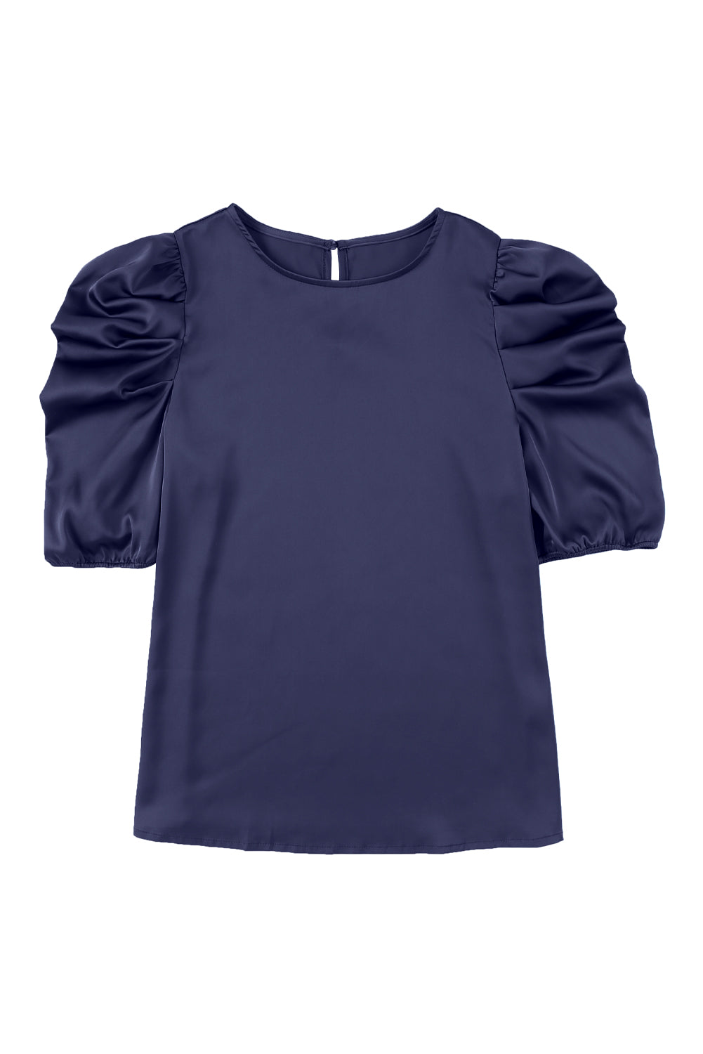 Combining luxurious satin and stylish ruched puff sleeves. this classic blouse is sure to add elegance to any outfit. Add some glamour to your look today!
