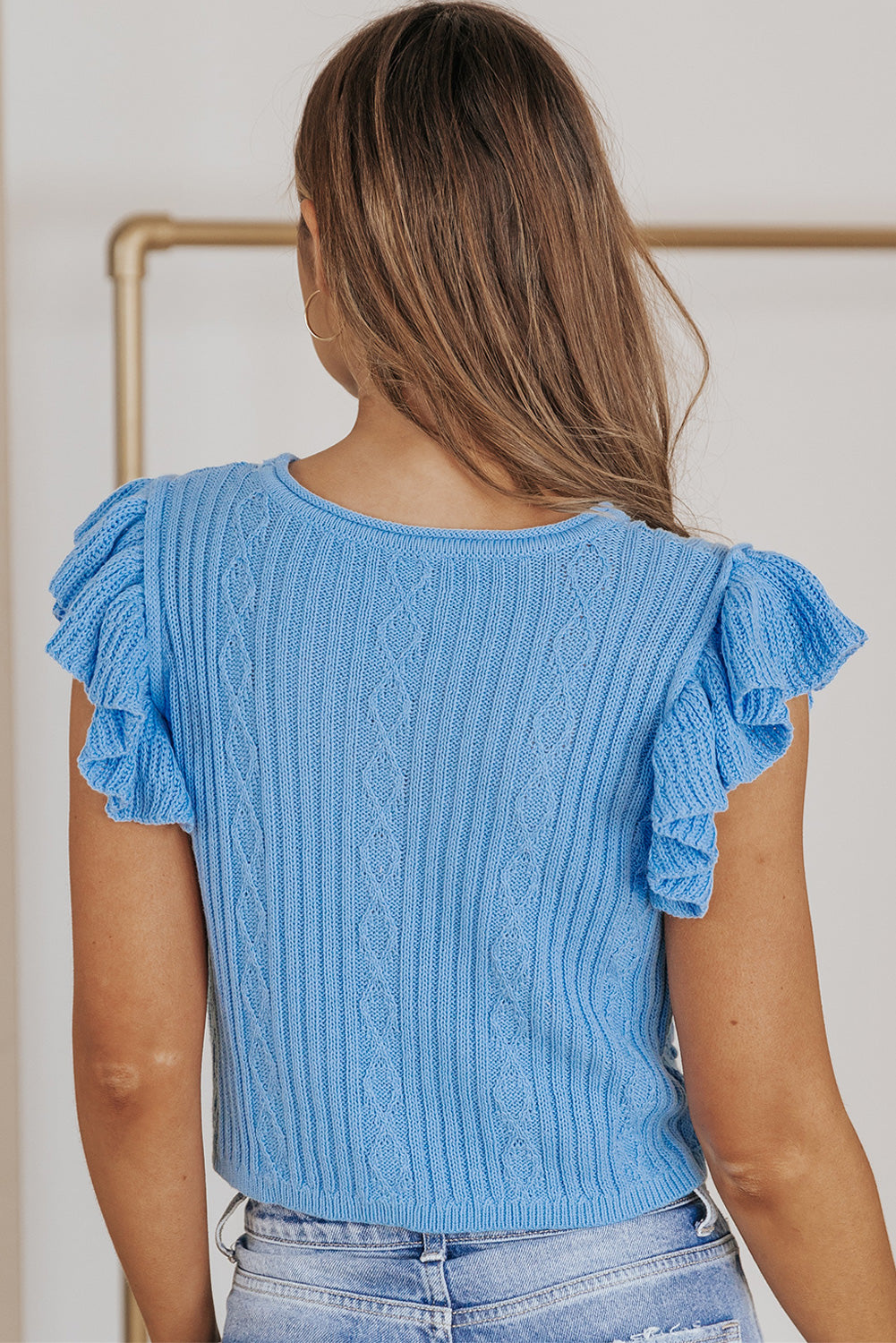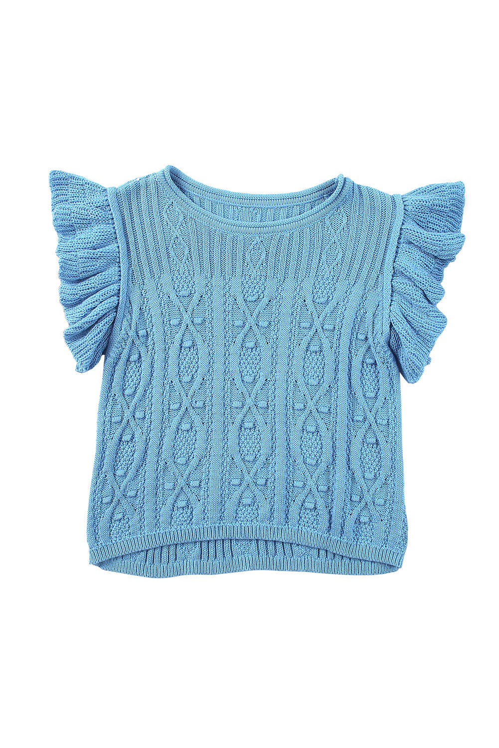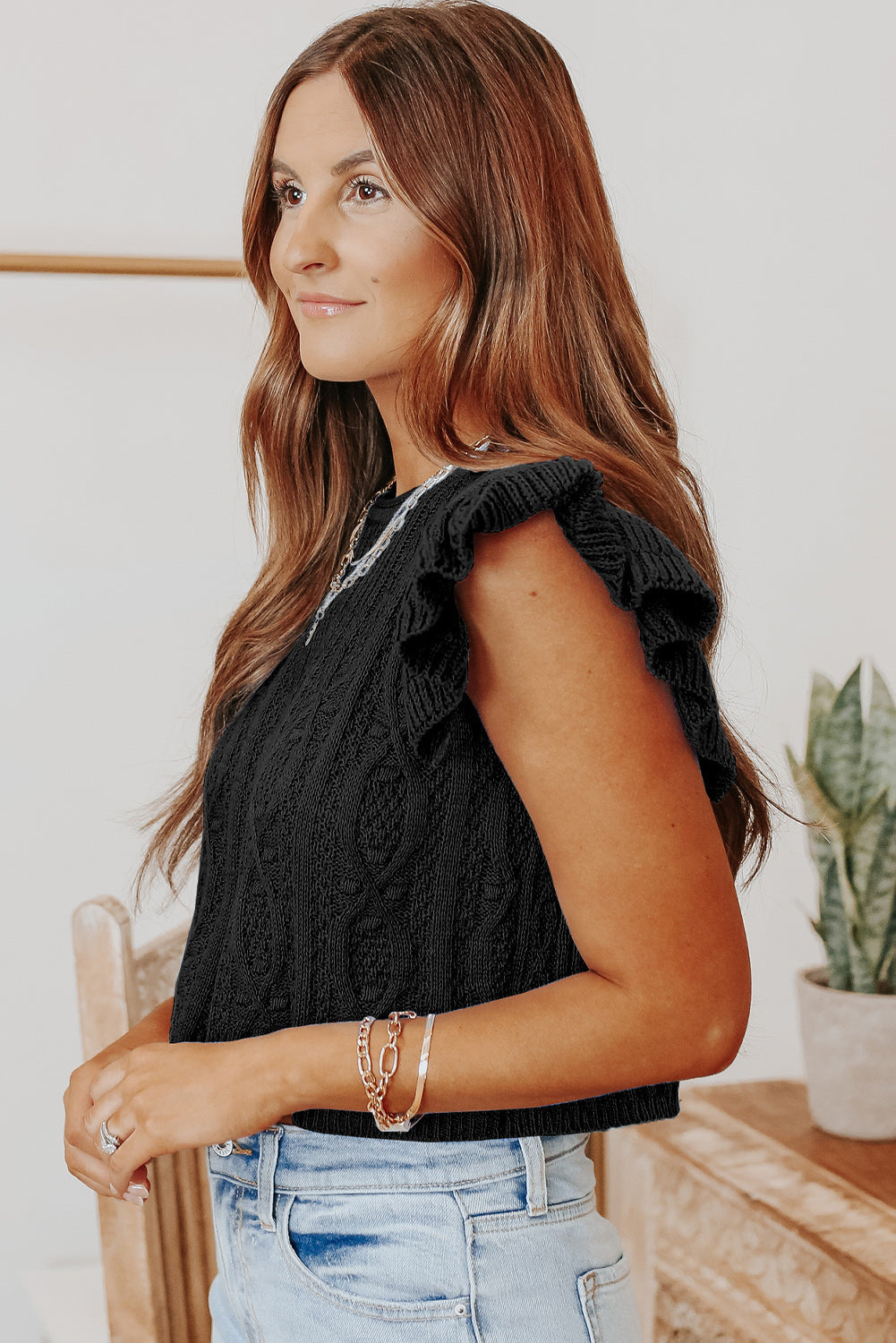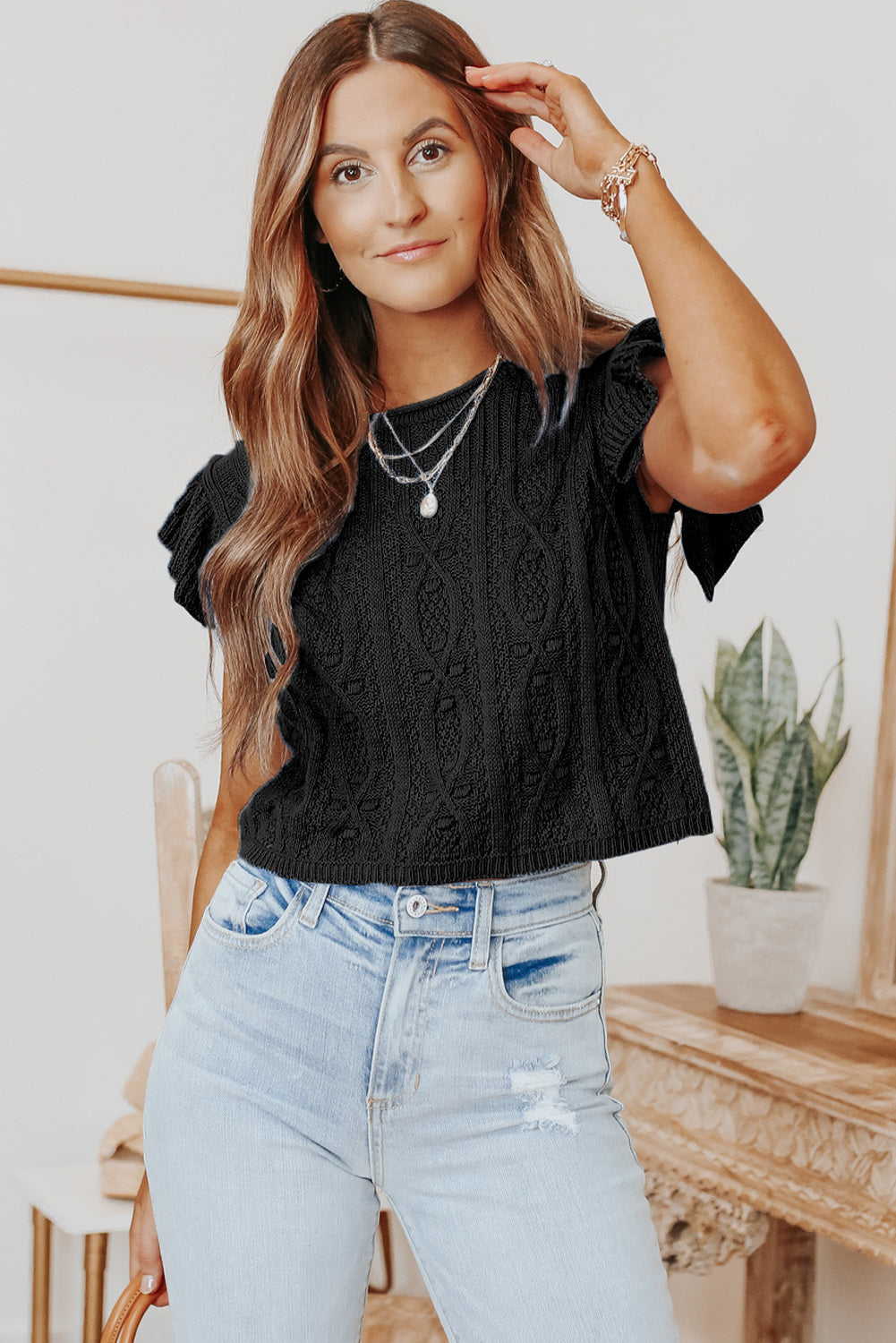 Add a touch of sophistication to your wardrobe with the Ruffle Sleeve Cable Knit Sweater.