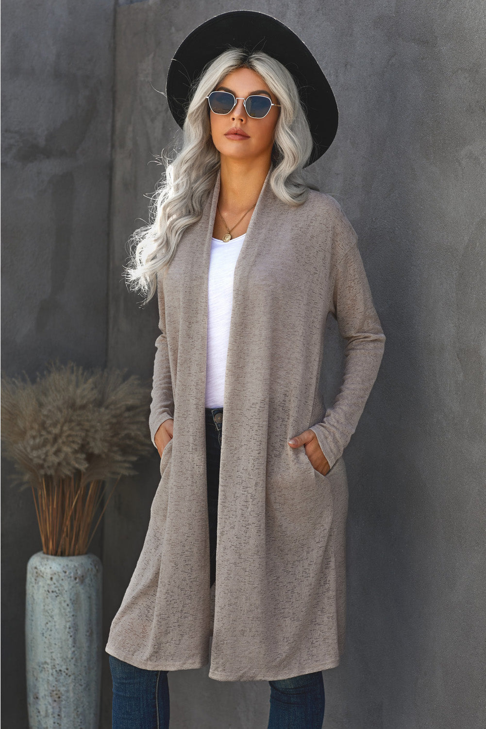 Introducing the Slouchy Pocketed Knit Longline Cardigan. the perfect addition to your wardrobe.