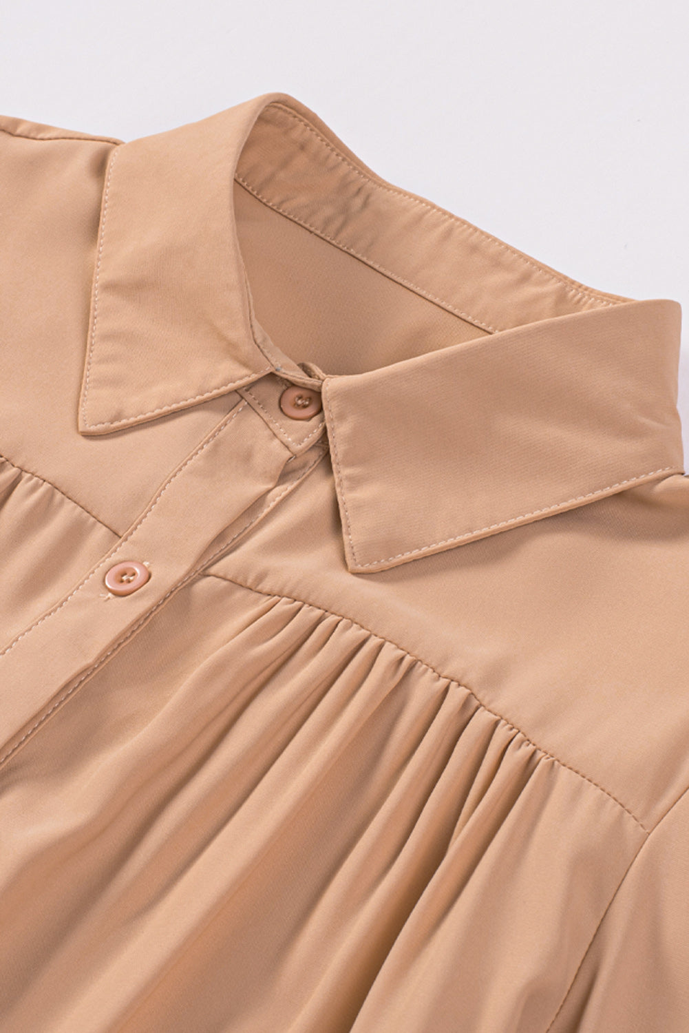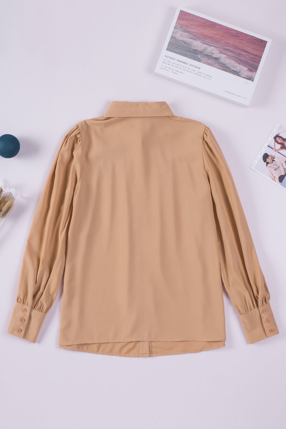 Look stylish and feel comfortable in this Solid Button-Up Loose Long Sleeve Shirt.