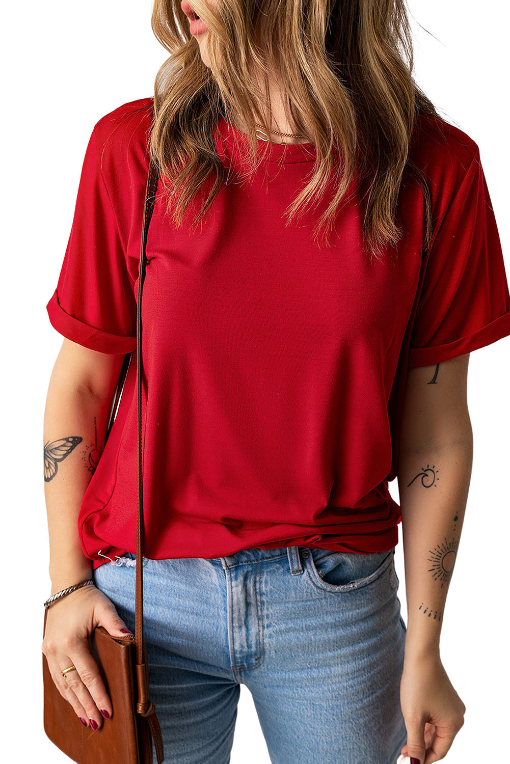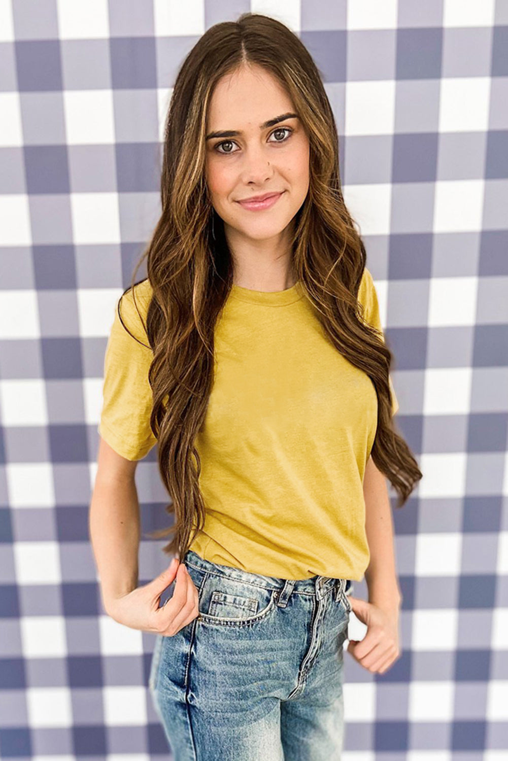 Whether you're running errands or going out for a night on the town. this Solid Color Crew Neck Tee is sure to become your go-to top.