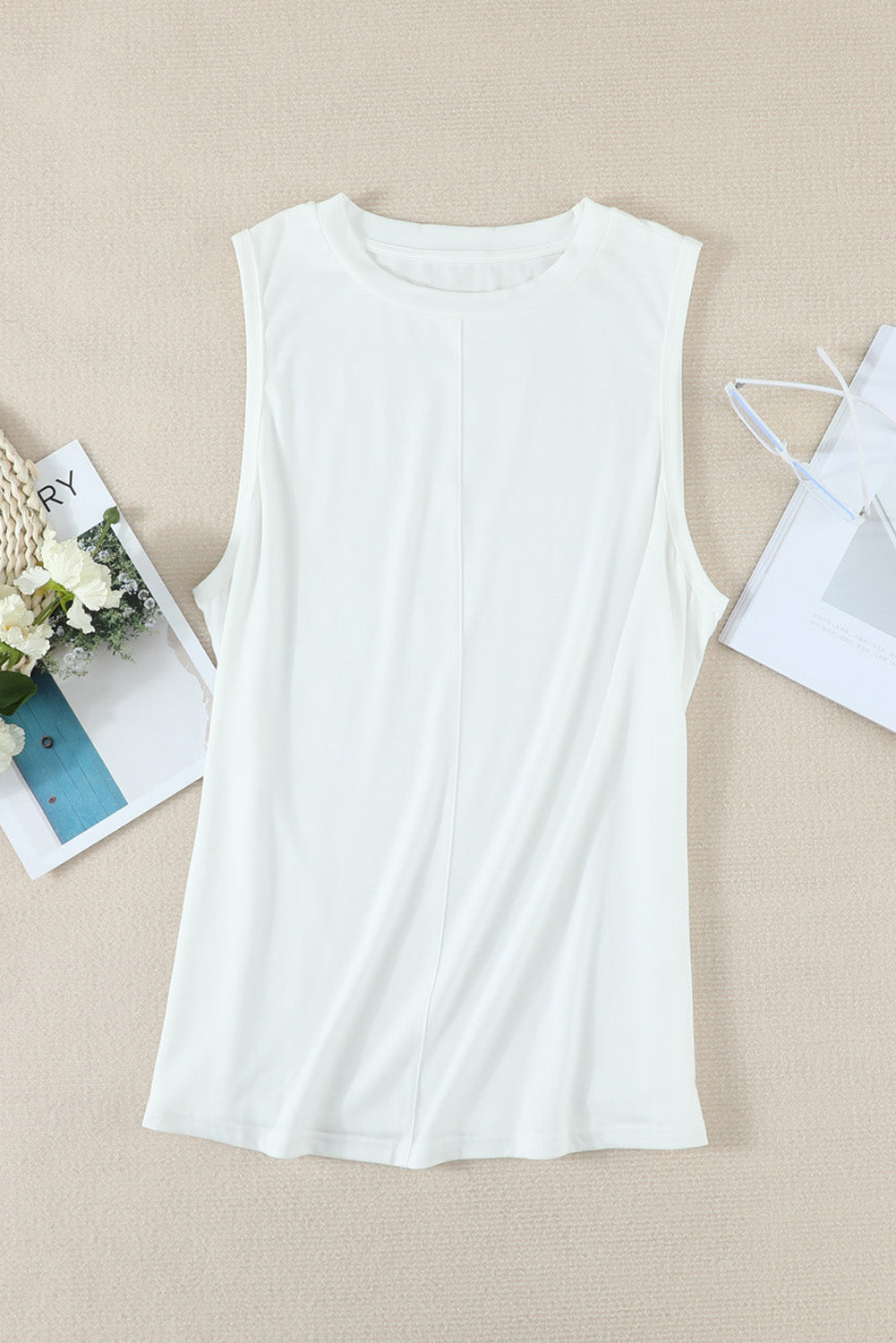 Look no further than this Solid Color Crewneck Sleeveless Top for your next wardrobe staple.