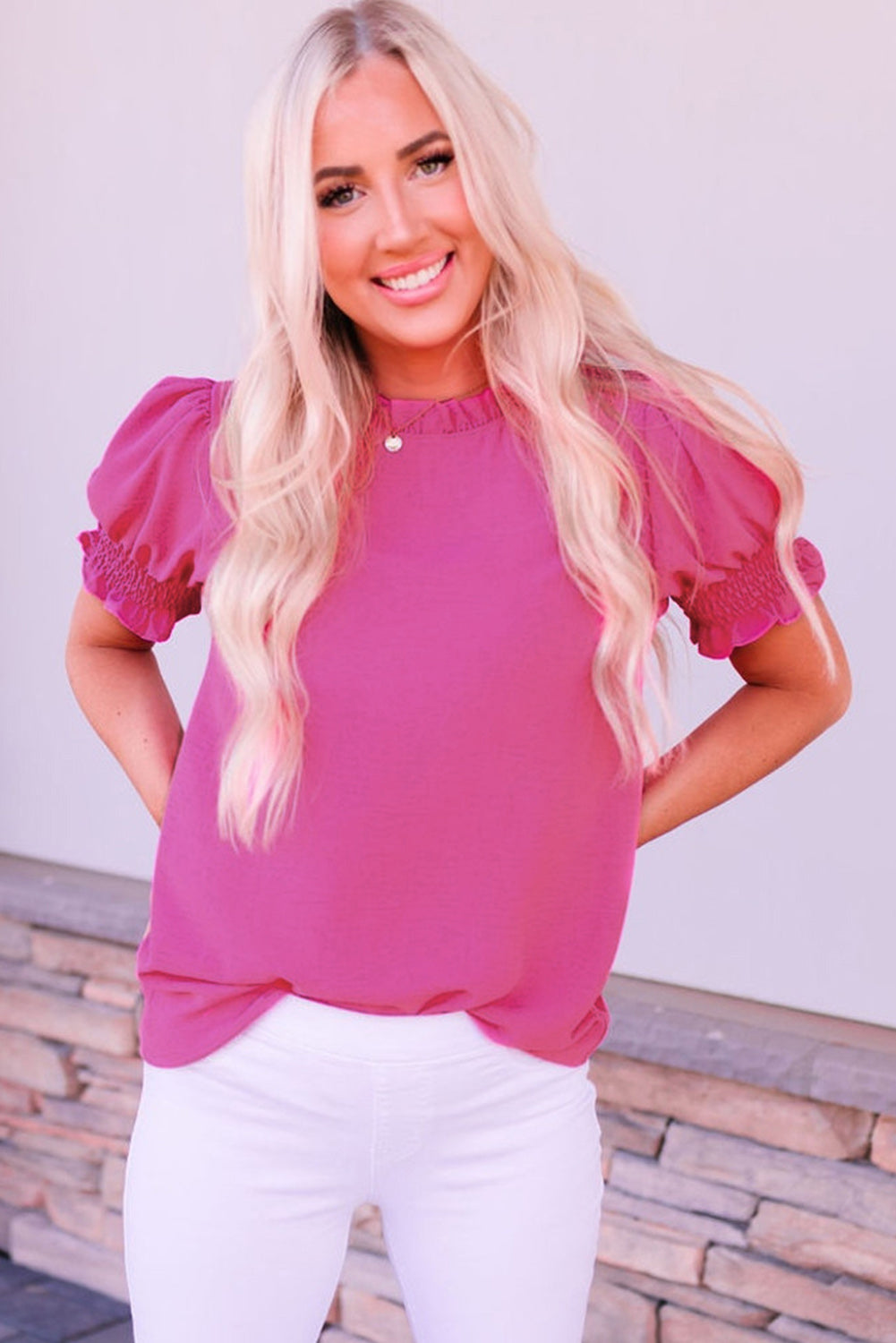 Achieve effortless sophistication with this Solid Color Smocked Puff Sleeve Blouse!