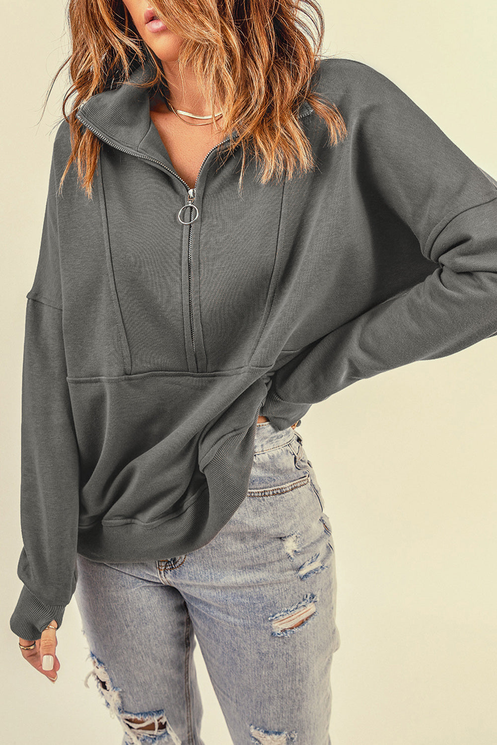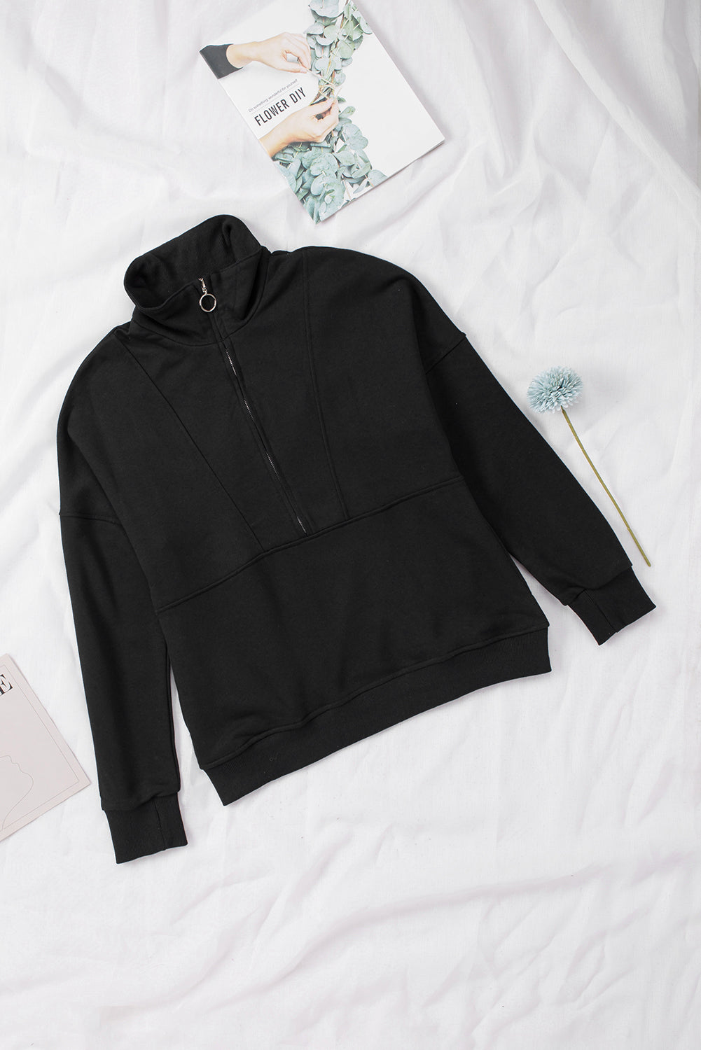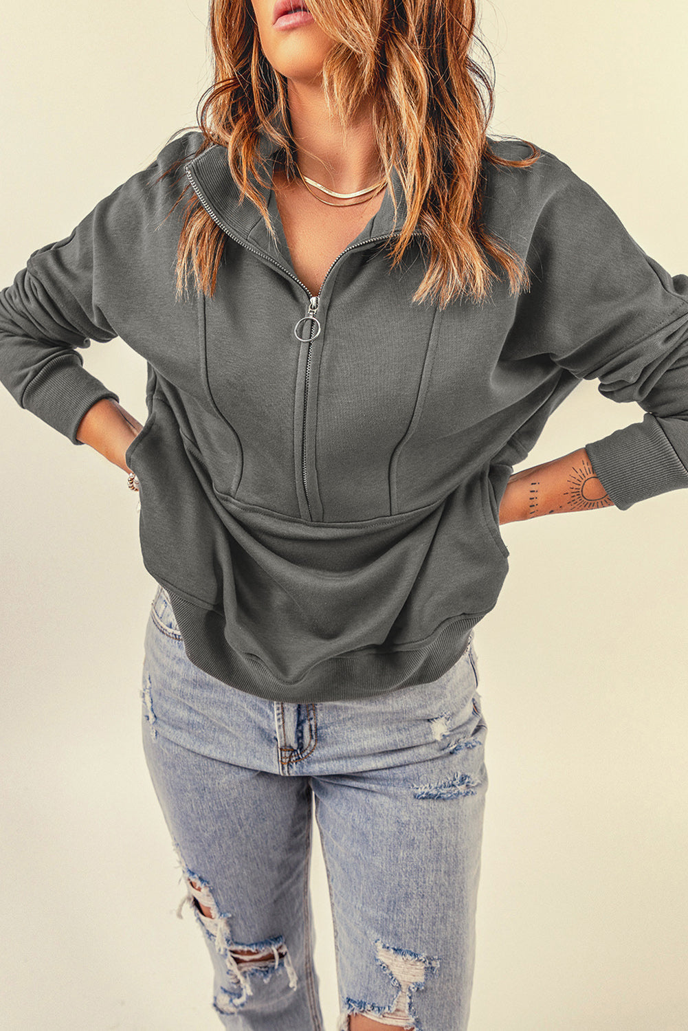 This Solid Color Zip Collar Sweatshirt With Pockets is the perfect addition to your wardrobe.