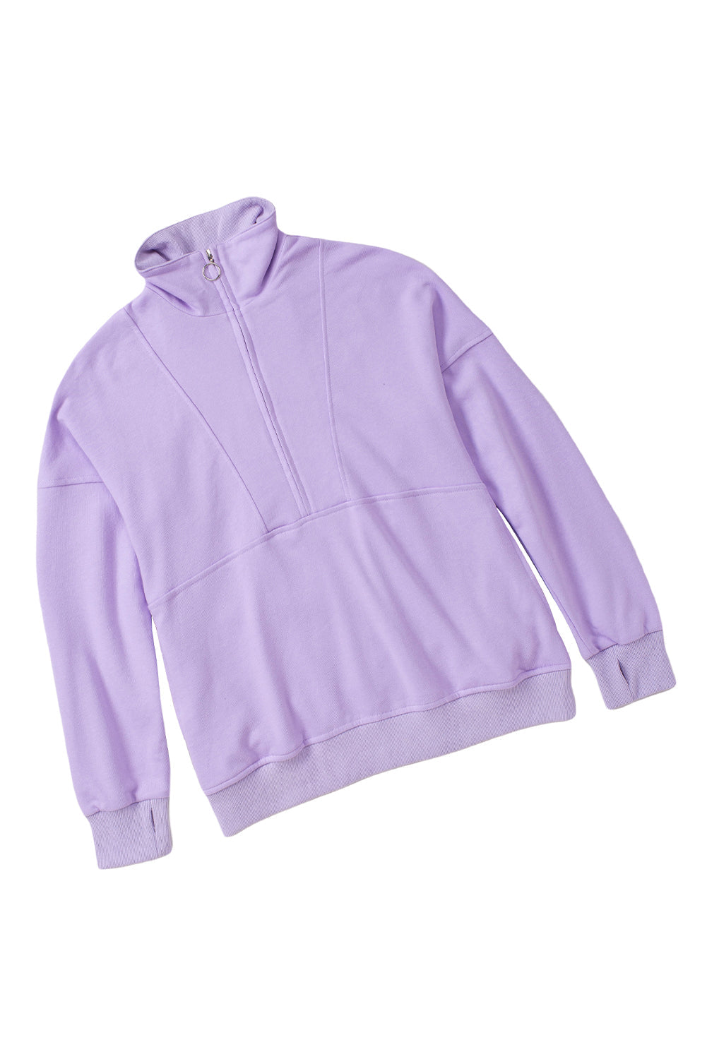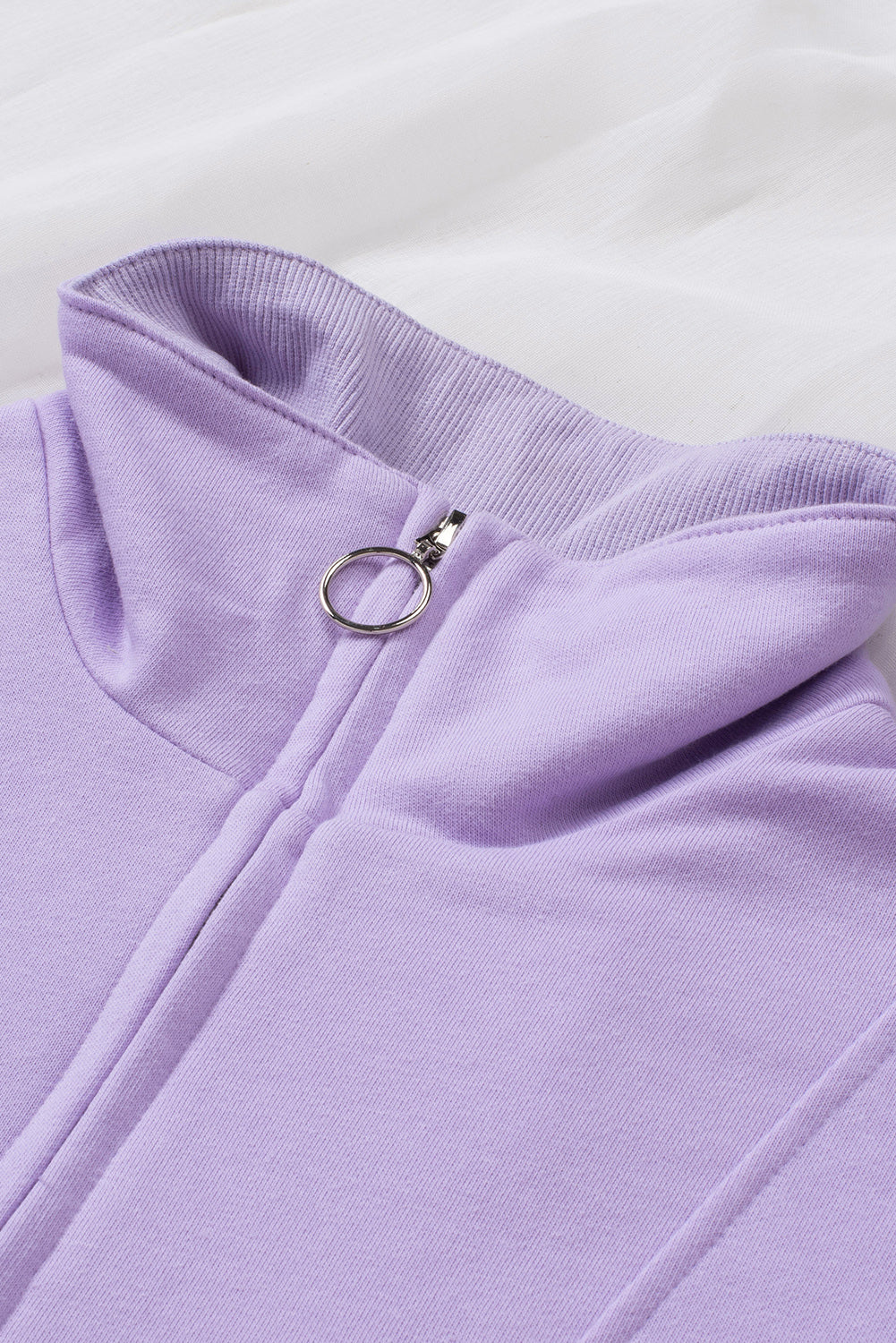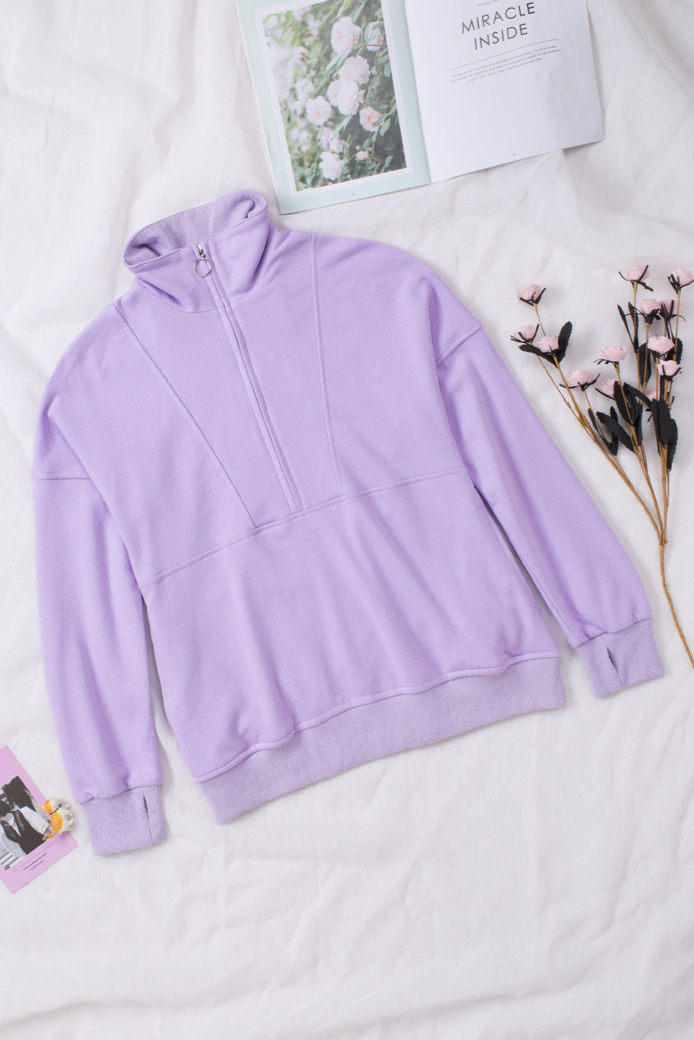 This Solid Color Zip Collar Sweatshirt With Pockets is the perfect addition to your wardrobe.