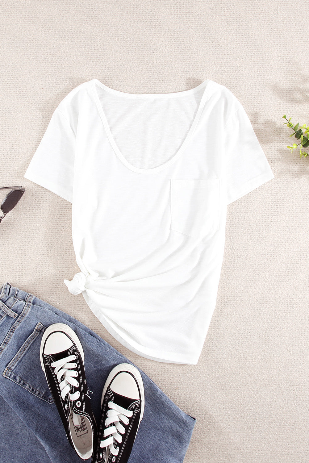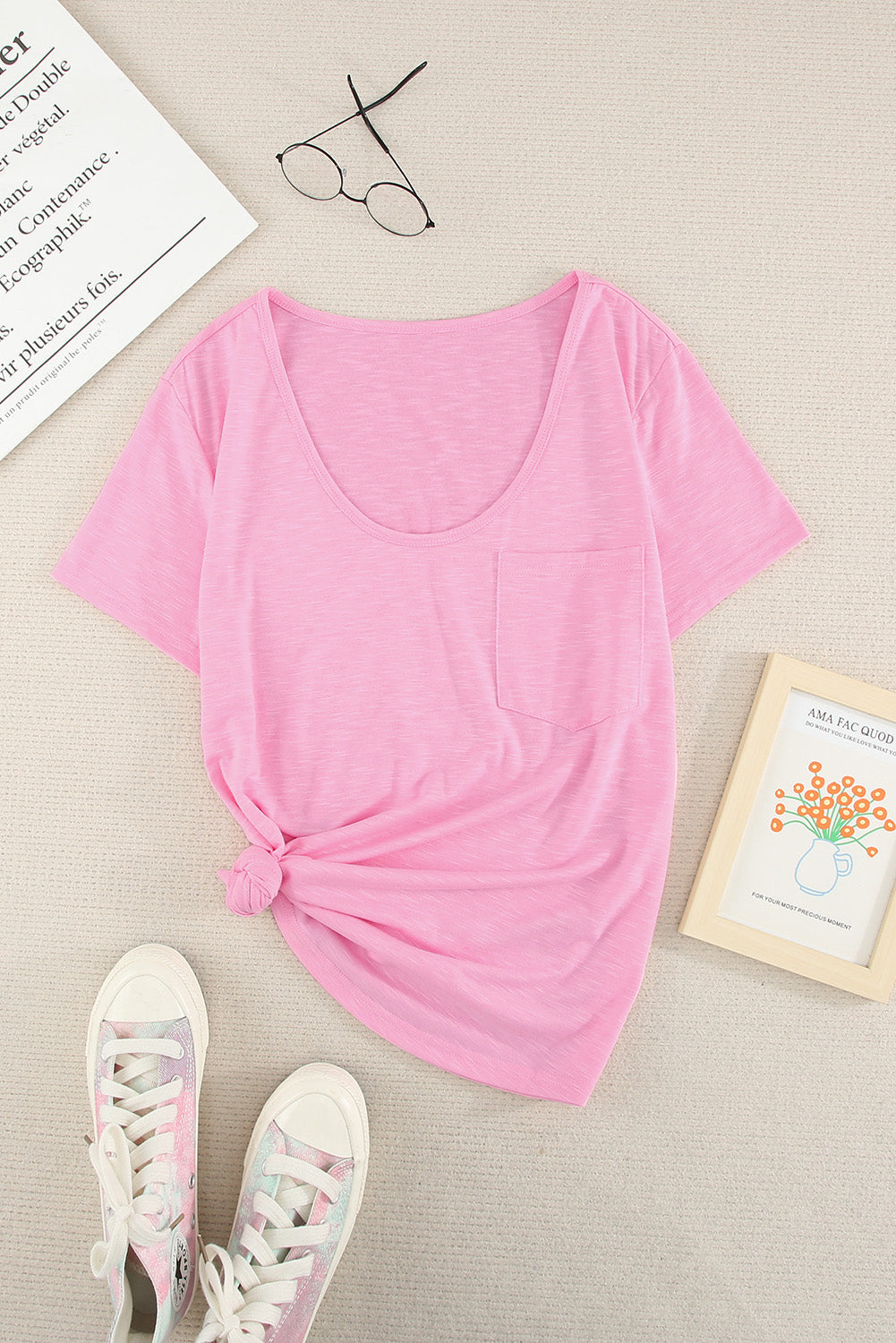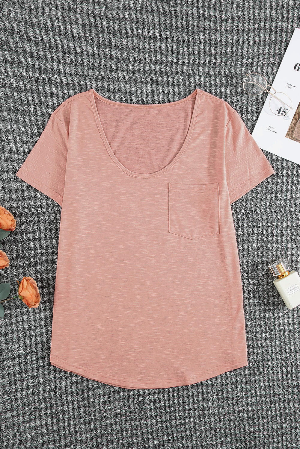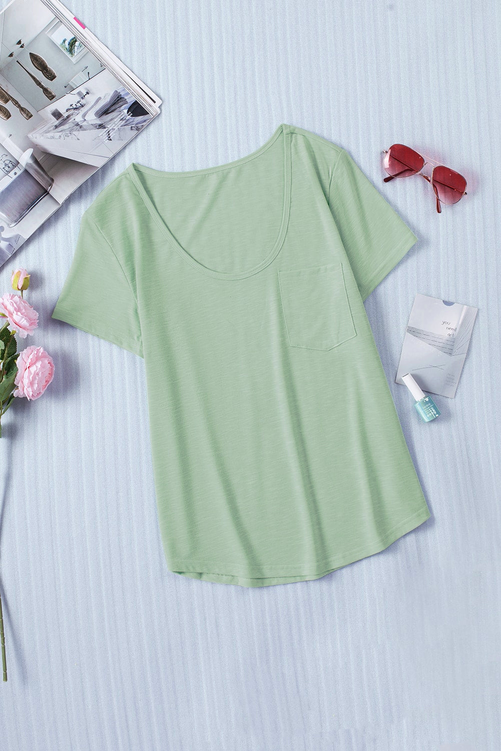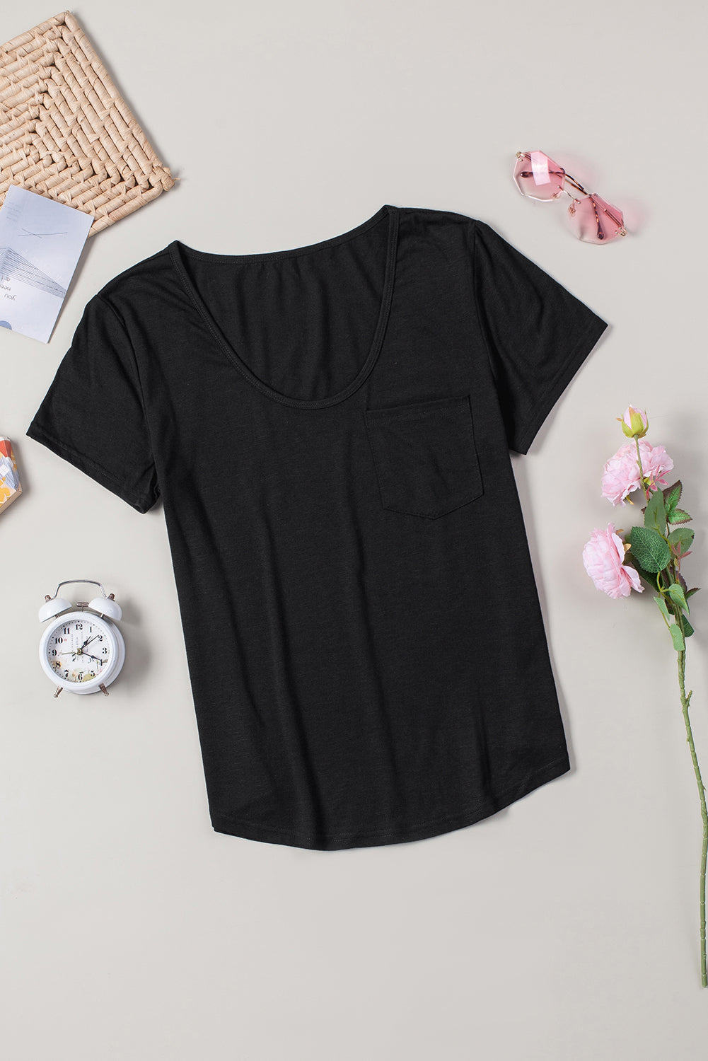 This Solid Pocket Front Scoop Neck Short Sleeve T-Shirt is the perfect addition to your wardrobe.