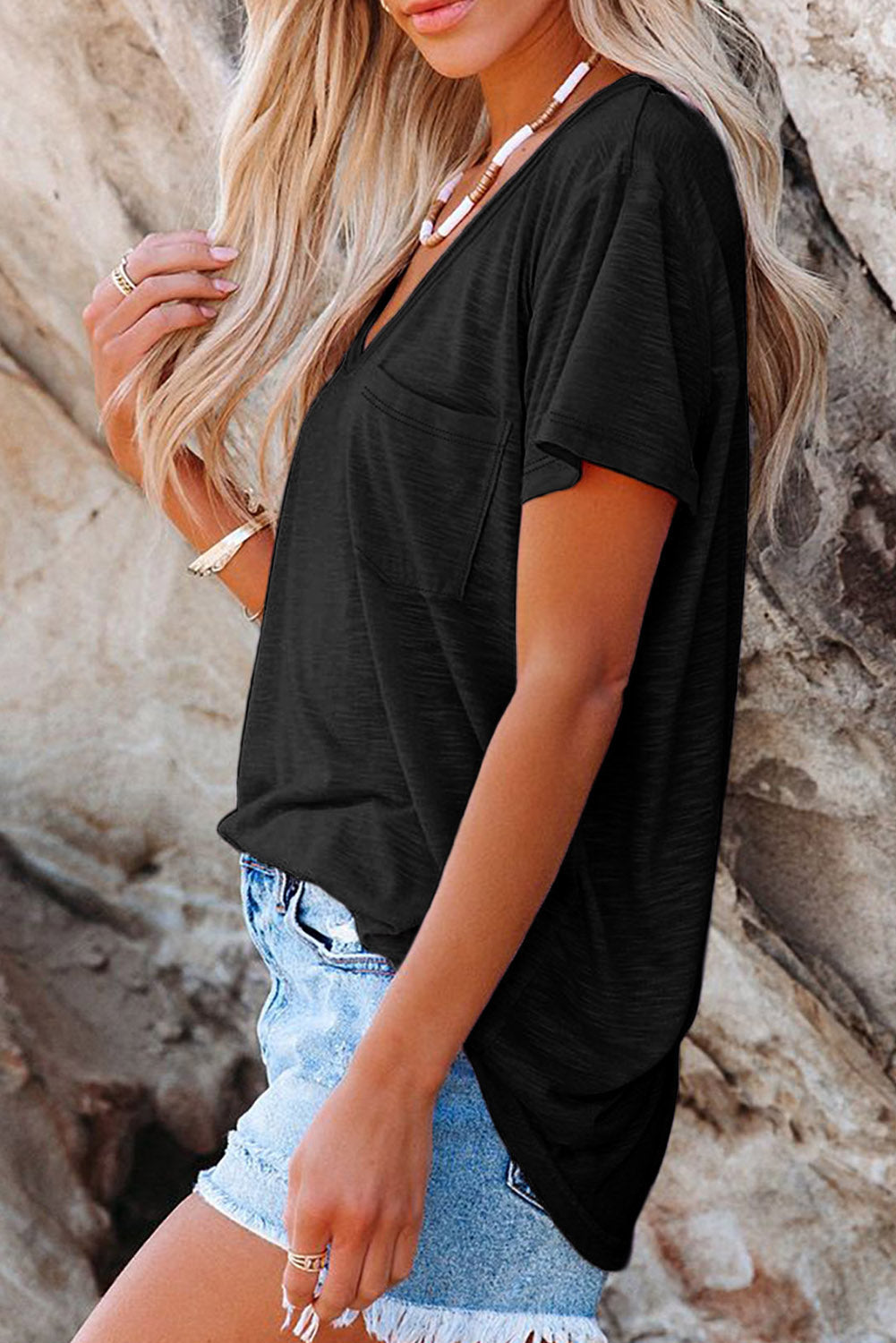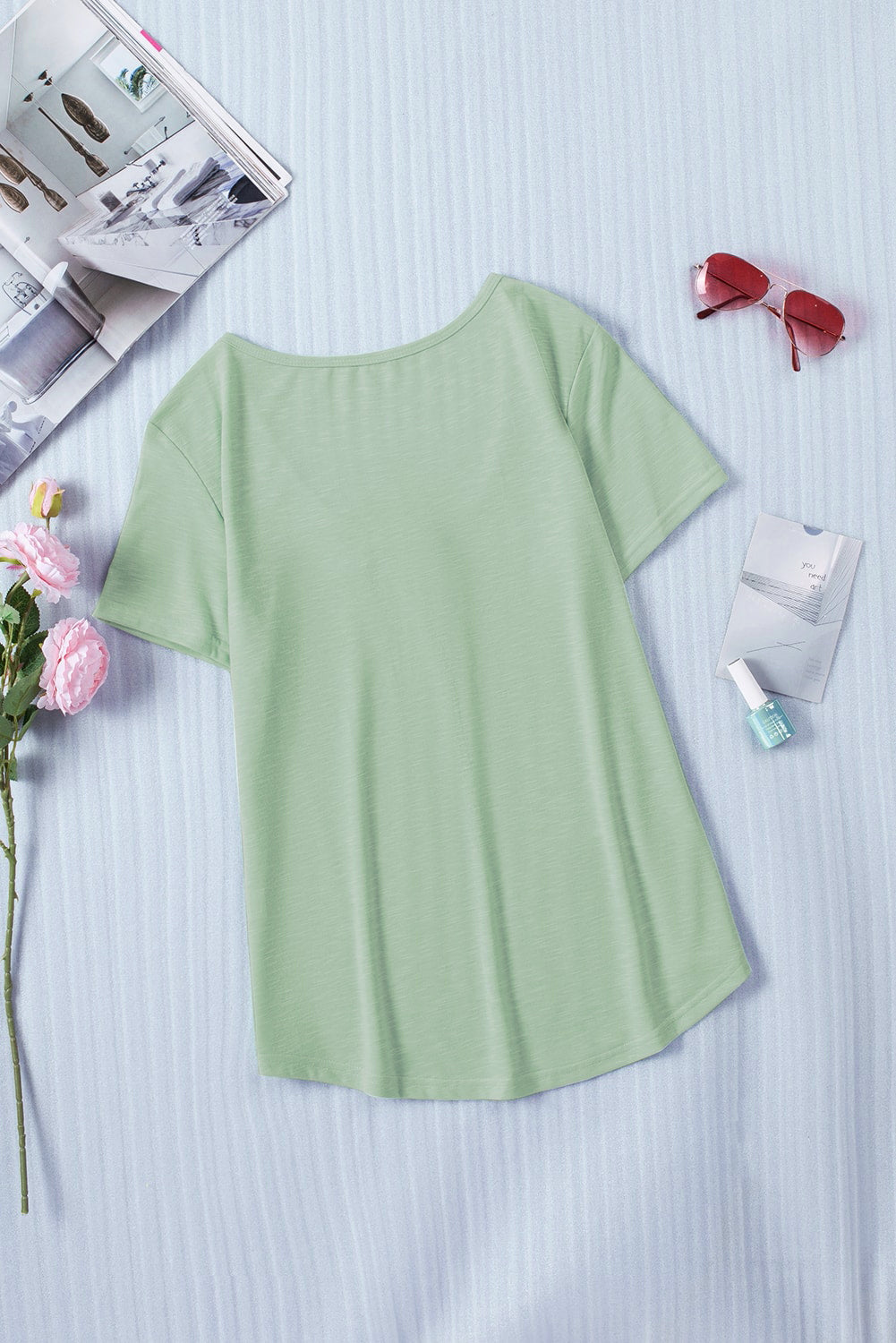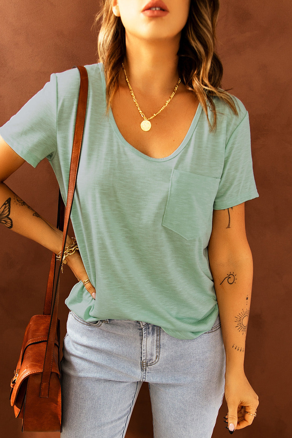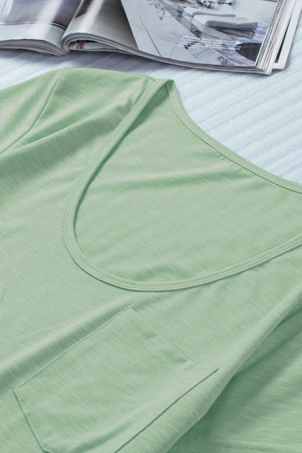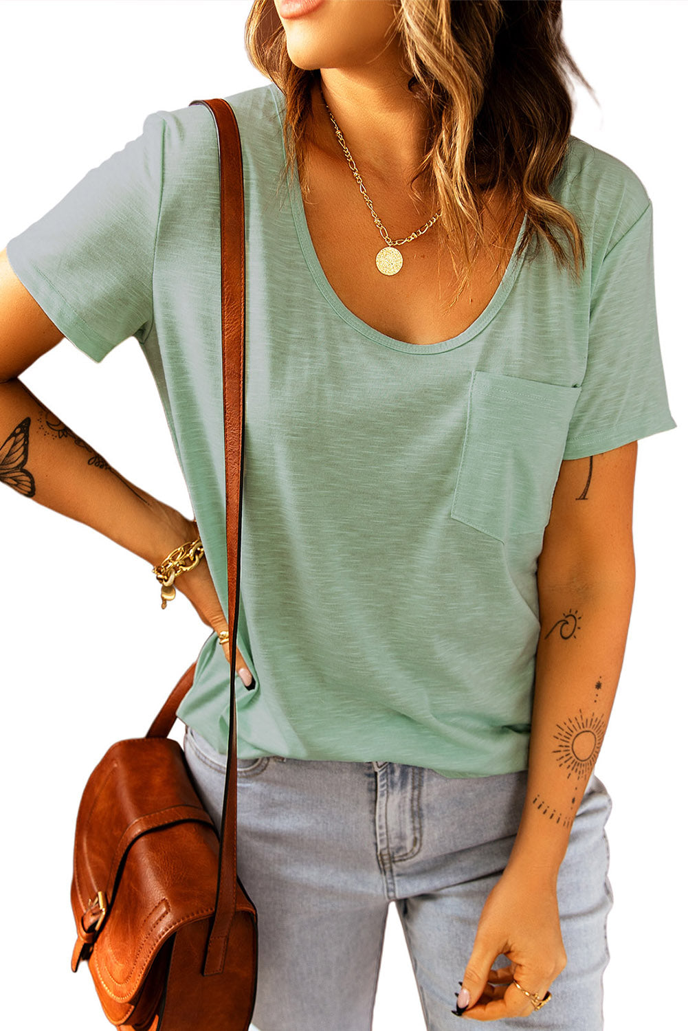 This Solid Pocket Front Scoop Neck Short Sleeve T-Shirt is the perfect addition to your wardrobe.
