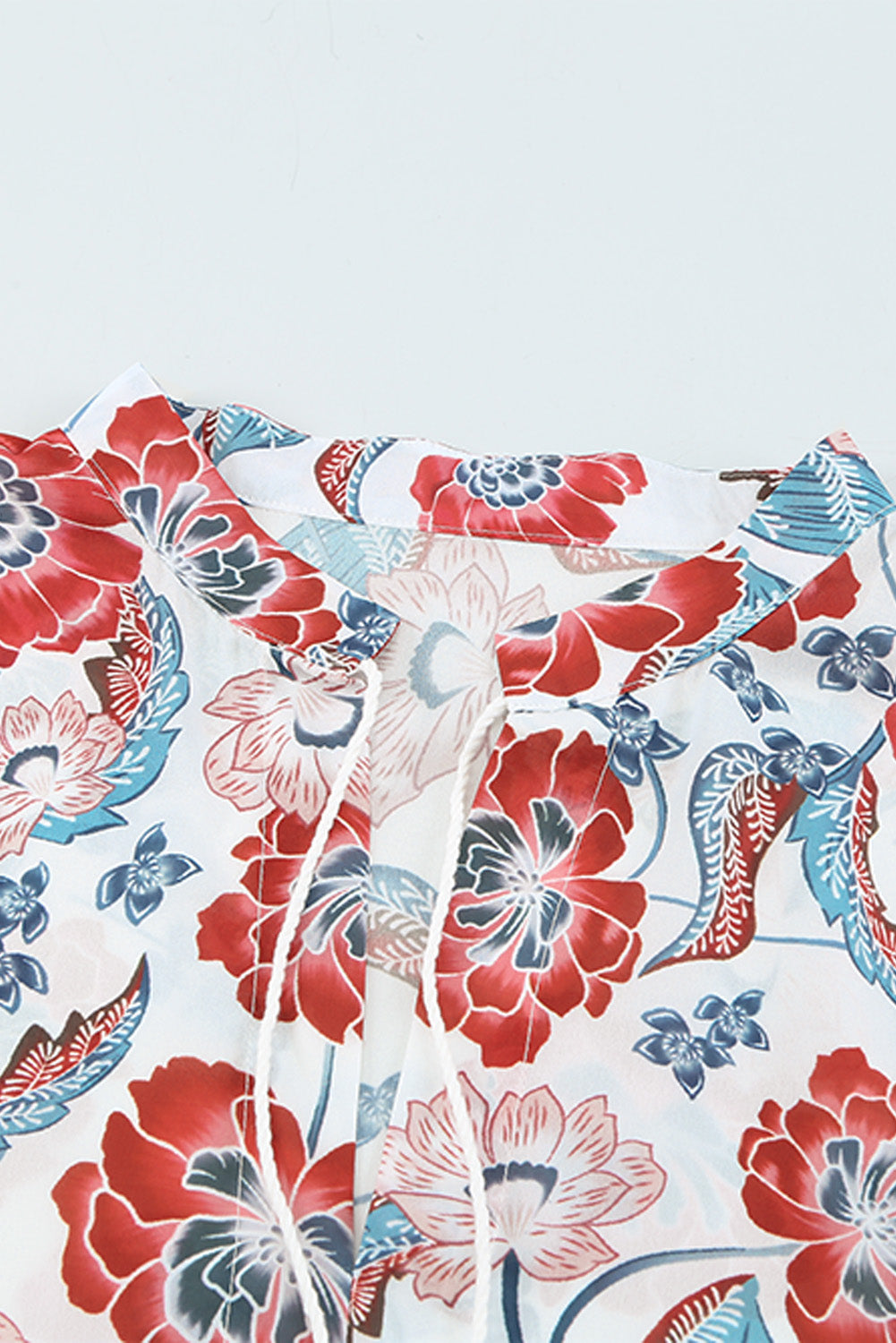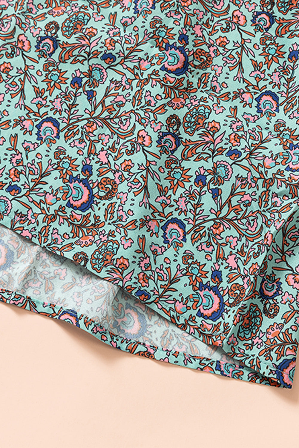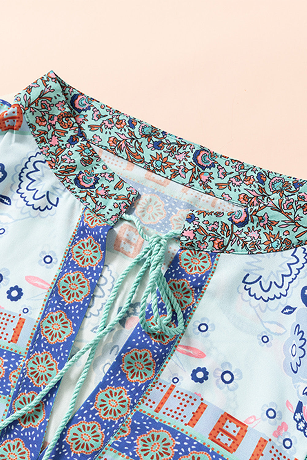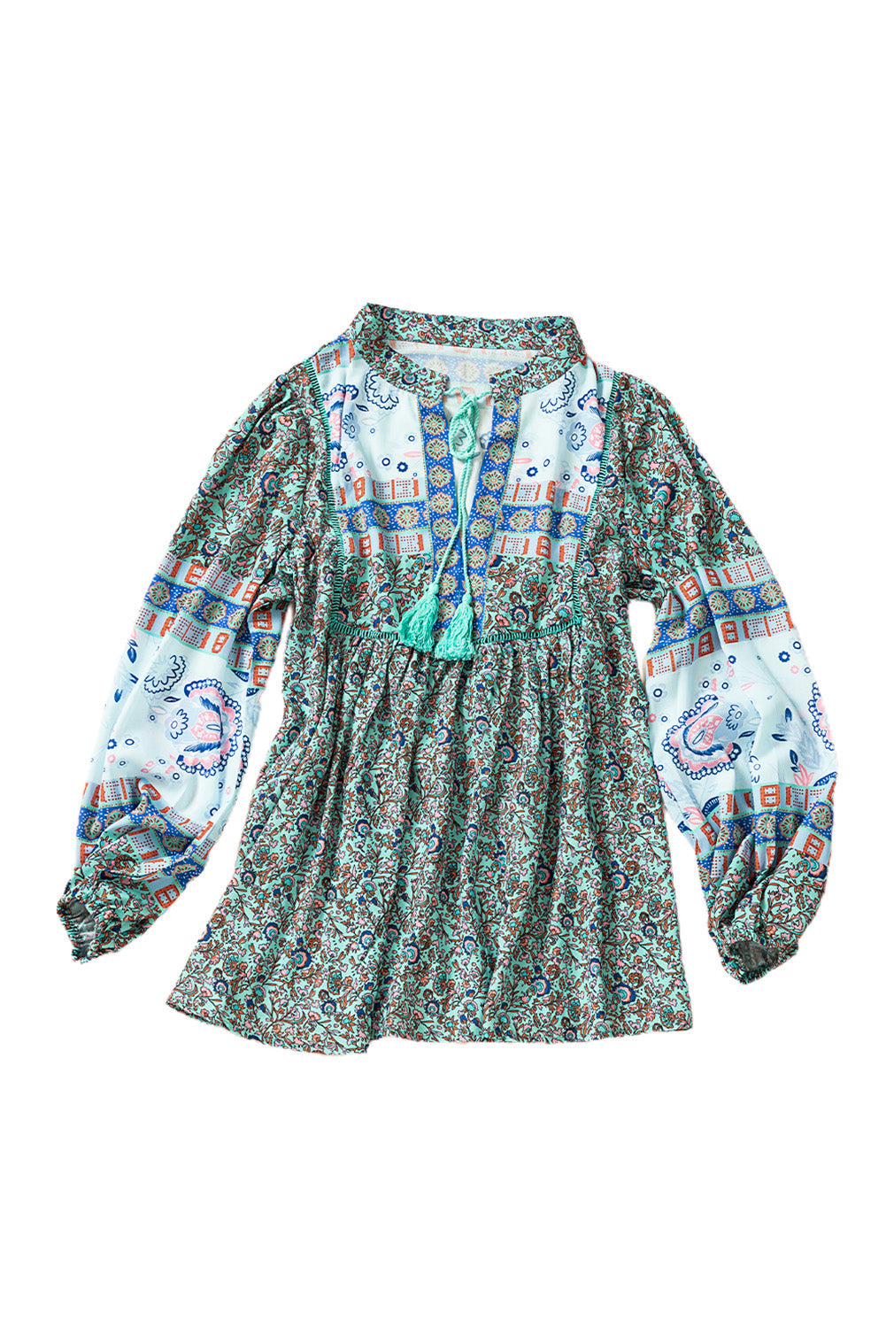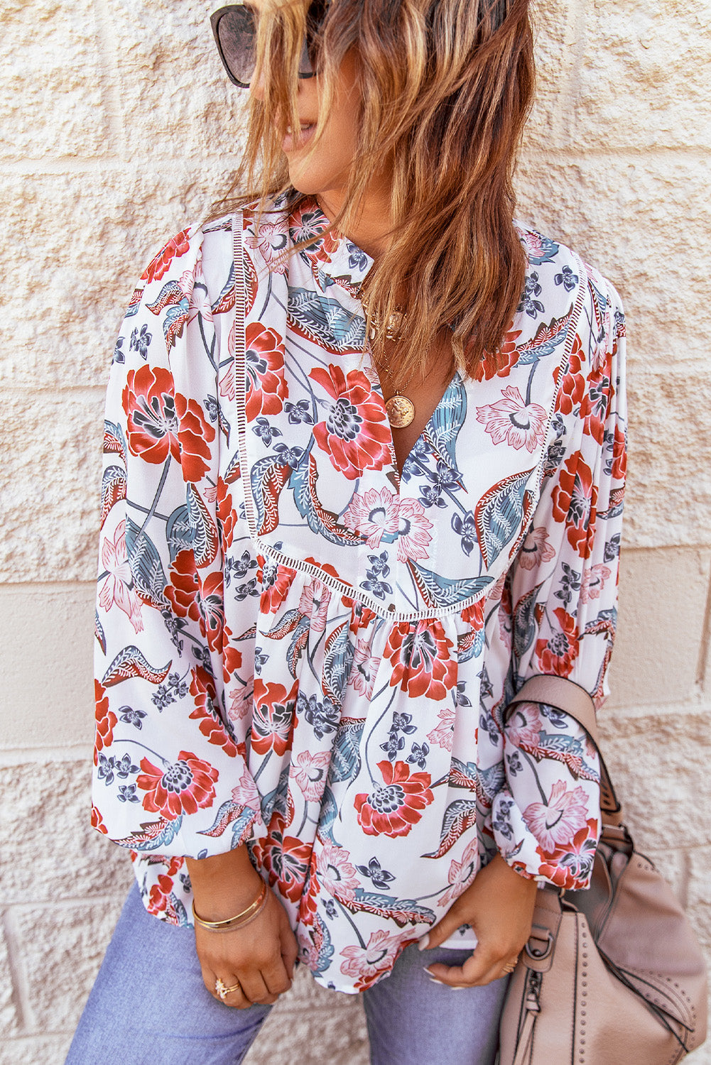 This Split Neck Bubble Sleeve Floral Patchwork Blouse is the perfect addition to your wardrobe.