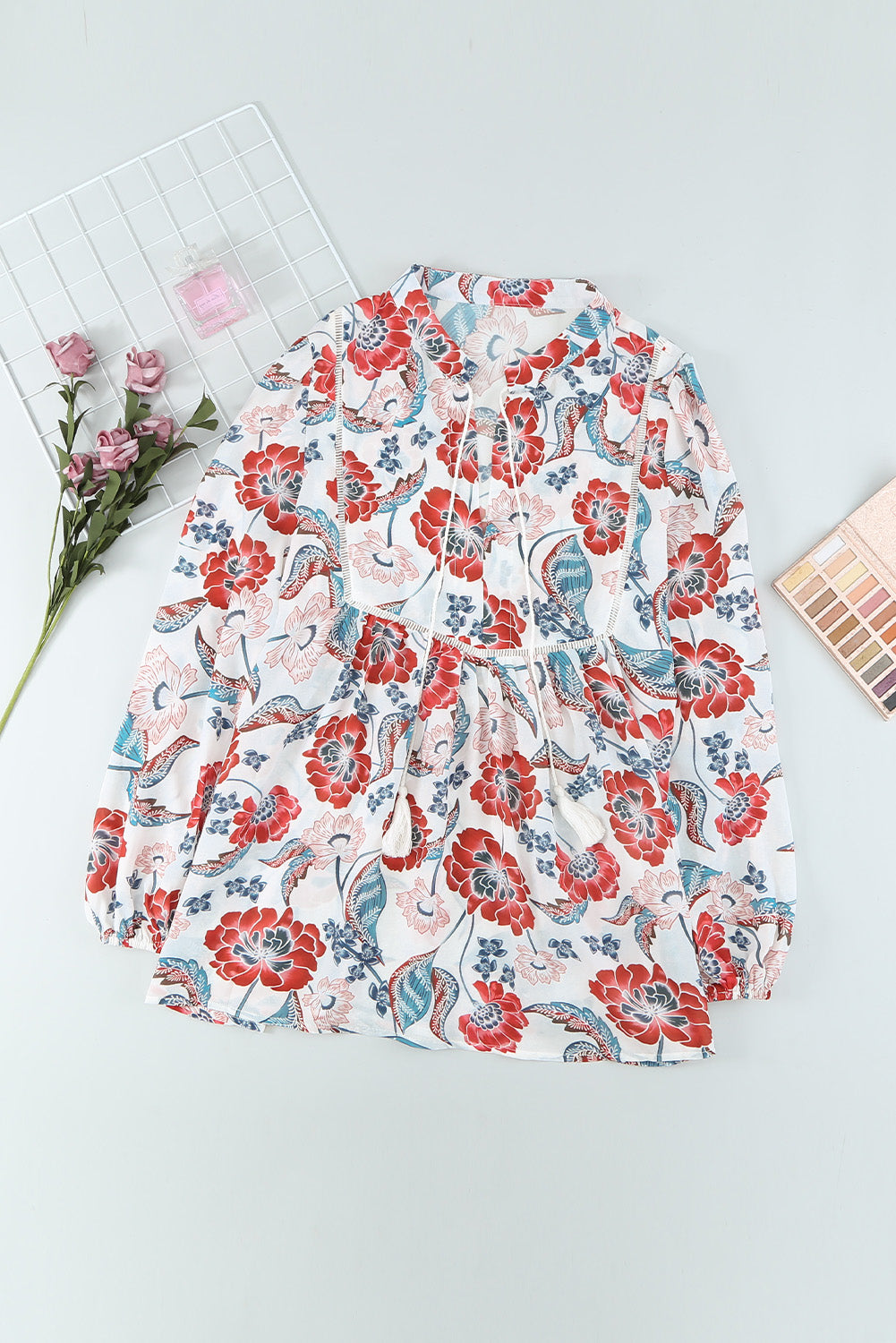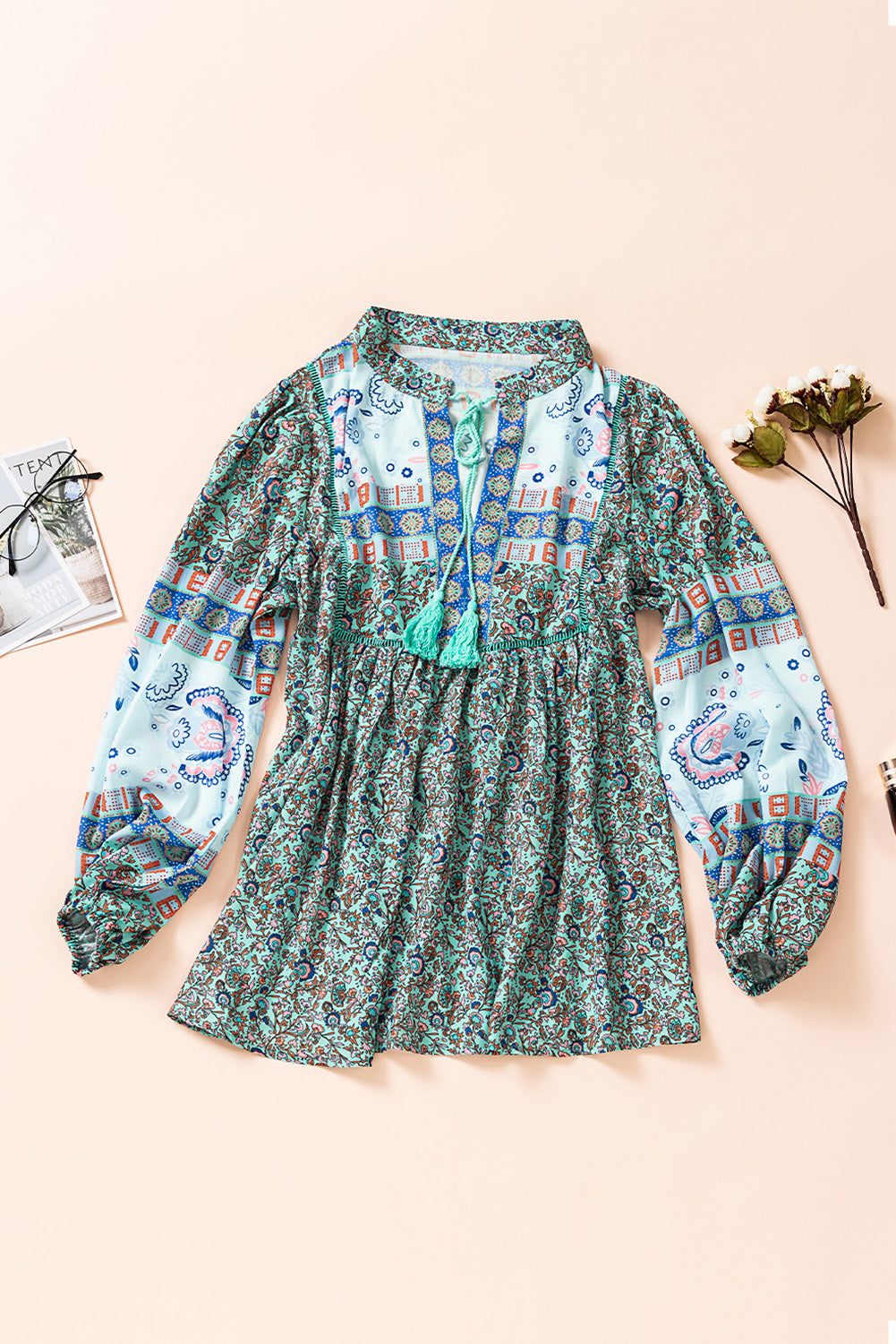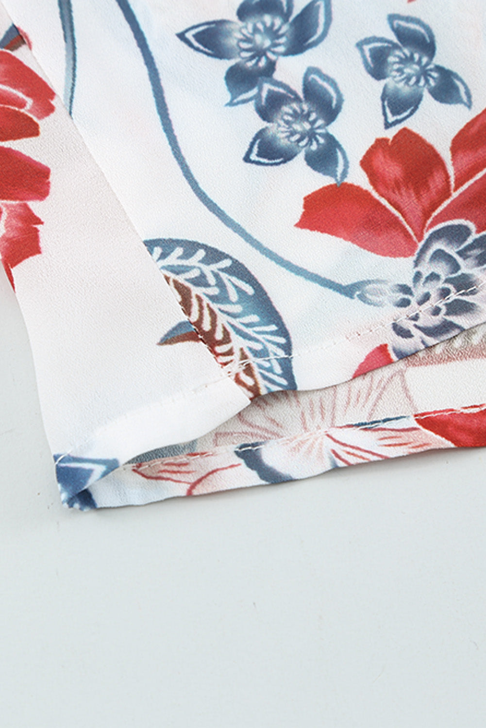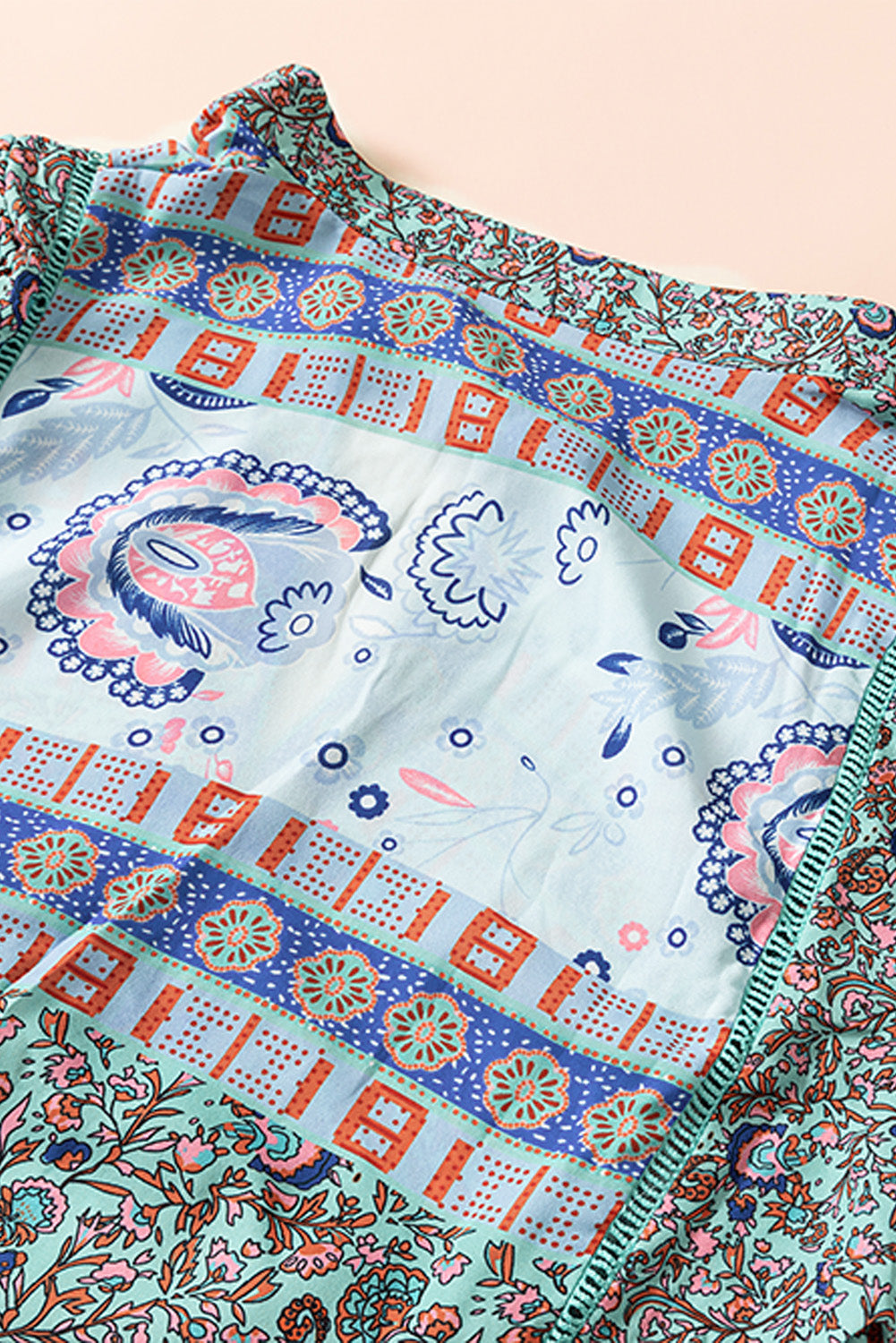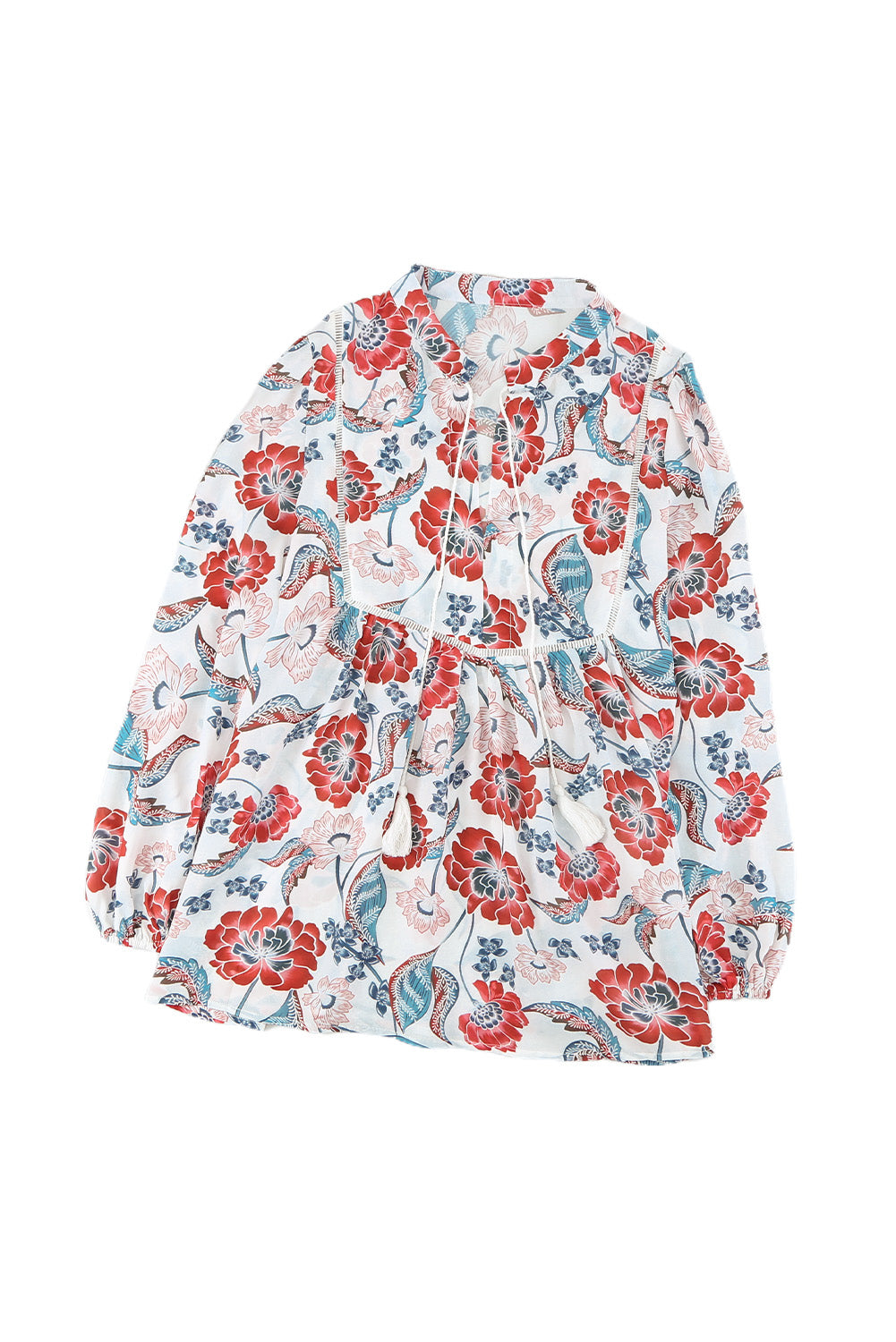 This Split Neck Bubble Sleeve Floral Patchwork Blouse is the perfect addition to your wardrobe.