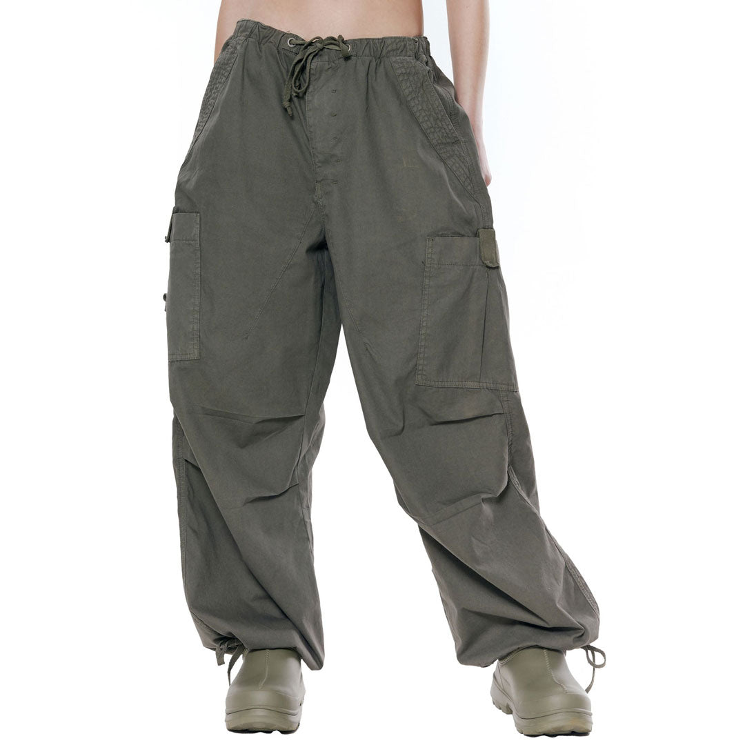 Showcase your undeniably active side in these utility pants. Made of cotton blend. embellished with spacious patch pockets trimmed with hook and loop fasteners. featuring a drawstring at the waist and cuffs. a hidden acrylic button followed with a metallic concealed zipper at the front. slant side pockets adorned with seamed detailing. an oversized silhouette finished with a long length. Find more trendy women's boyfriend pants or unique clothing in our boutique. and complete a going-out look with a pair of combat boots and a cropped top.