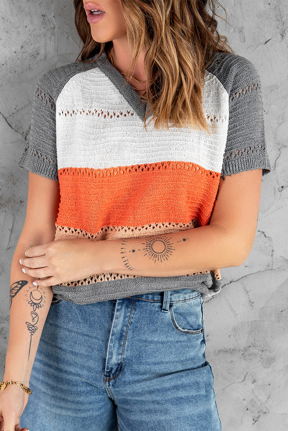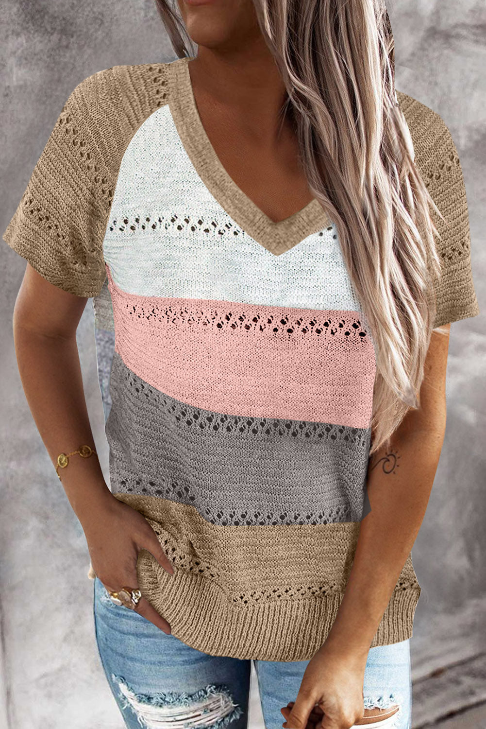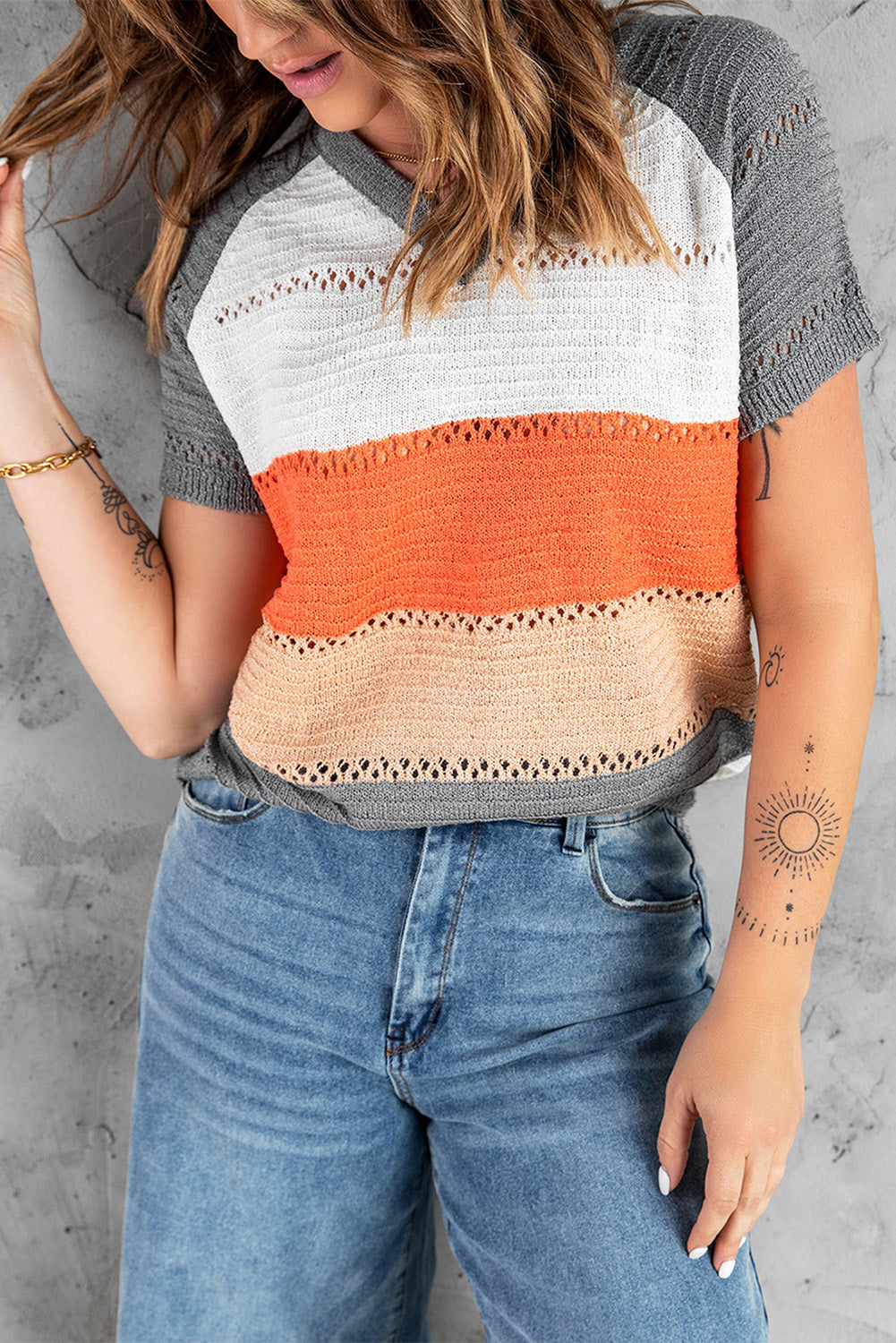 This Stripe Color Block Knitted V Neck Top is the perfect addition to your wardrobe.