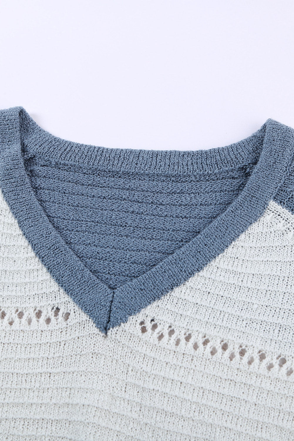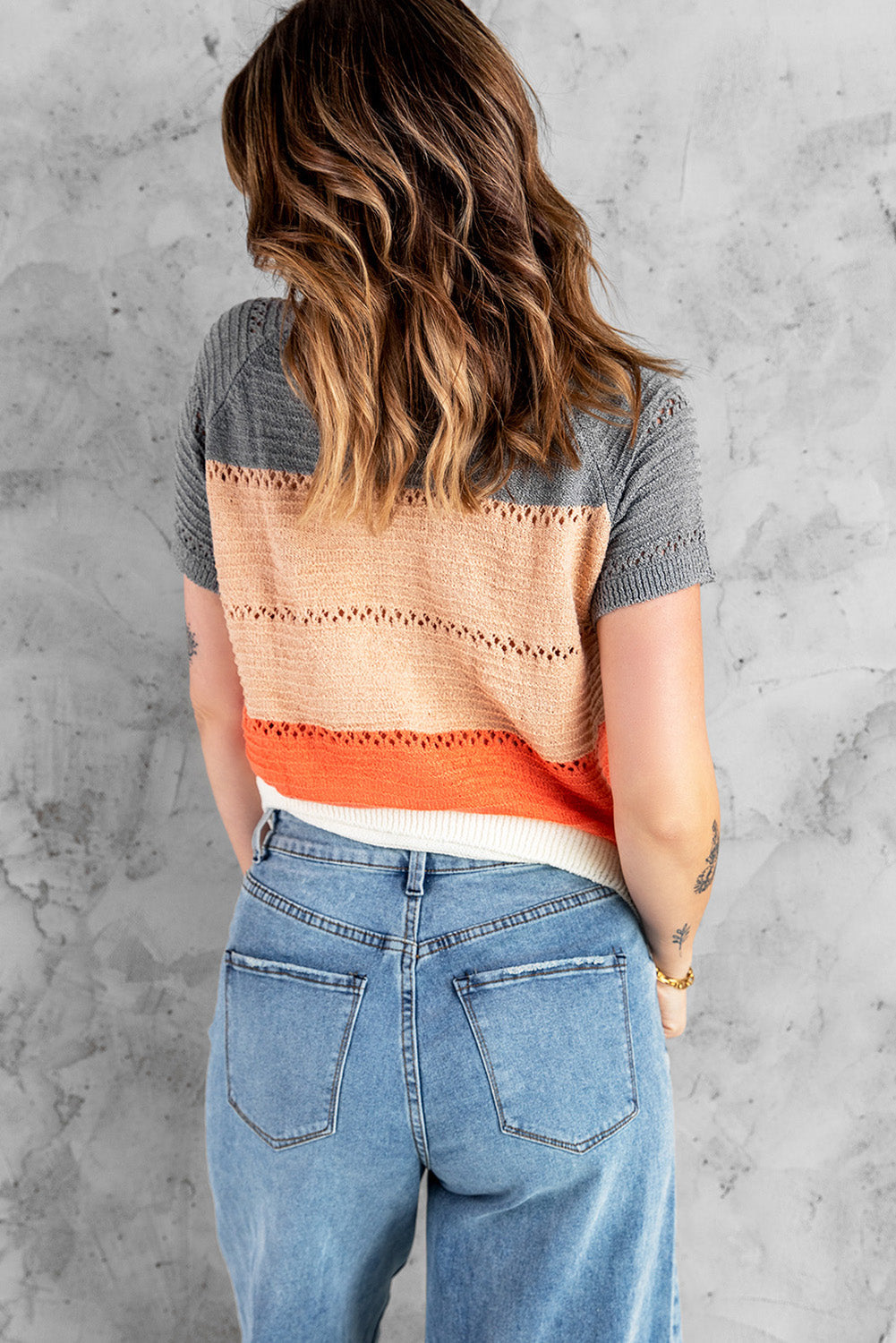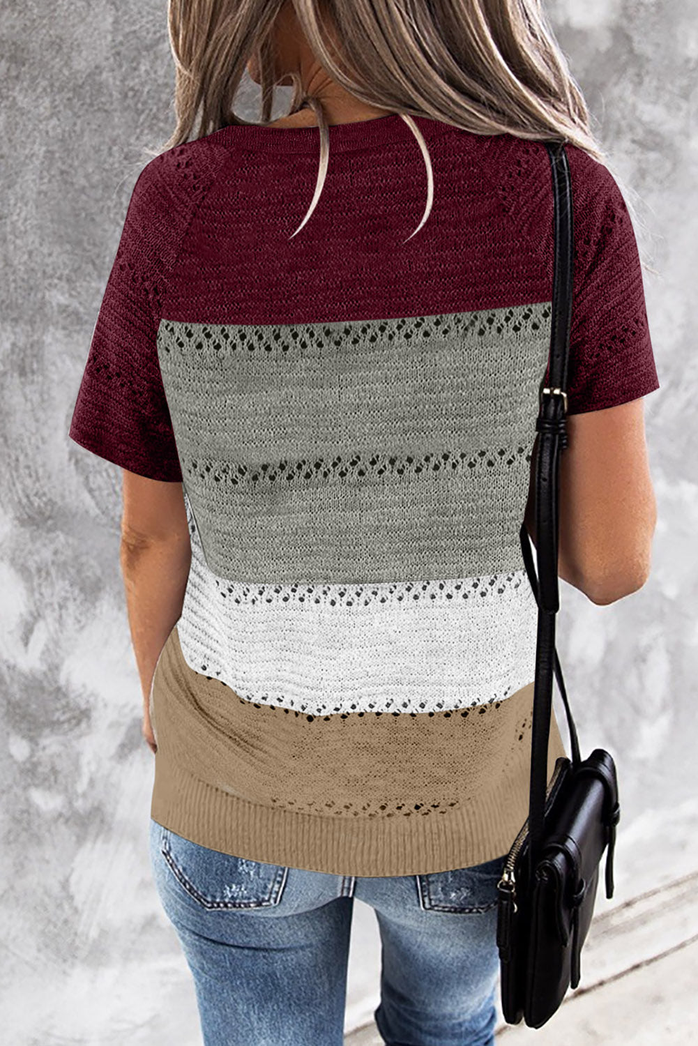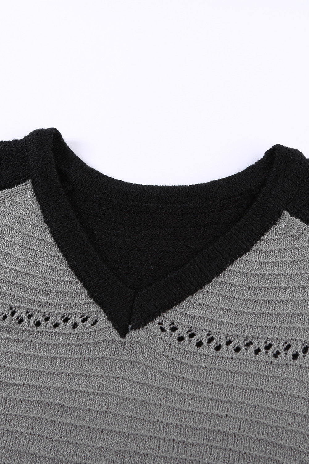 This Stripe Color Block Knitted V Neck Top is the perfect addition to your wardrobe.