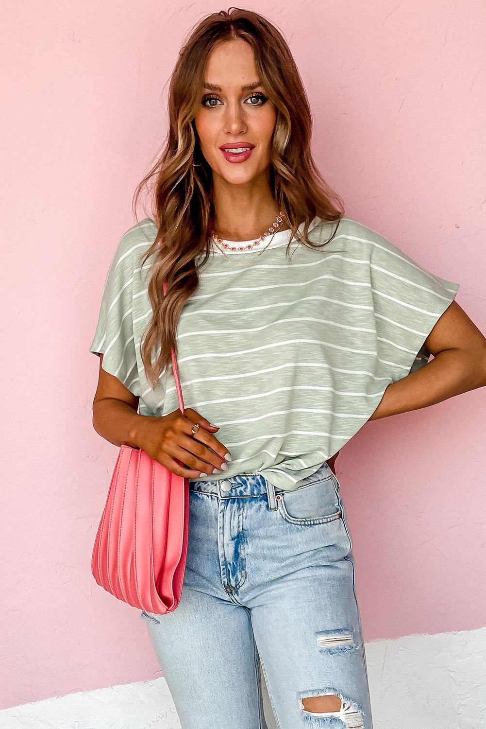 Look chic and stylish in our Stripe Short Sleeve Round Neck T-Shirt! Featuring a contemporary stripe pattern. this T-Shirt is perfect for any occasion.