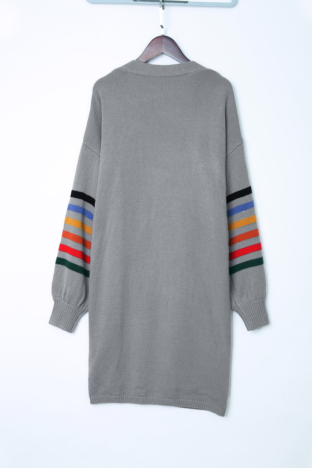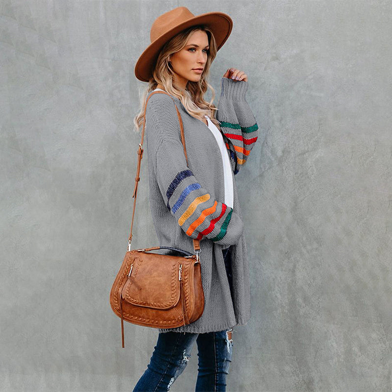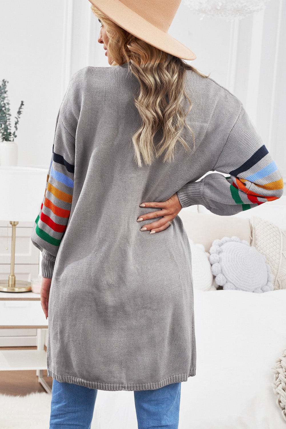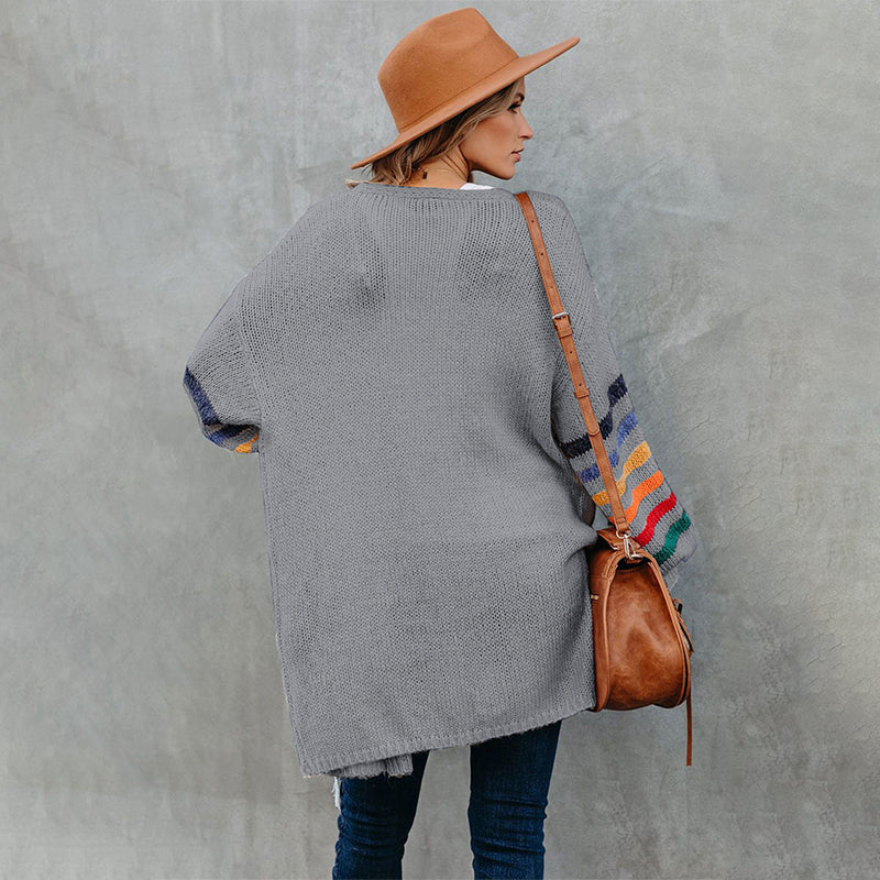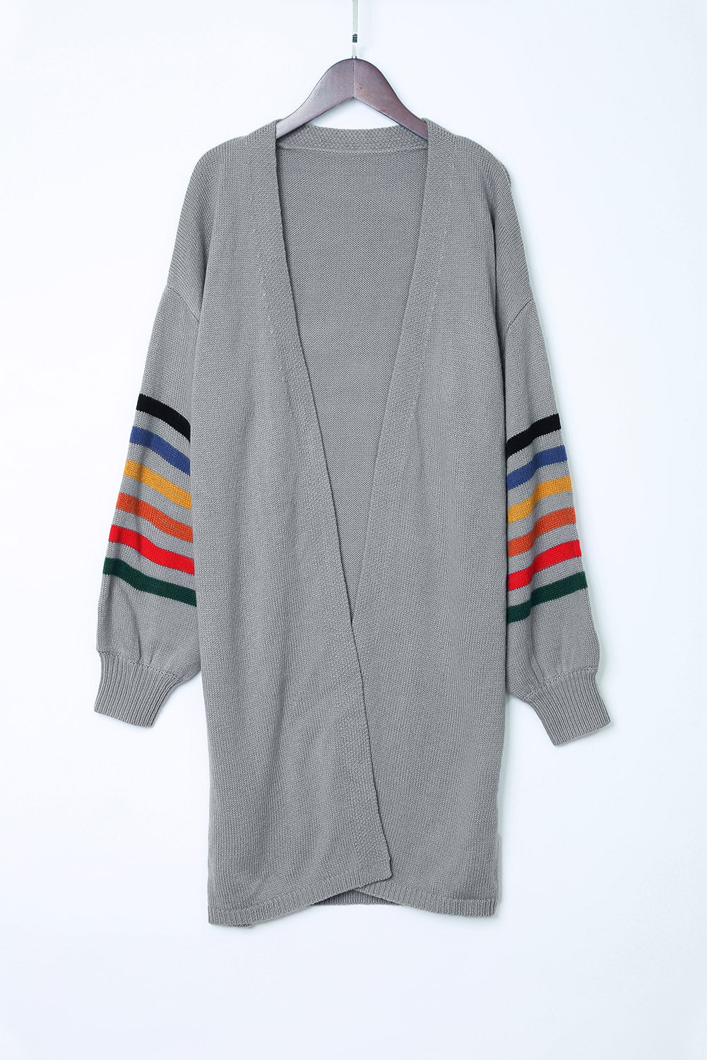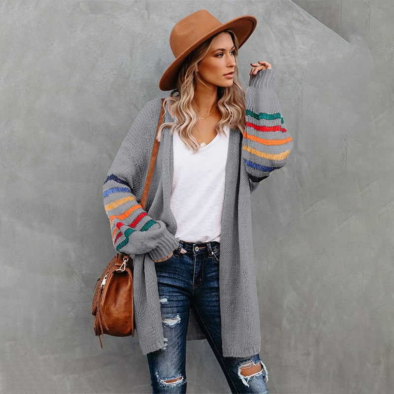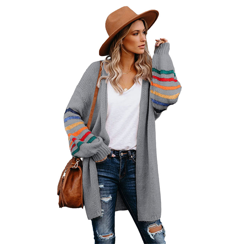 Add a touch of style to your wardrobe with the Striped Balloon Sleeve Cardigan.