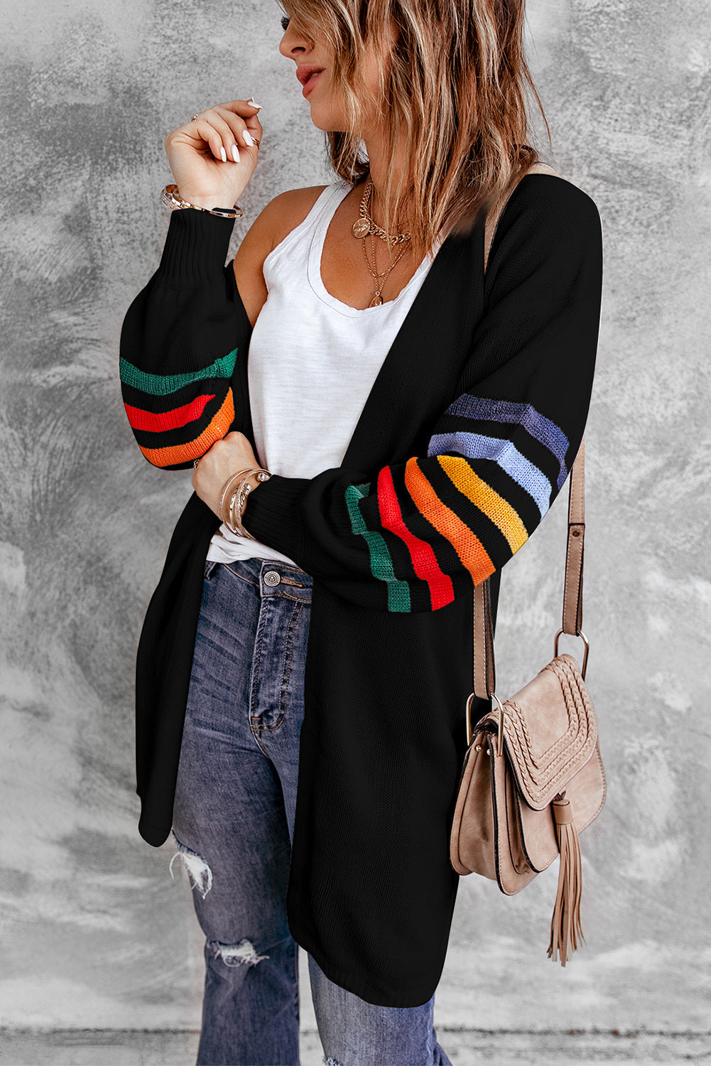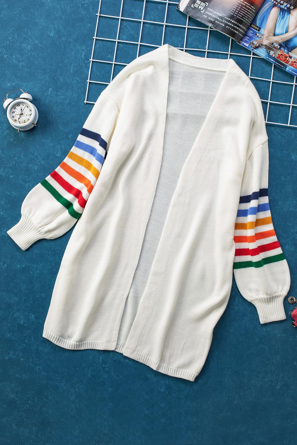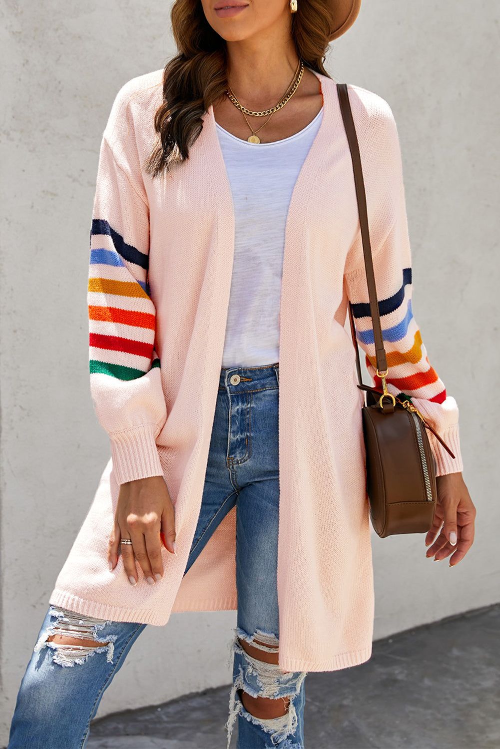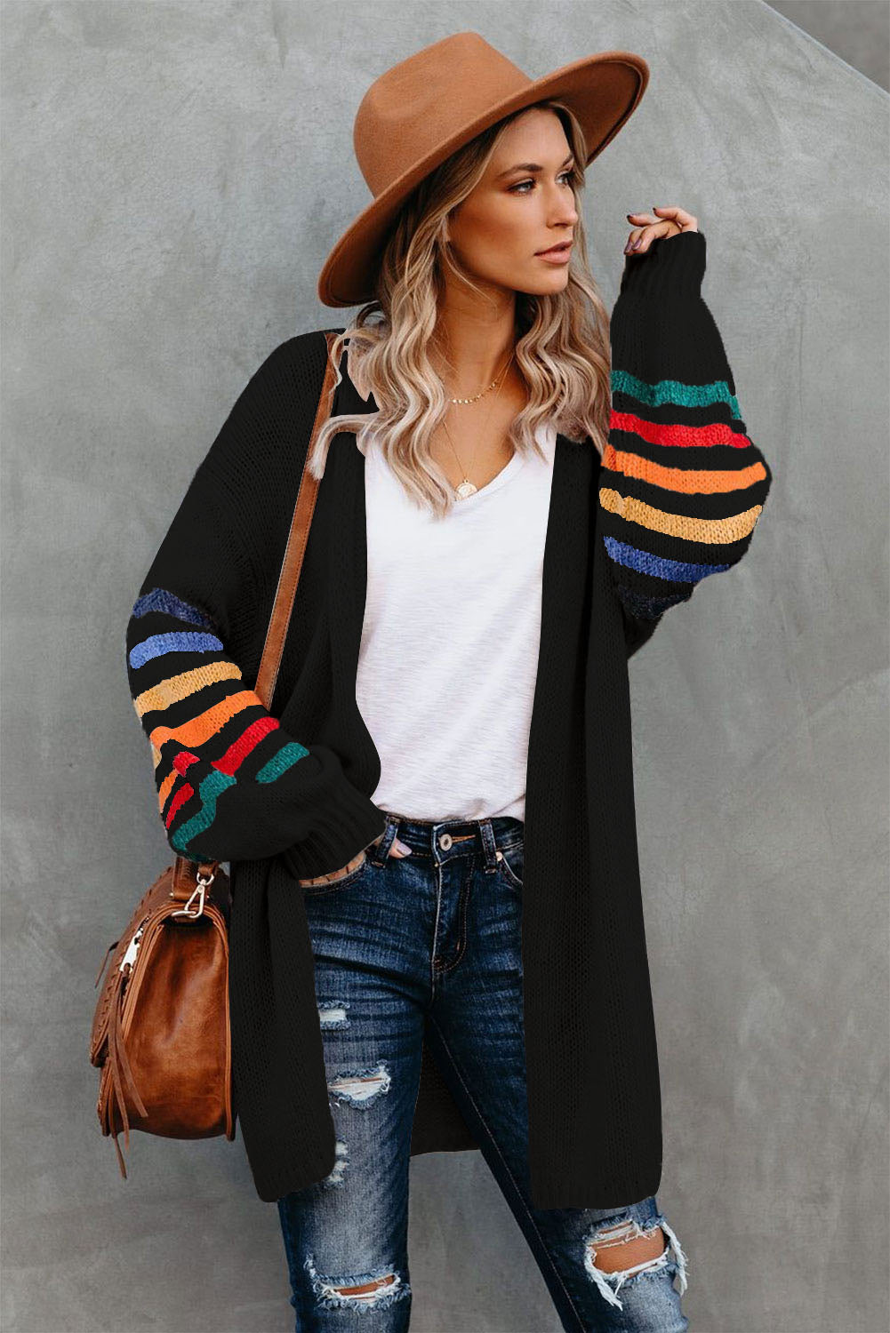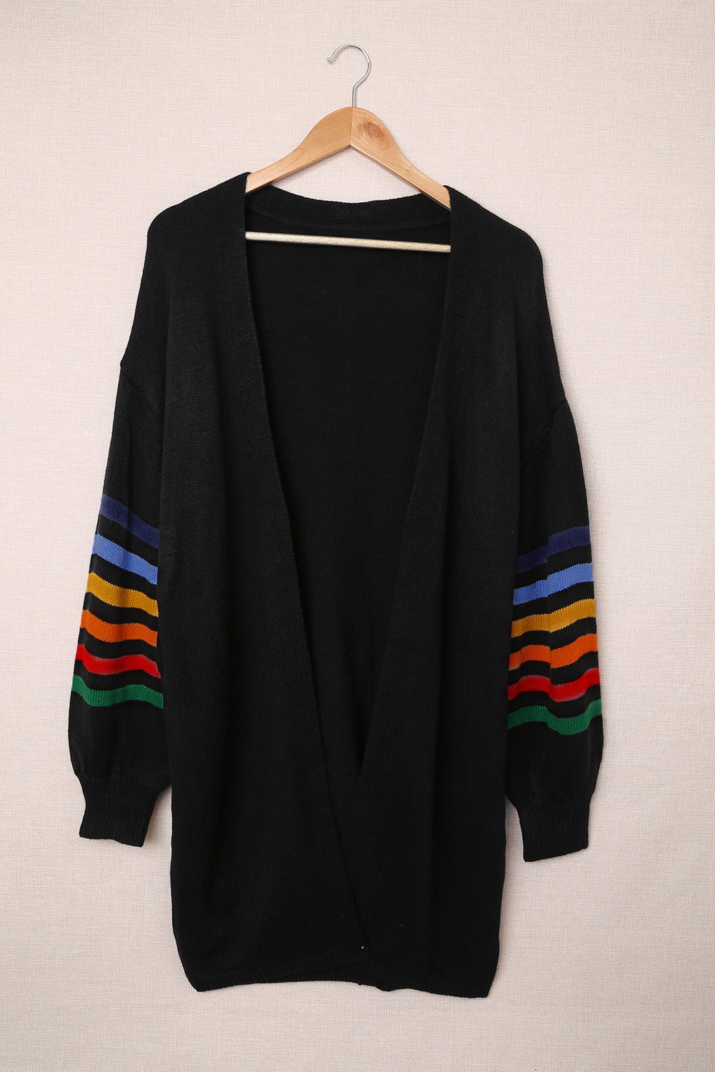 Add a touch of style to your wardrobe with the Striped Balloon Sleeve Cardigan.