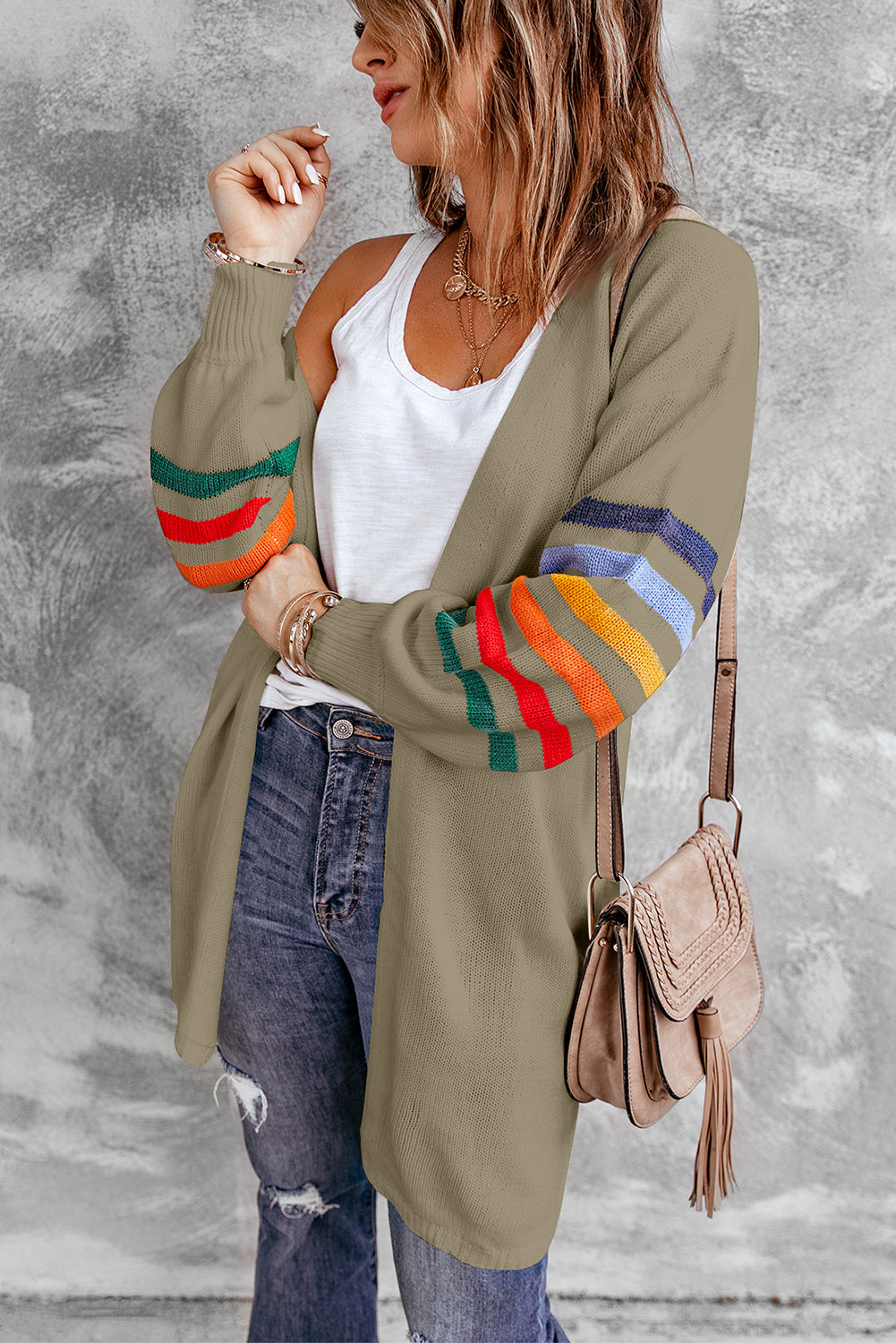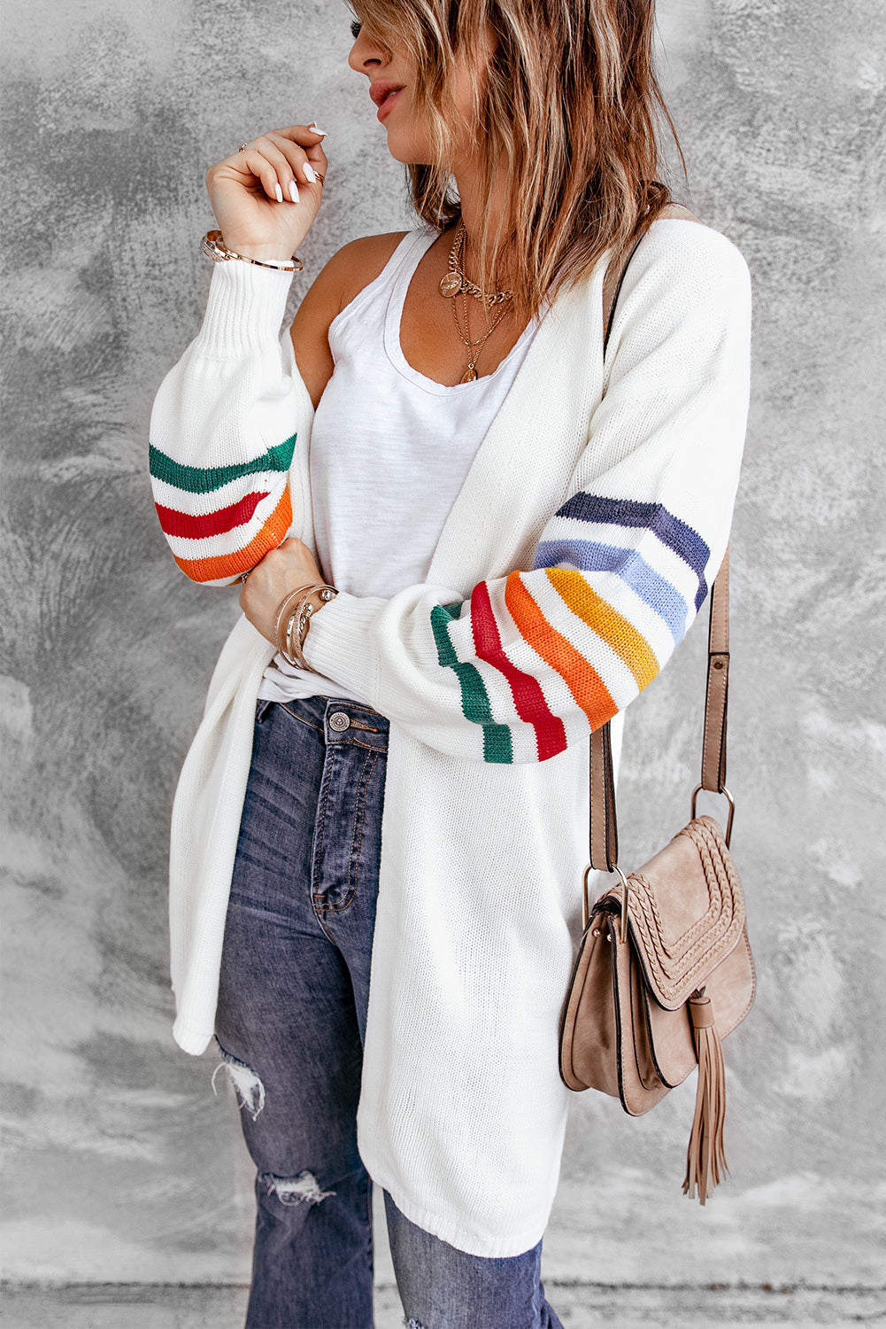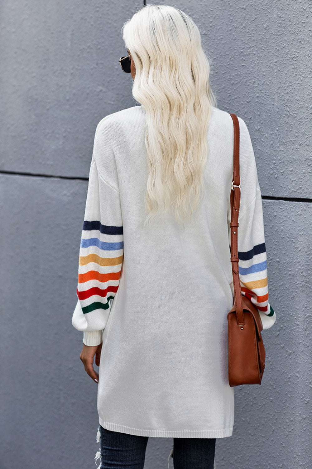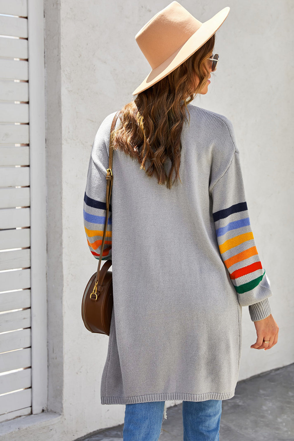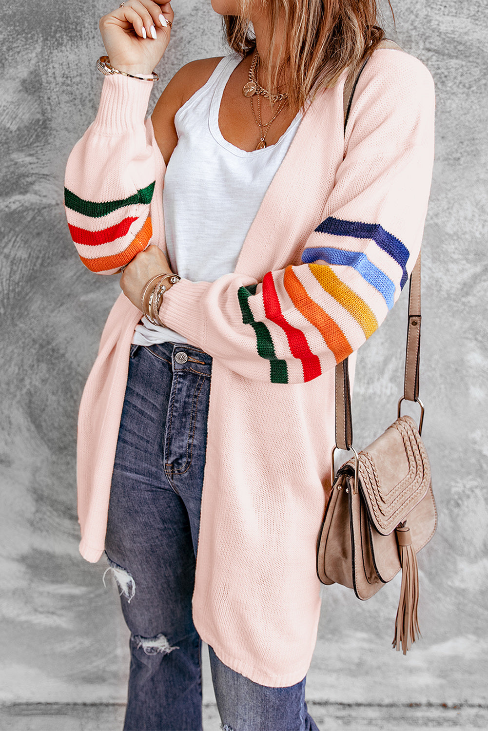 Add a touch of style to your wardrobe with the Striped Balloon Sleeve Cardigan.