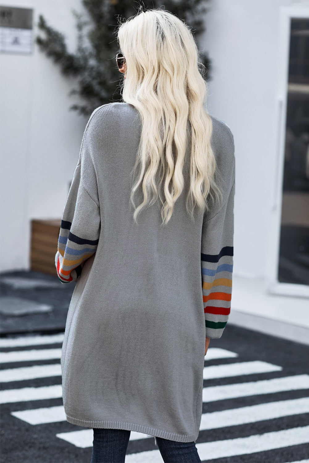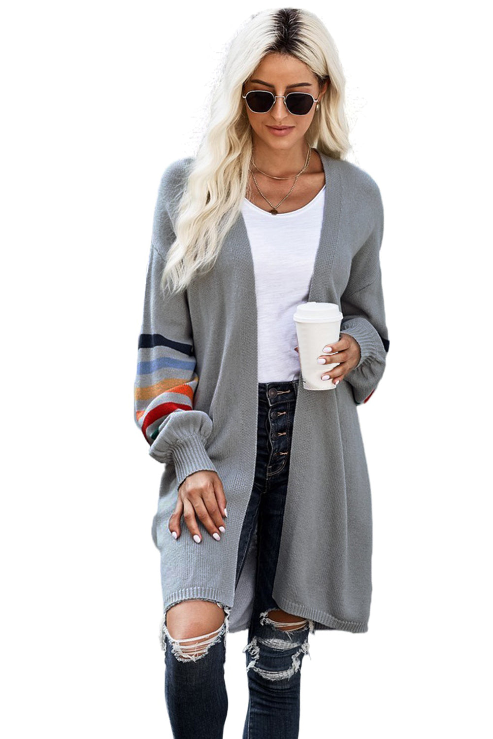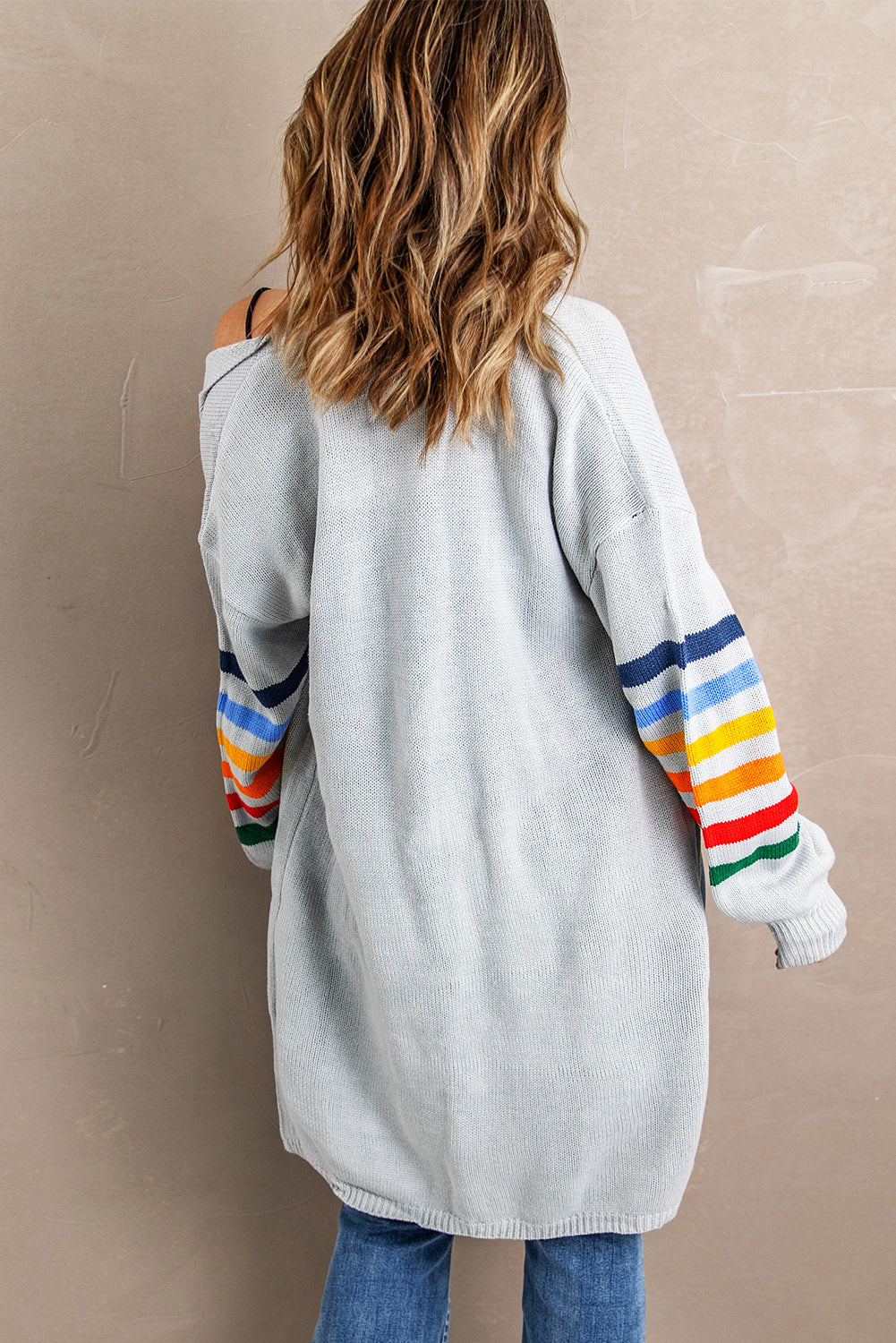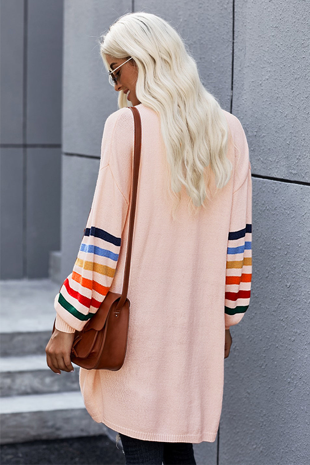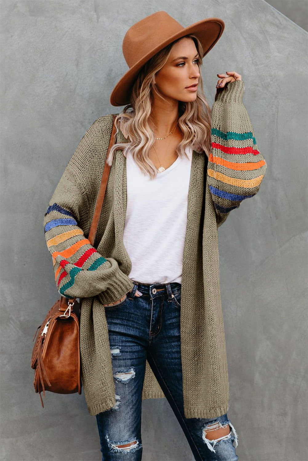 Add a touch of style to your wardrobe with the Striped Balloon Sleeve Cardigan.